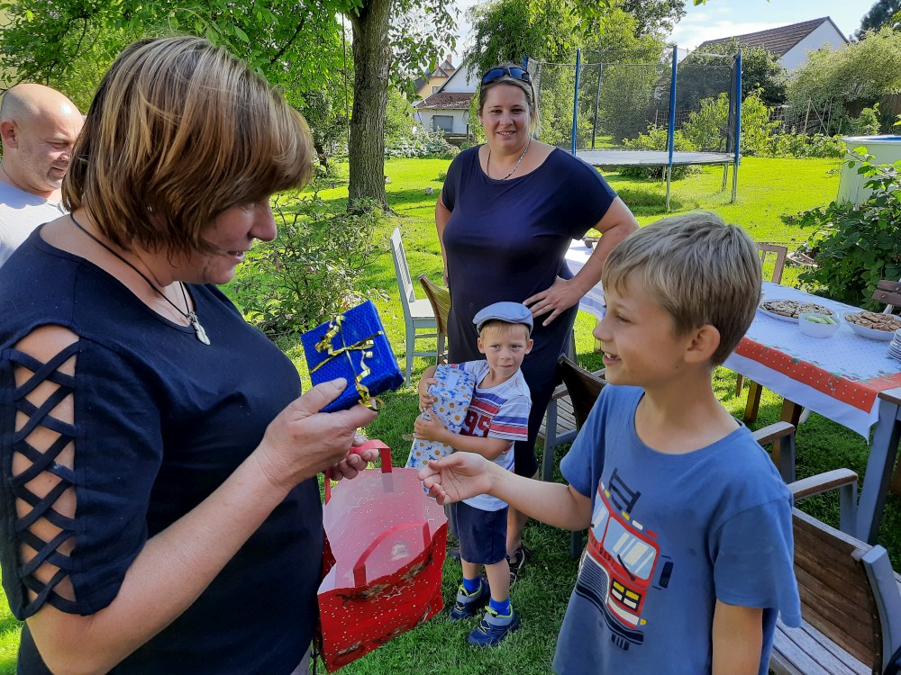 Dnes máme na zahradě velkou oslavu narozenin Jiříka a Víti. Dorazí Pavlík s rodinou, Martin s rodinou, Zuzka s rodinou i babička Hanka se Zdeňkem.