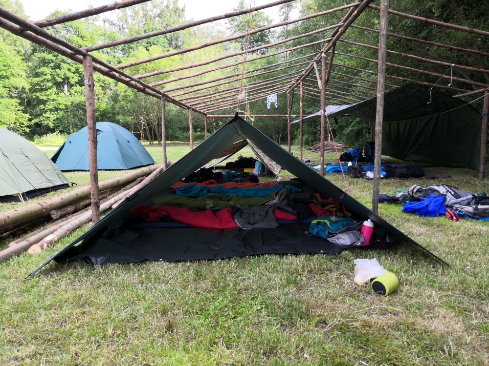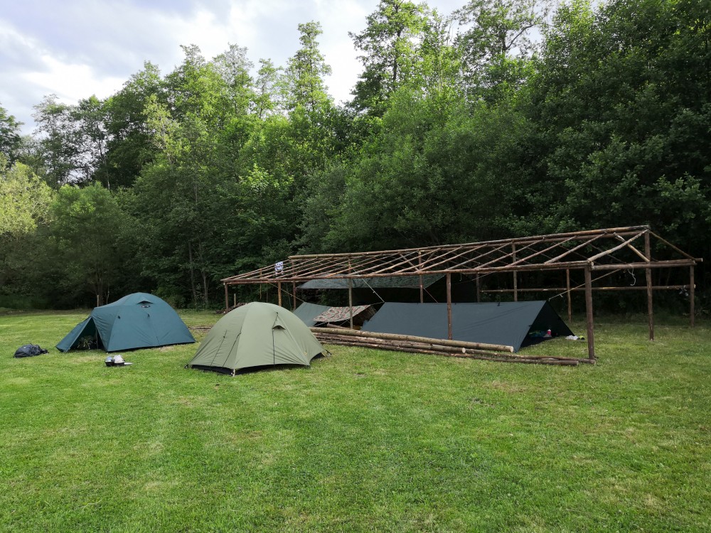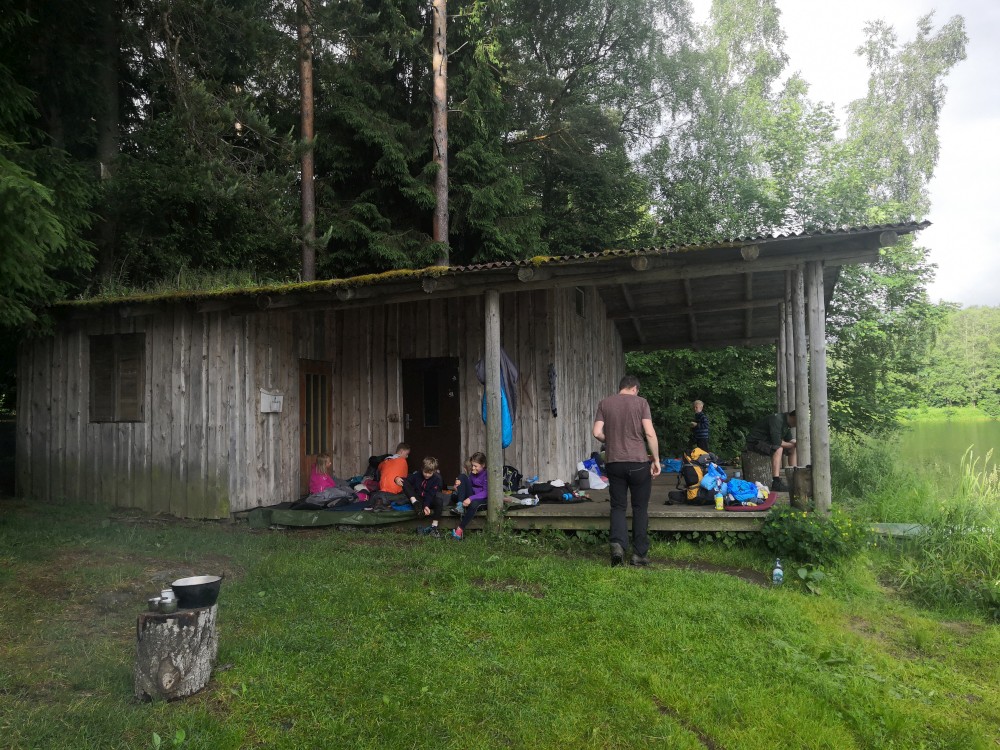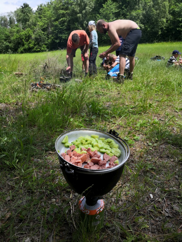 Jsme moc rádi, tato pravidla dodržet nebude problém. Lidé odjíždí a máme kempoviště pro sebe. Vypínáme plachty v kostře budoucí táborové kuchyně, někdo staví stany, jdeme pro dřevo. Děti jdou chytat pstruhy. A jsou úspěšné. Chytili jich několik, ale moc malých, takže je pustili zase do řeky.