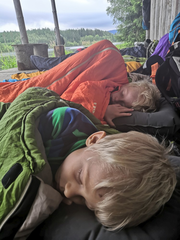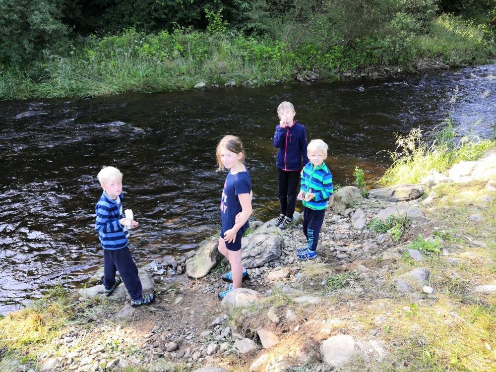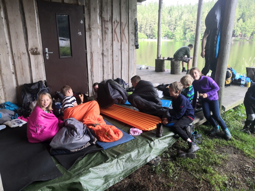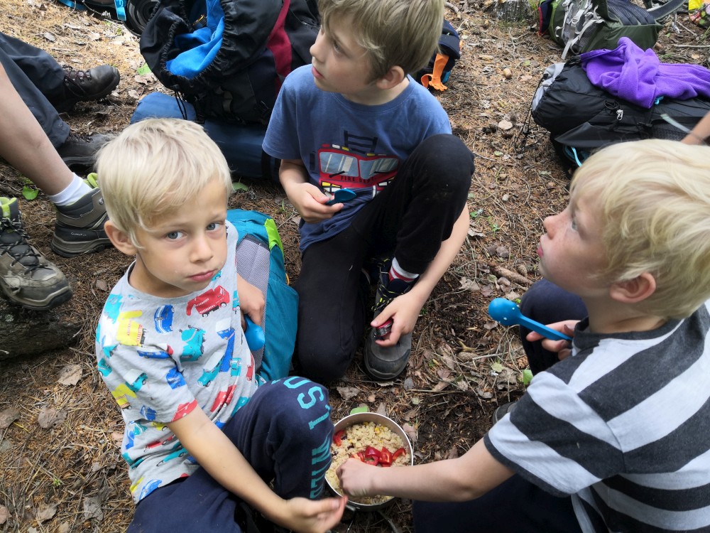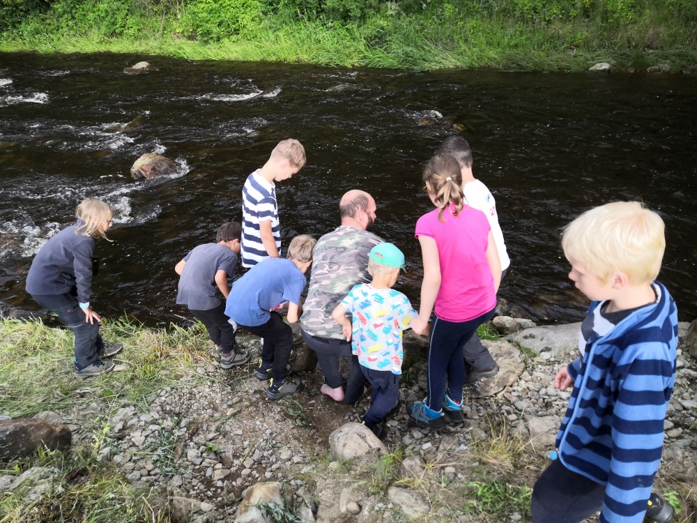 Jsme moc rádi, tato pravidla dodržet nebude problém. Lidé odjíždí a máme kempoviště pro sebe. Vypínáme plachty v kostře budoucí táborové kuchyně, někdo staví stany, jdeme pro dřevo. Děti jdou chytat pstruhy. A jsou úspěšné. Chytili jich několik, ale moc malých, takže je pustili zase do řeky.