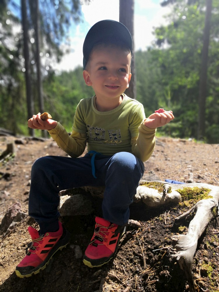 Jdeme ze Záblatí po žluté značce k PP Zábrdská skála. Krásné místo. Jsou zde nádherné výhledy do kraje. Je tu extrémní množství mravenců. V trávě to není tak hrozné. Vybalujeme vařiče a děláme těstoviny se vším co zbylo. Je to překvapivě chutné.