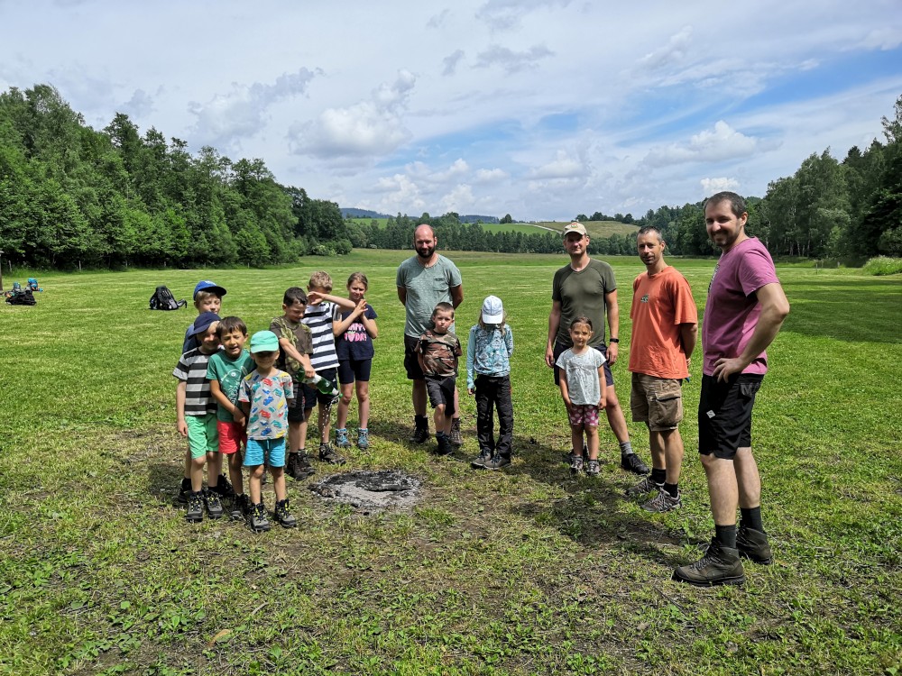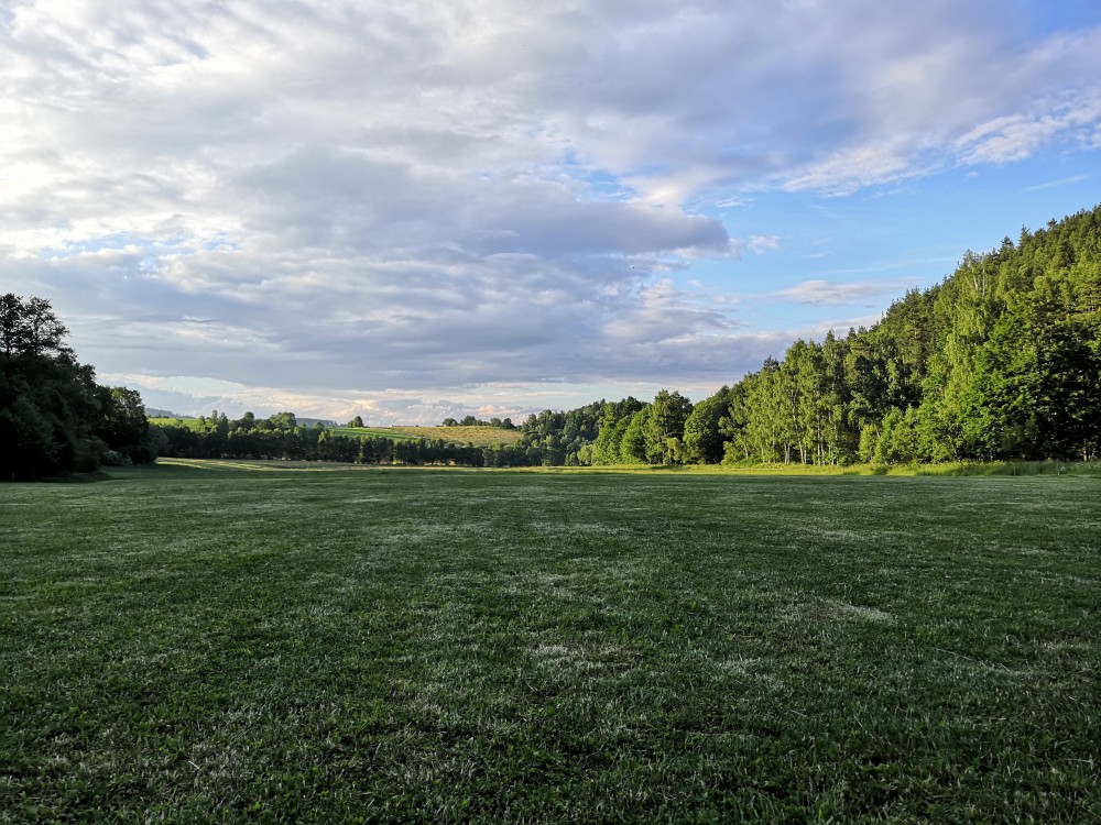 Procházíme celou stezkou až na louku před Řepečínským mlýnem. Na louce je hromada aut a lidí. Připravují tu dětský tábor, sečou louku. Ptáme se, zda neví o nějakém dobrém místě. Nějaké tipy nám dají, ale je to už daleko. Nakonec nám nabídnou, že tu můžeme zůstat, když bude tábořiště po nás vypadat stejně jak před námi, nespálíme jim dřevo a výkaly neznečistíme blízké okolí tábora :-).