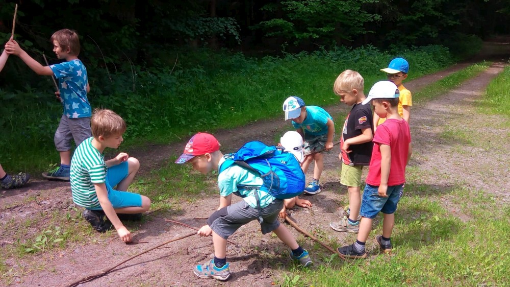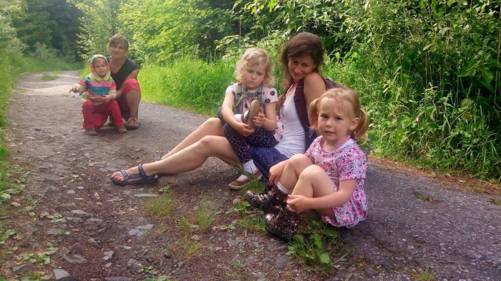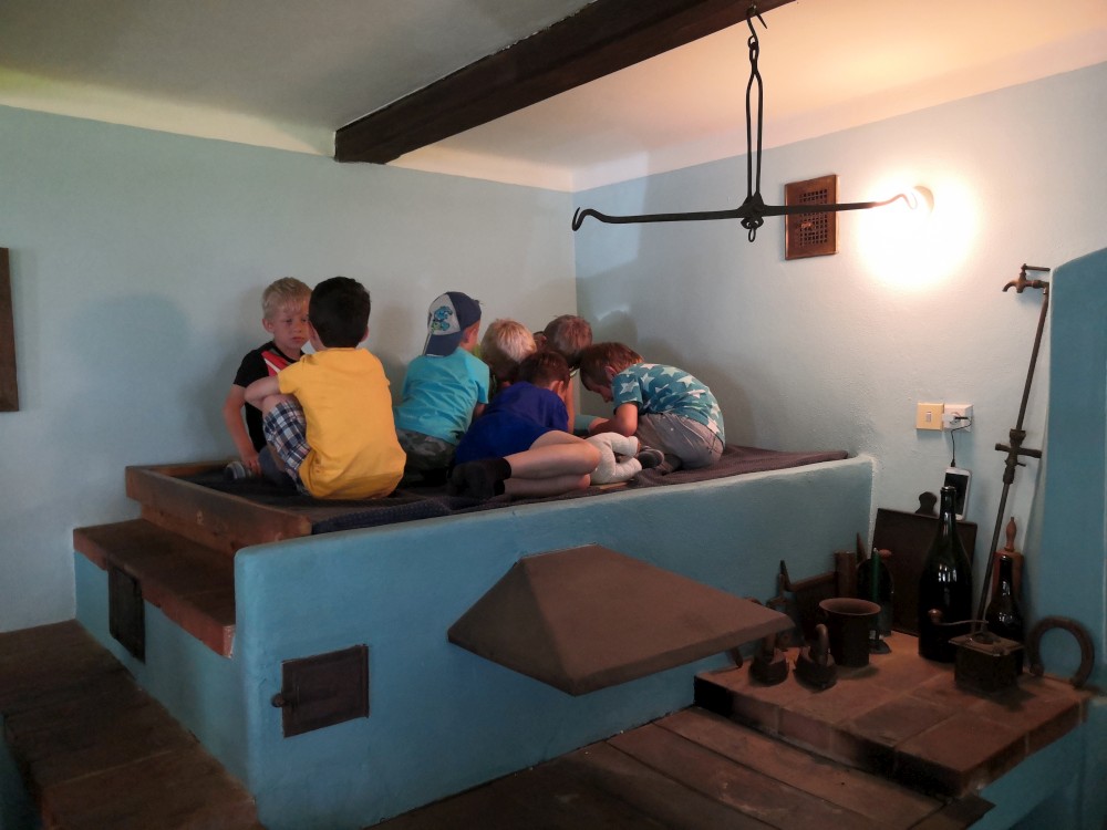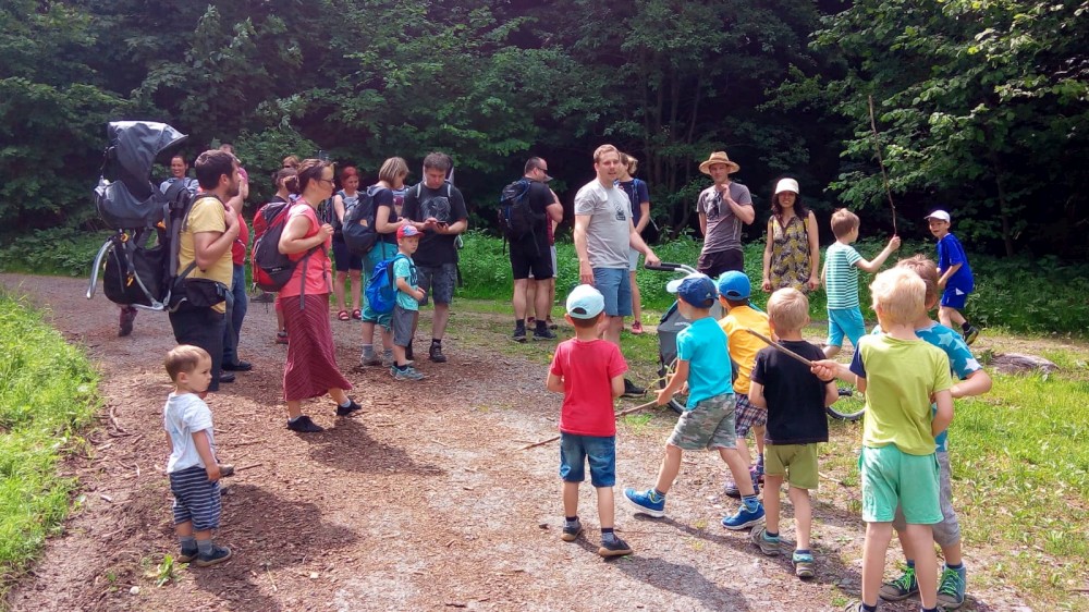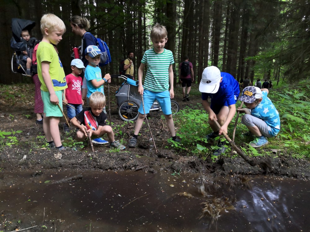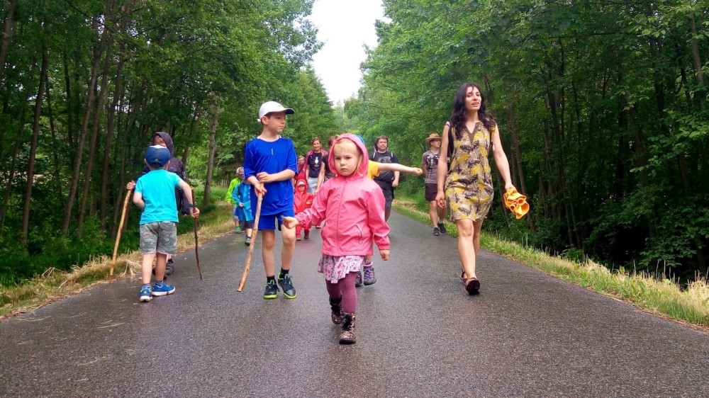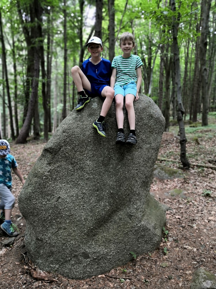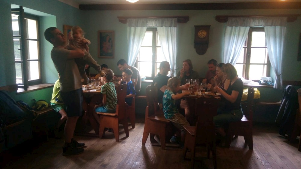 V sobotu jdeme na výlet. Připojuje se k nám Pepa Maroušek s rodinou, Míla a Kultovka. Jsme velká skupina, s dětmi různých věků. Naše tempo není moc rychlé. Jdeme nejdříve na Chlístovské menhiry, pak kousek po silnici a pak lesní cestou do Veletína. Tam máme v hospodě Za pecí domluven oběd - bramboračka a pečené kuře s chlebem. Dáváme také pivko nebo nanuky. Připojuje se k nám Láďa s rodinkou a Lucka Svitáků s holčičkama, kteří s námi v pátek neslavili.