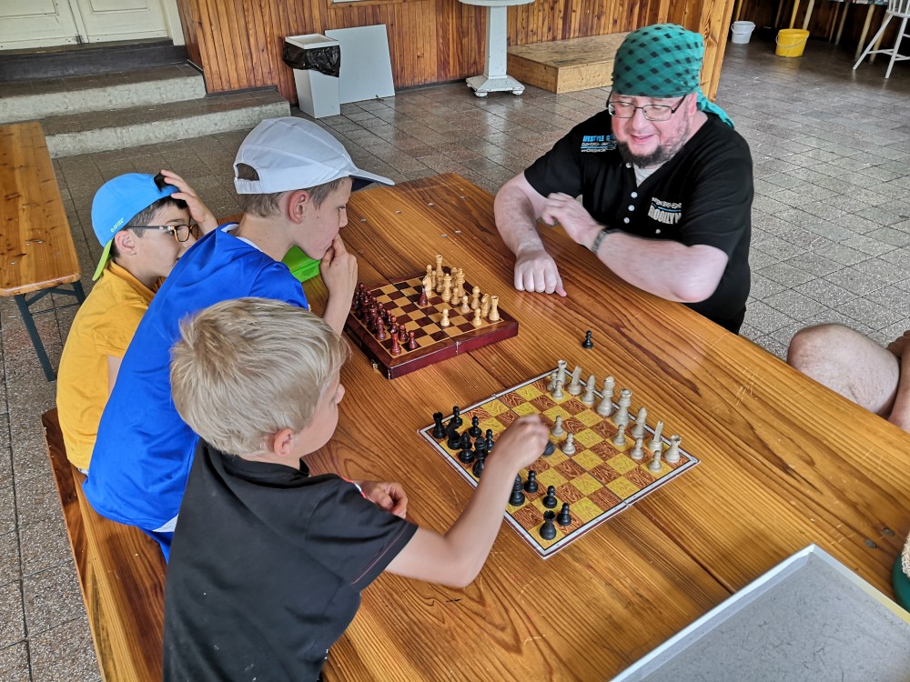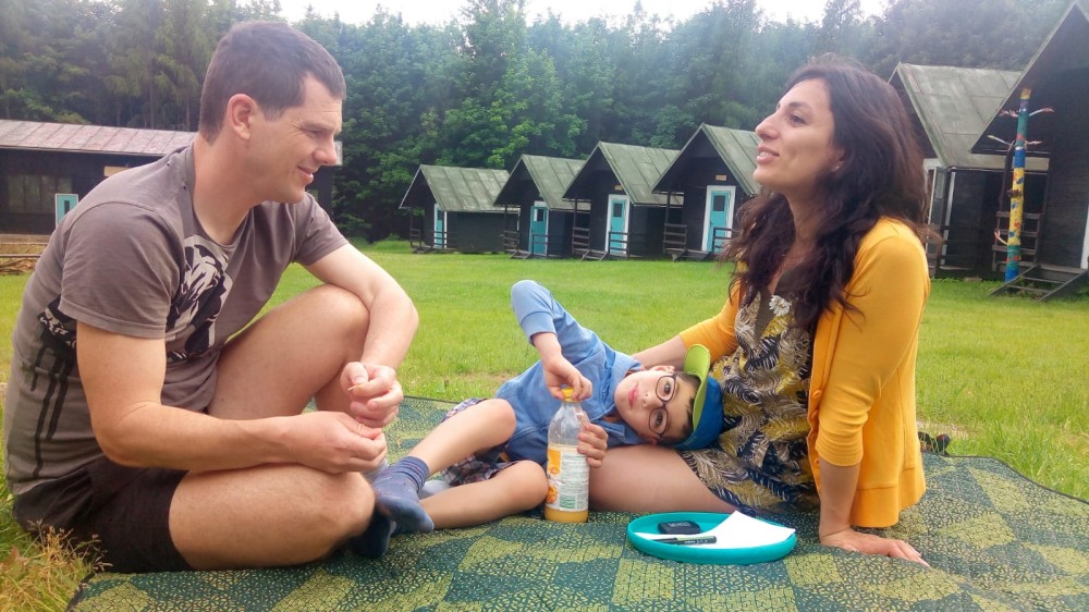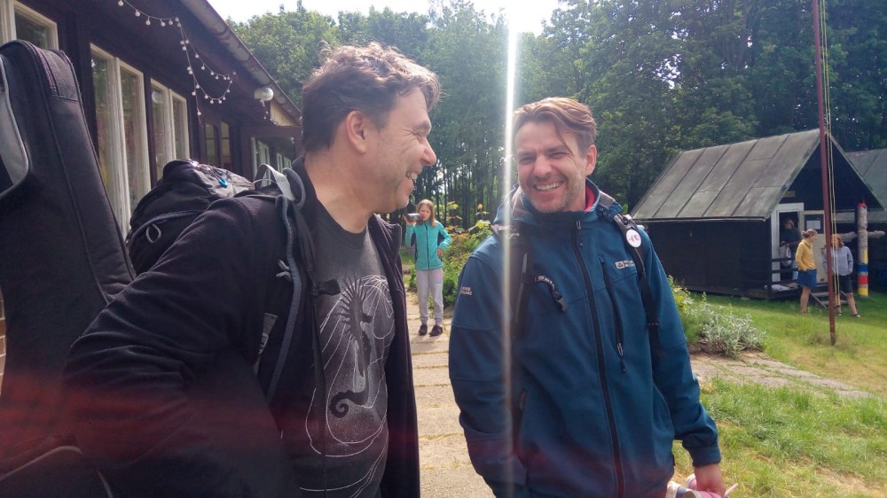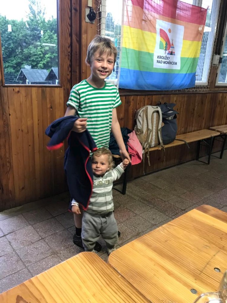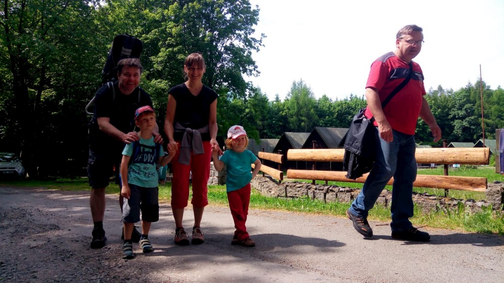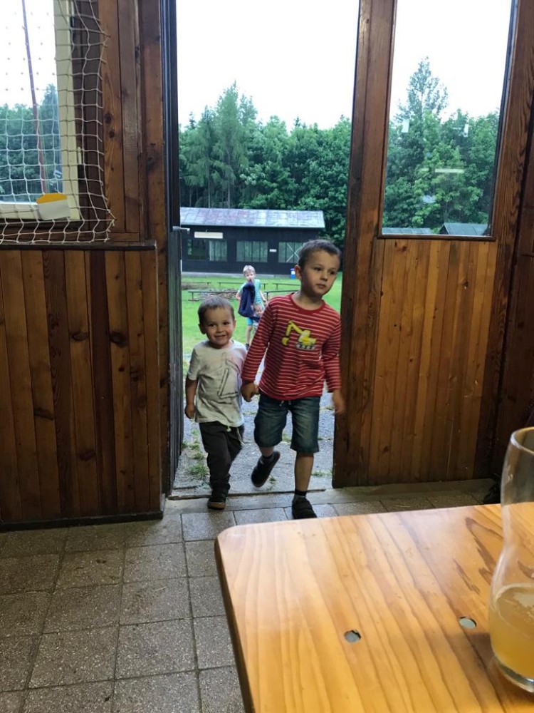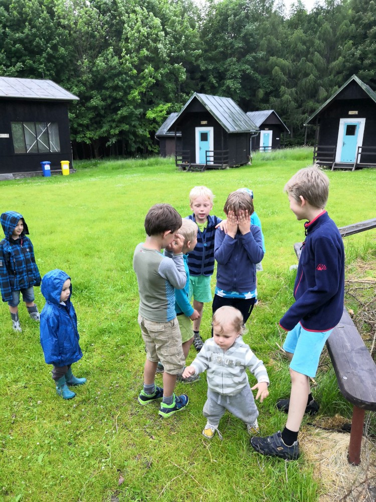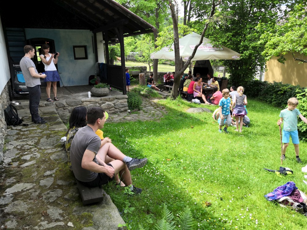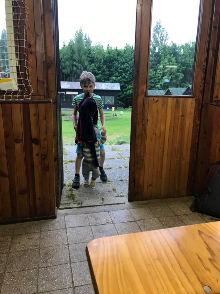 Z Veletína jdeme po cyklostezce a pak po červené na Javorovou skálu. Děti si hrají venku v areálu kempu, my si společně povídáme. Martínek si dává šachy s Mílou. A dává mu šach mat. Ale Míla to měl ztížené, hrál simultálně. Dorazil například Peťa Nekovář nebo Pavly kamarádka Madlen. Večer sedíme zase v restauraci a pak u ohně. Peťa vyndal kytaru, takže to máme i s hudební produkcí. Moc toho zase nenaspíme :-). V neděli se pomalu balíme a rozjíždíme se domů.