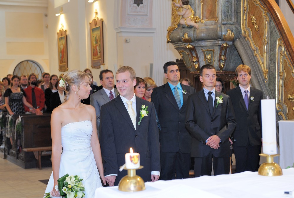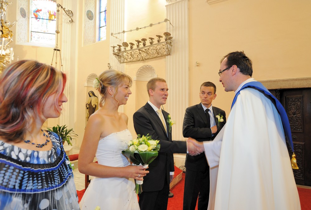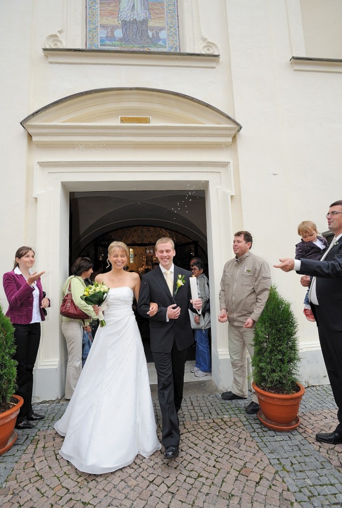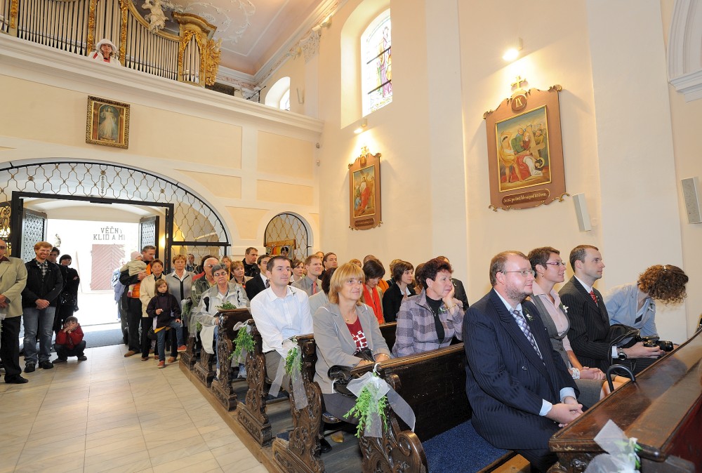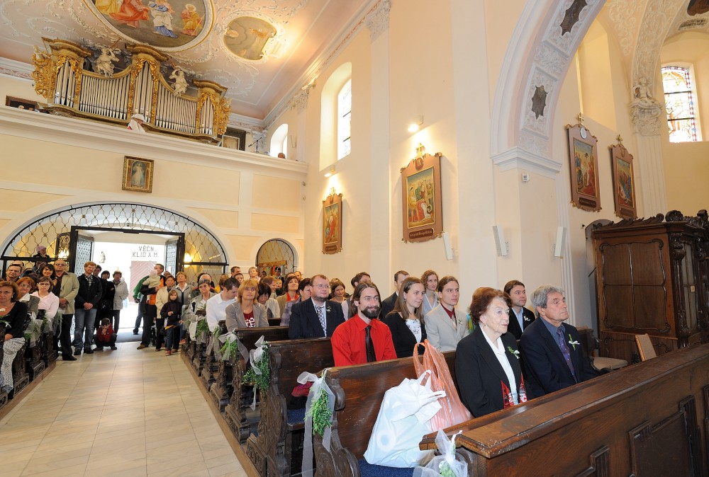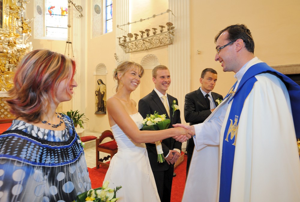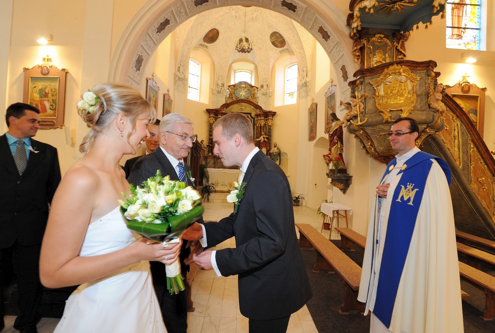 Gratulace před kostelem