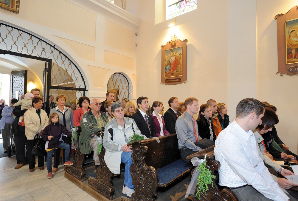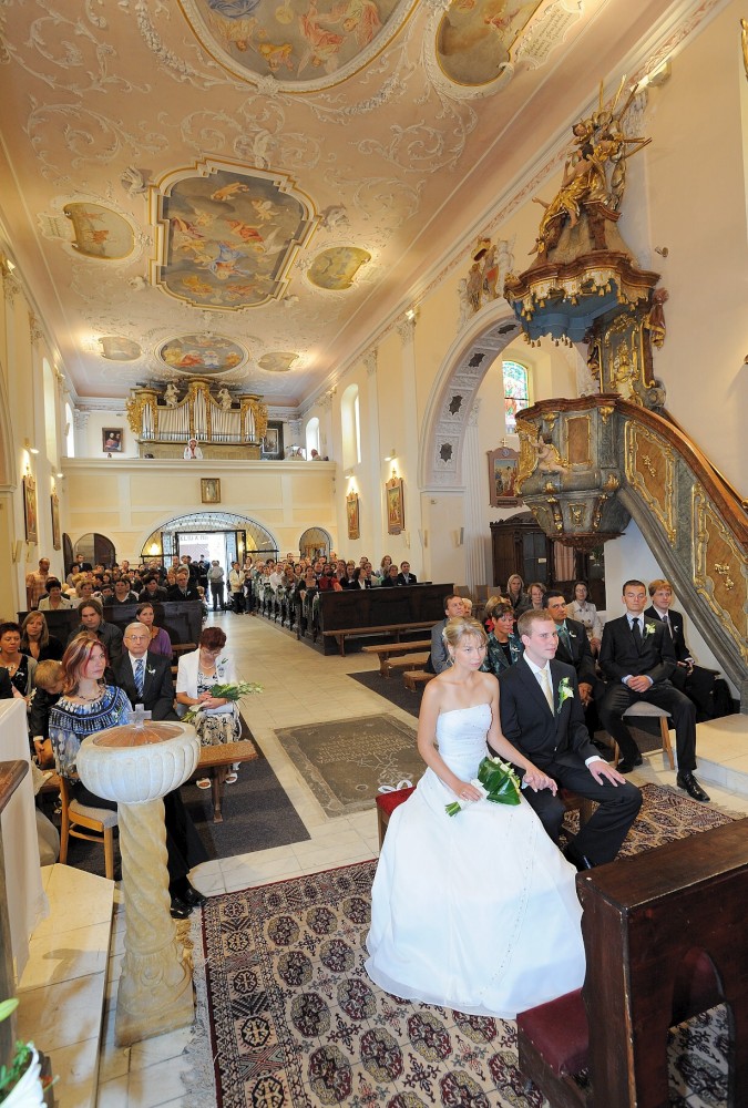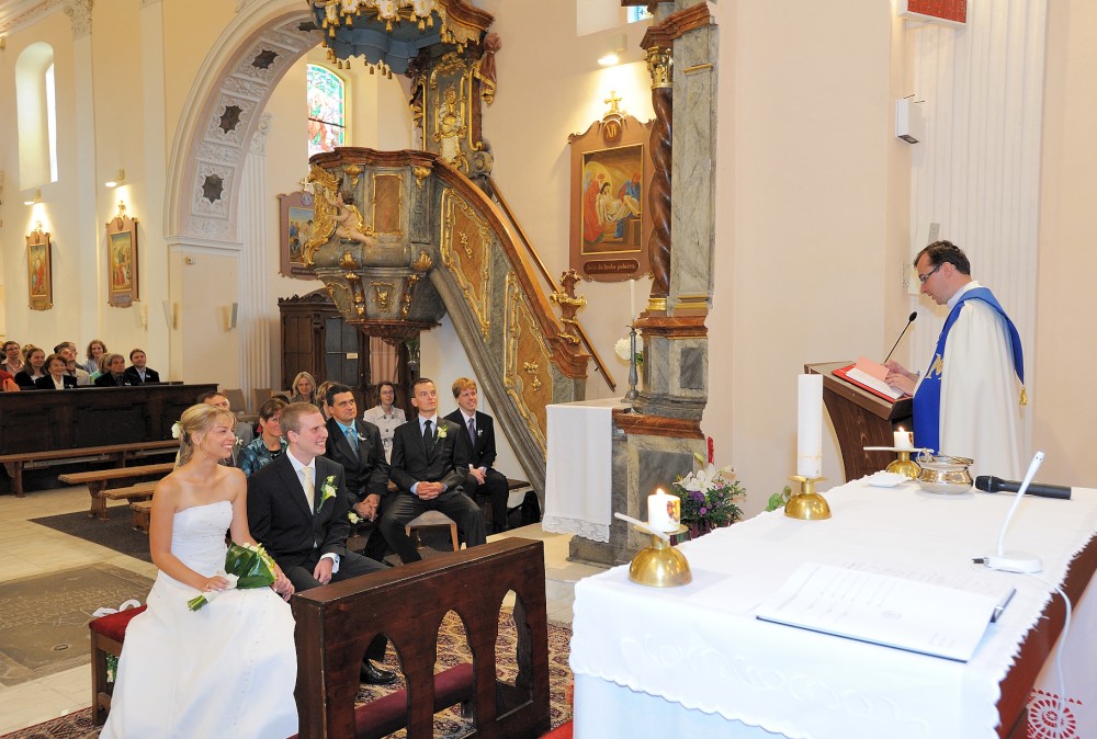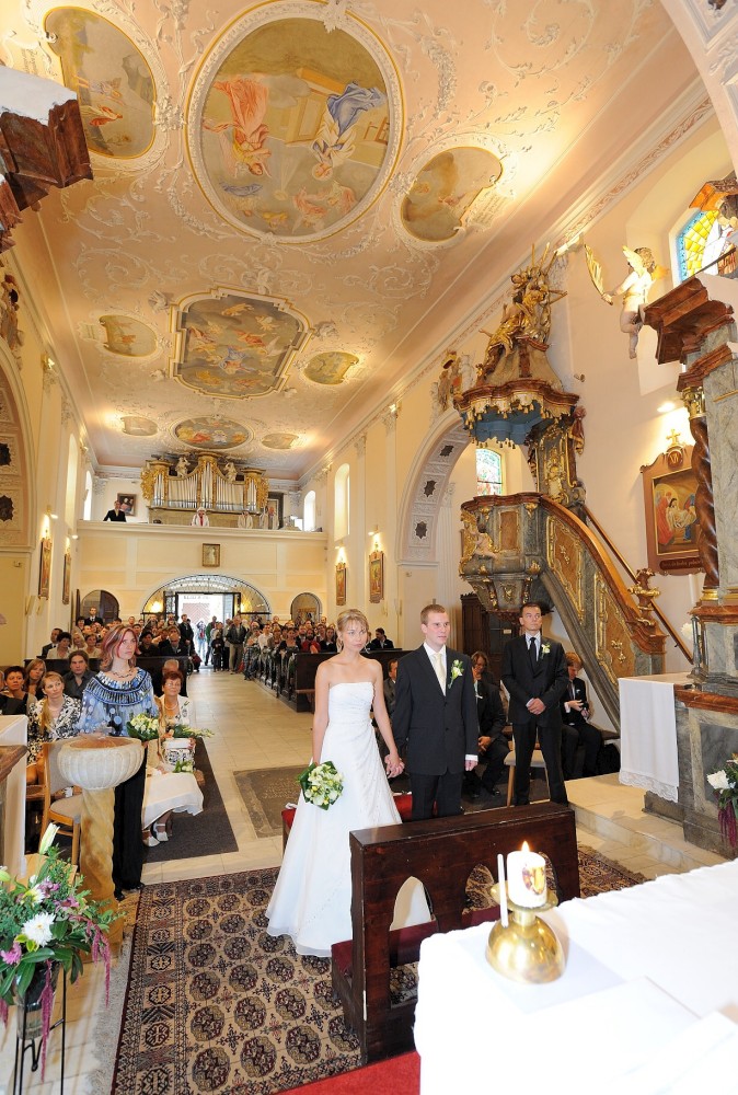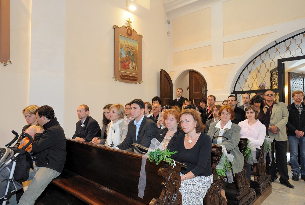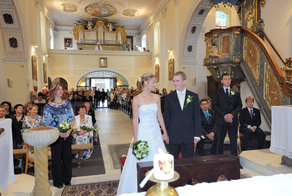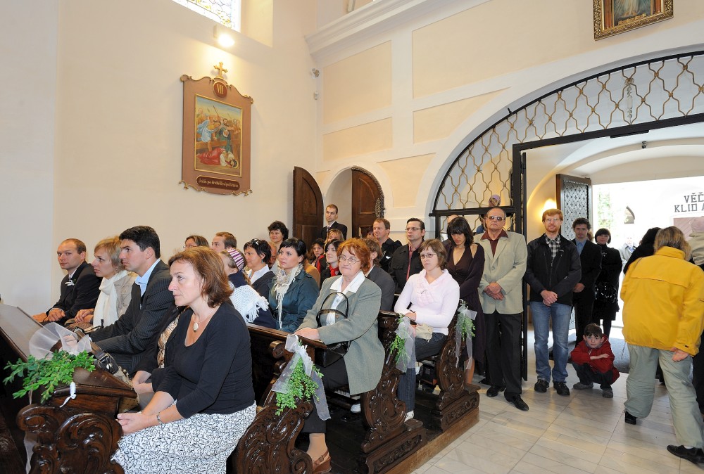Gratulace před kostelem