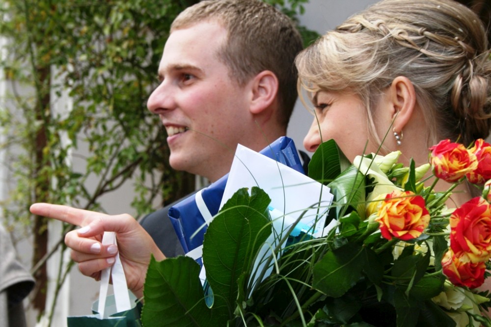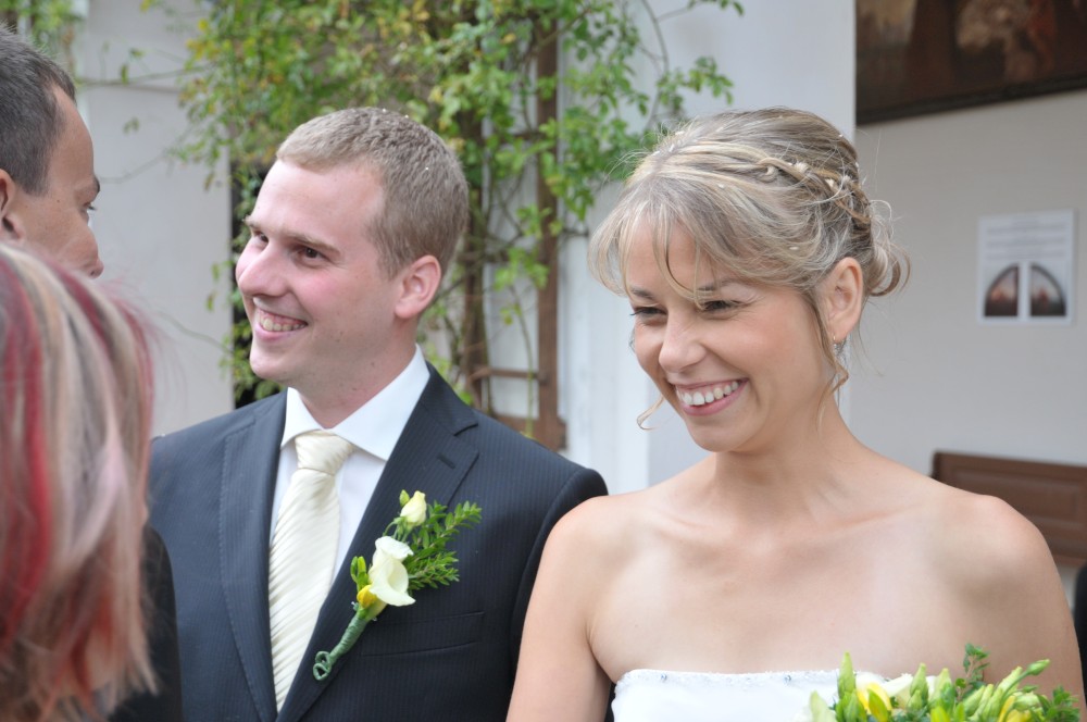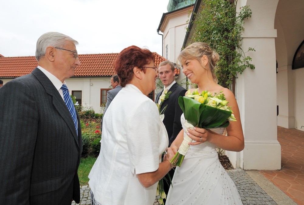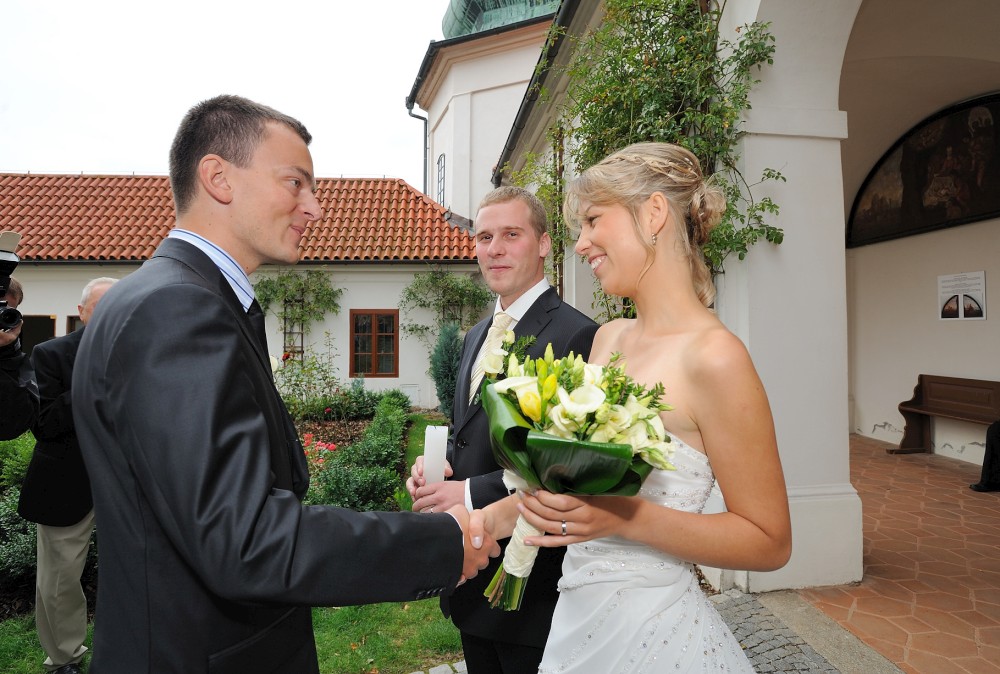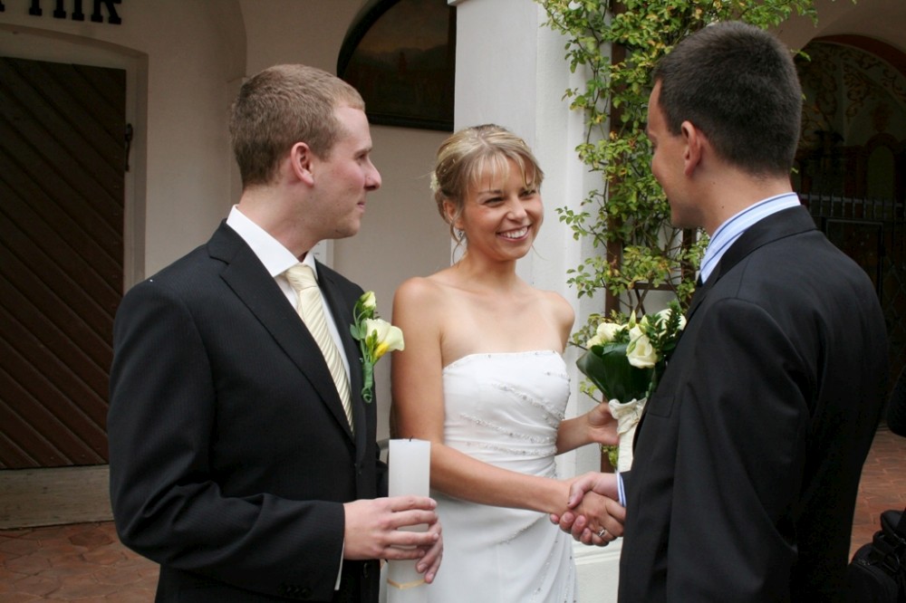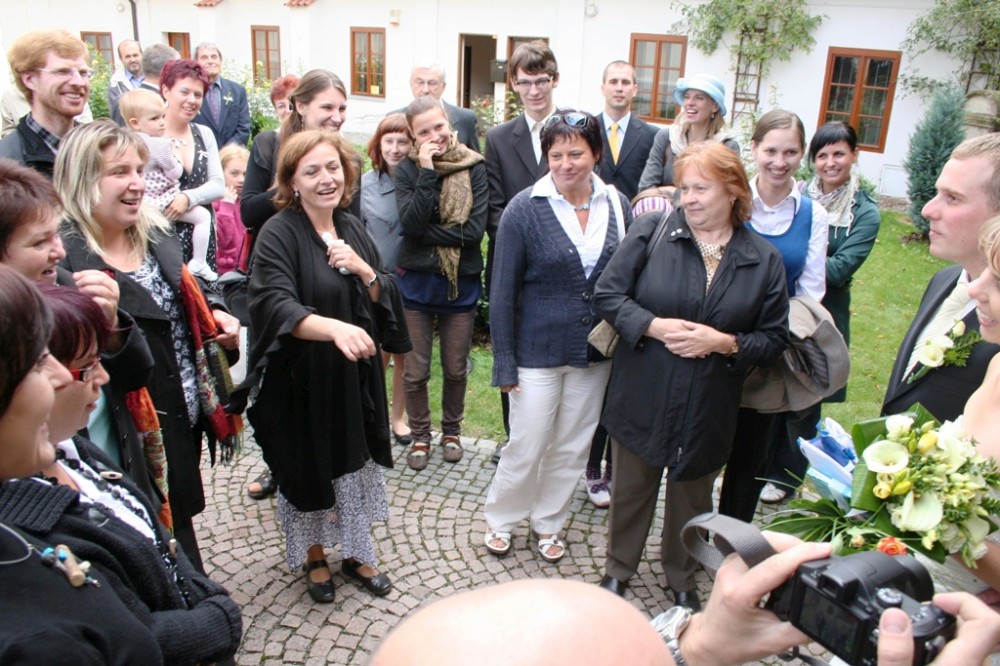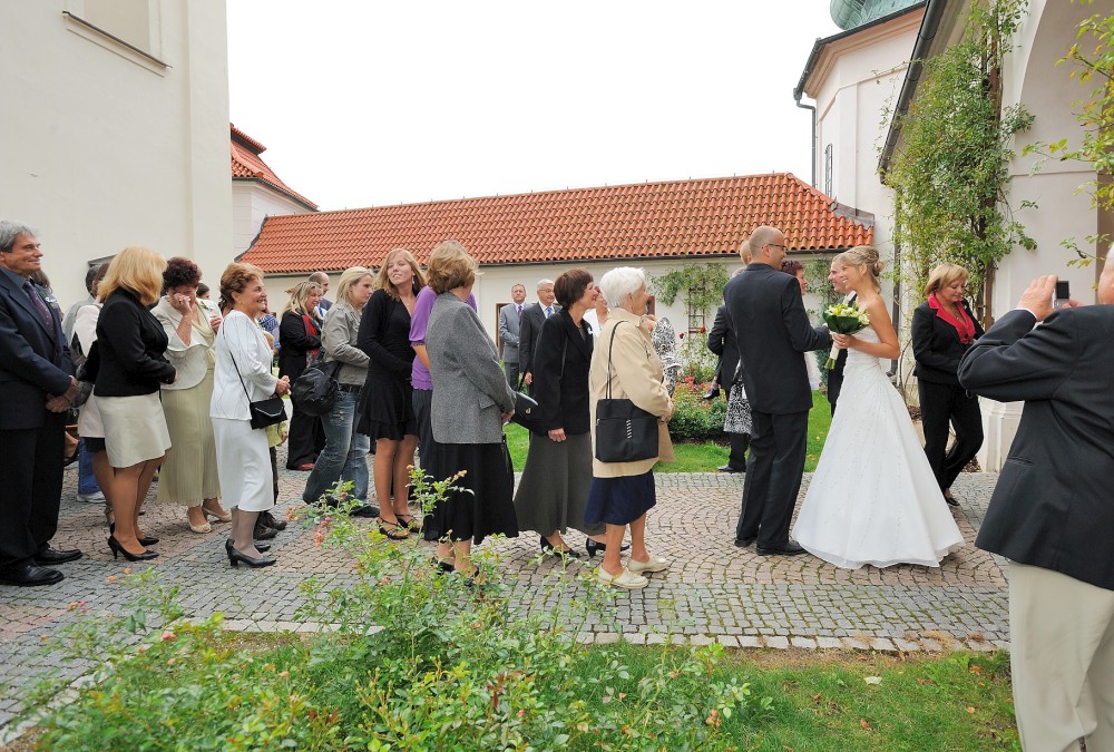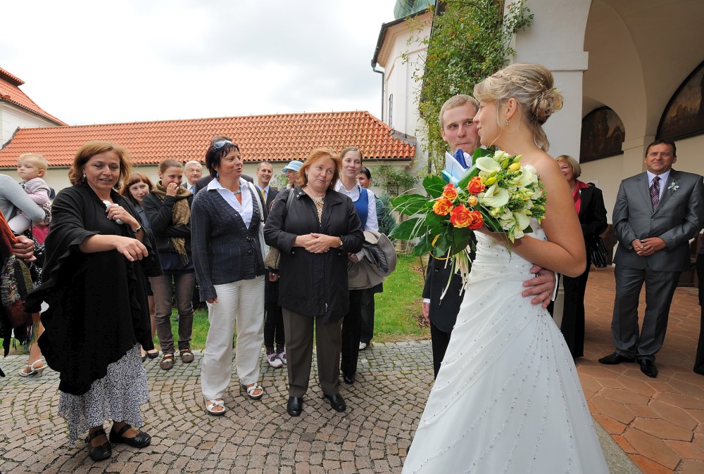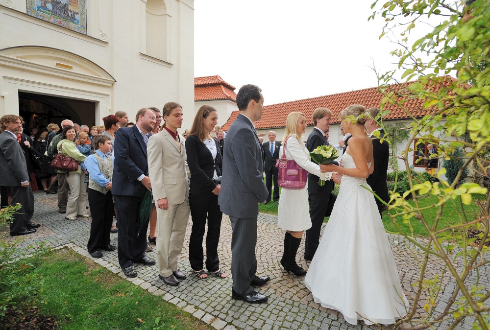 Gratulace před kostelem