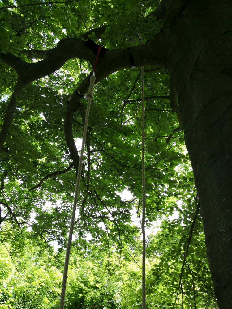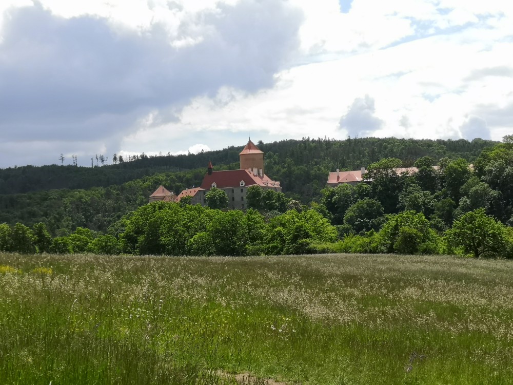 Pokračujeme s Vikim napřed na další stanoviště. Šplhám po laně do koruny stromu pro paradajku. S ostatními se setkáváme v Jubilejní aleji, kde musíme obejít všechny zasazené stropy, opsat písmena a vyluštit šifru. Přesouváme se ke Kohoutovicím na Dub Troják. Začínají se stanovat těžké mraky, jedeme co nejrychleji na Myslivnu. Stíháme uniknout dešti jen tak tak.