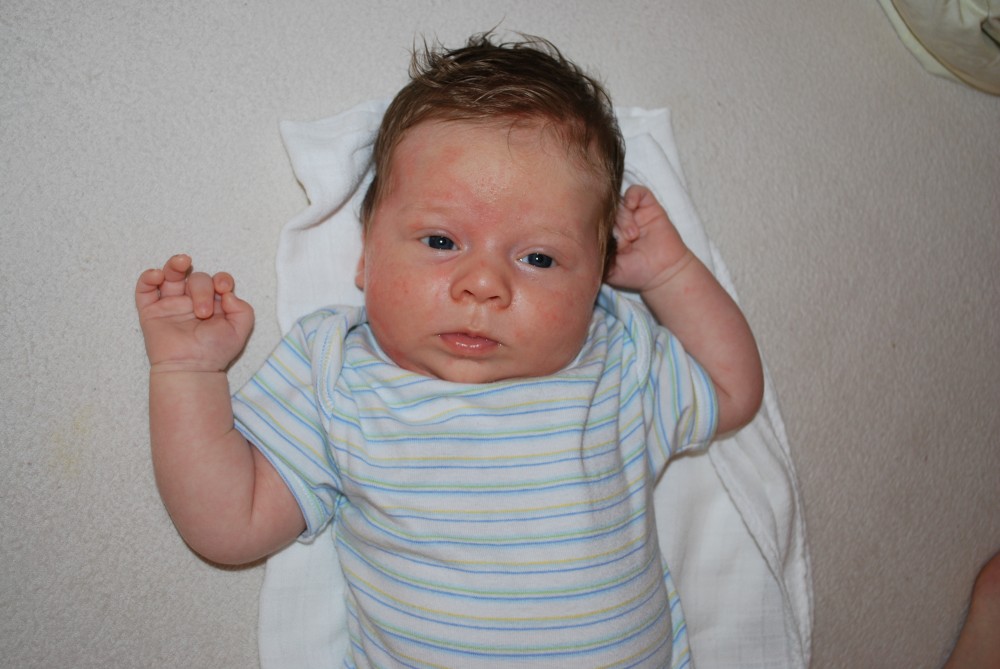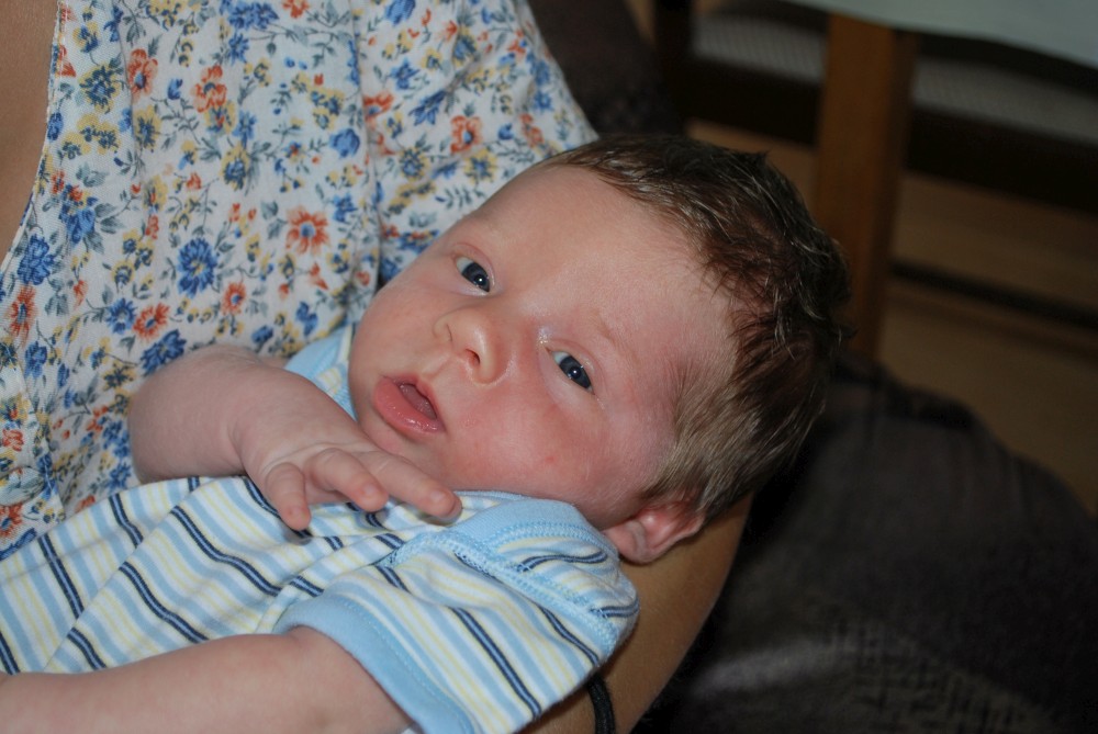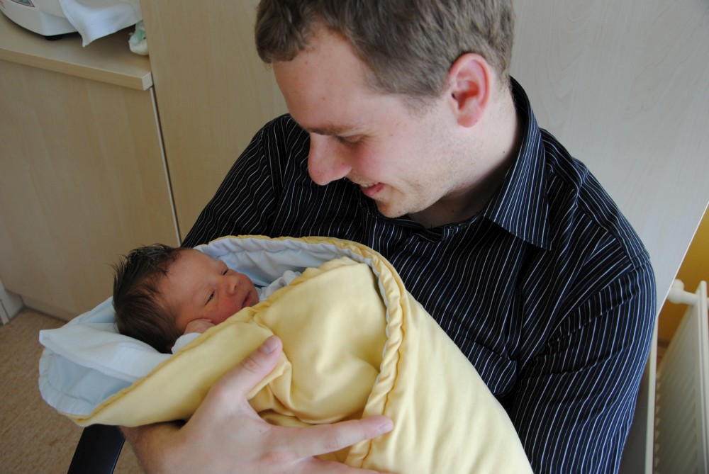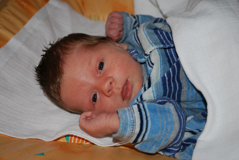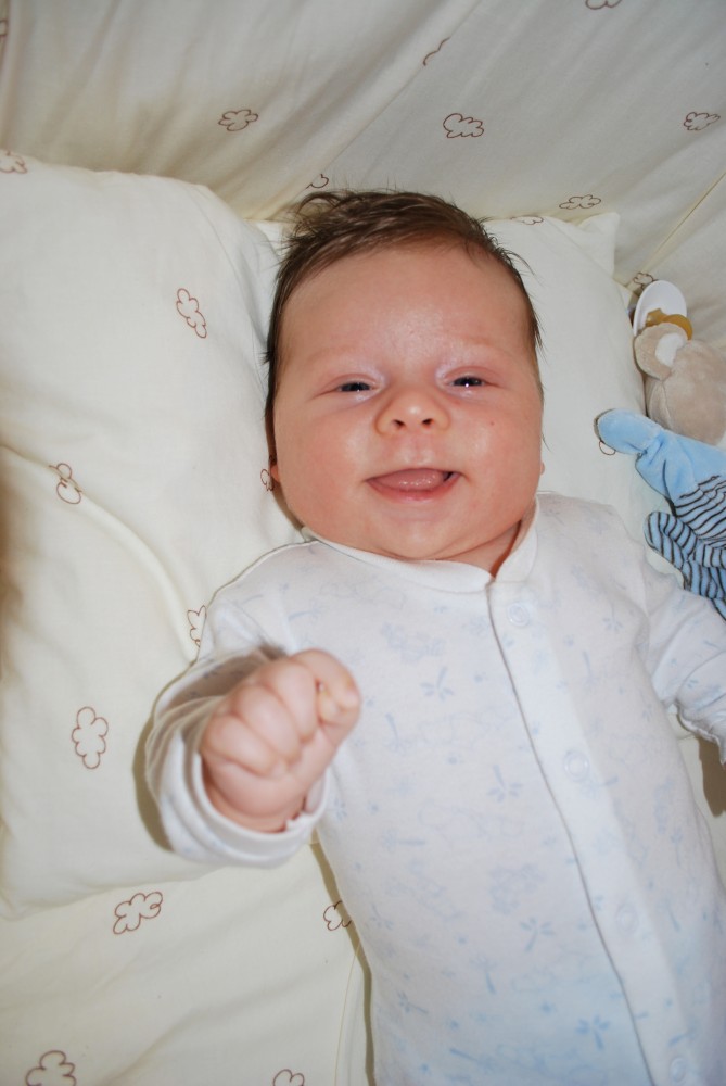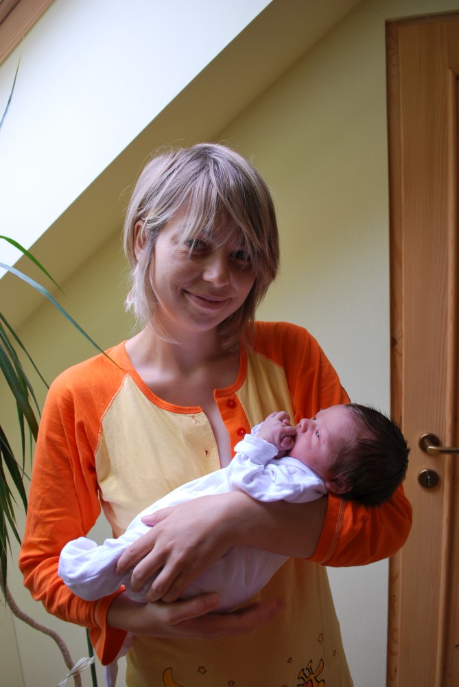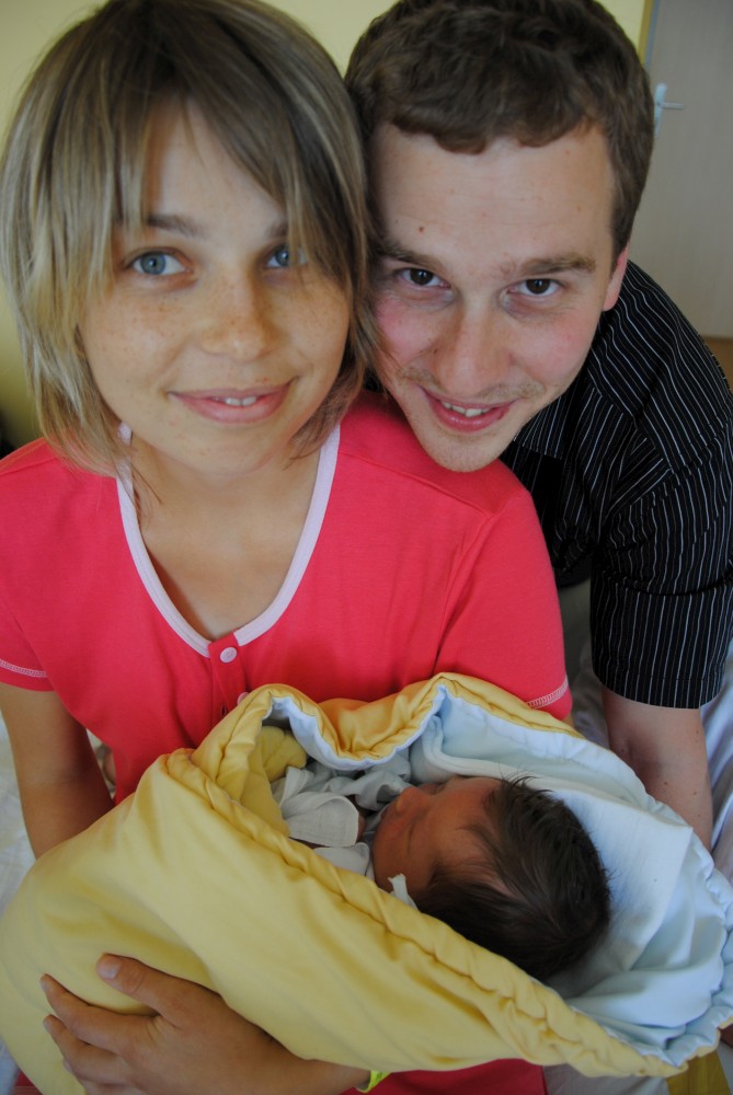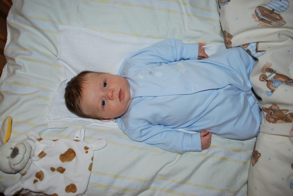 Je to kluk jako buk. Měří 49 cm a má 3,38 kg. Jsme moc šťastní.