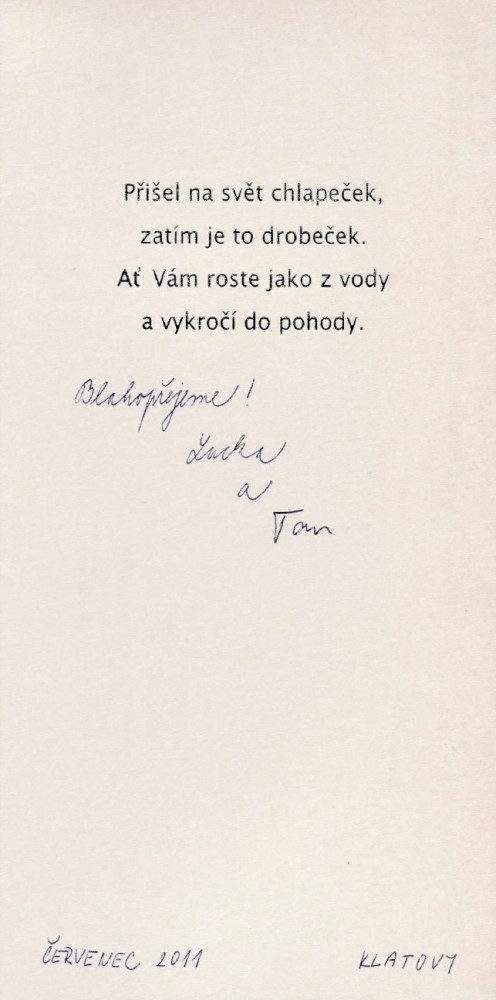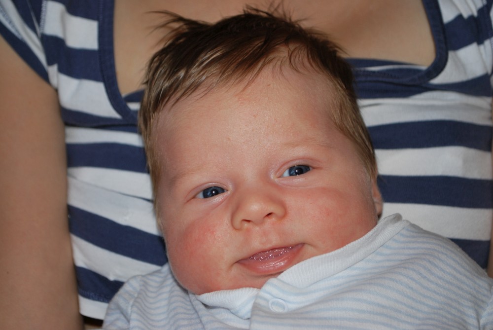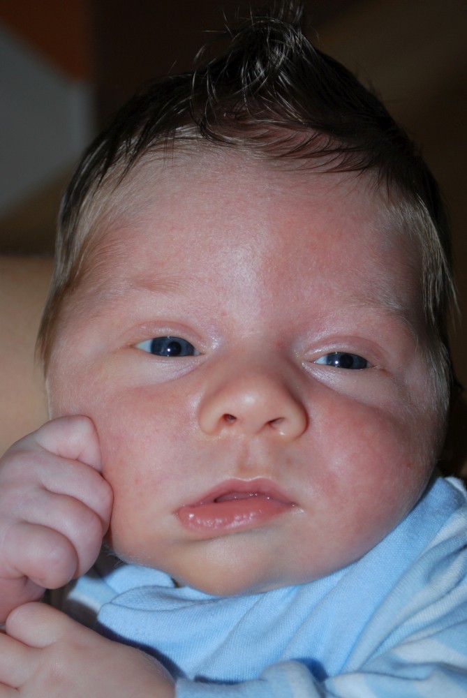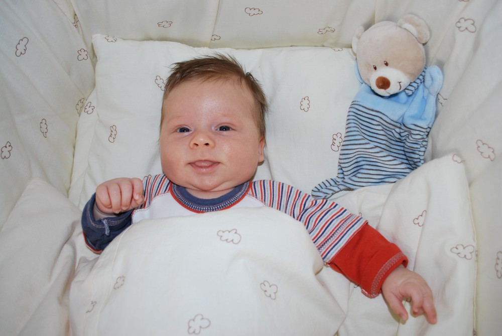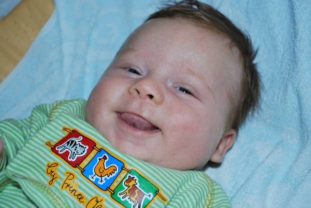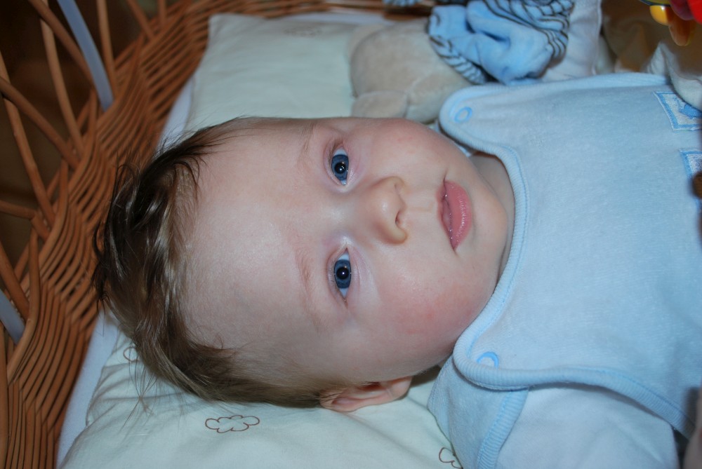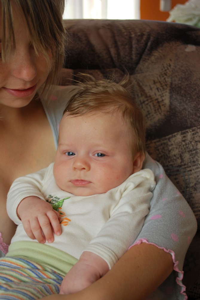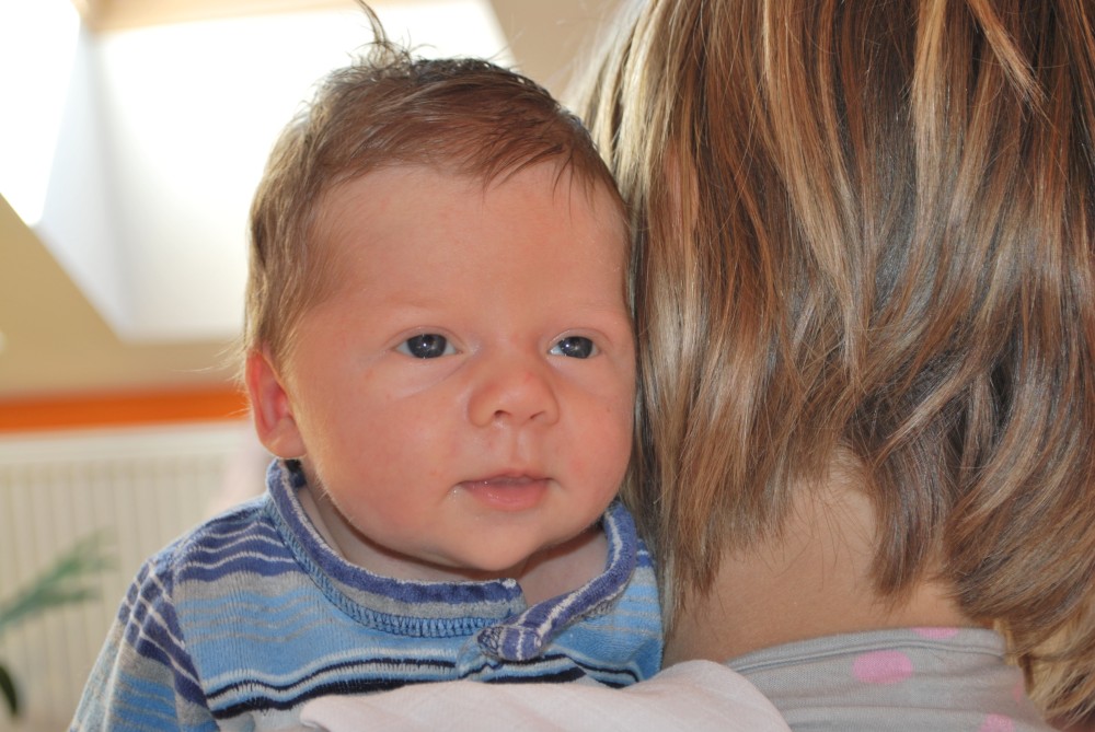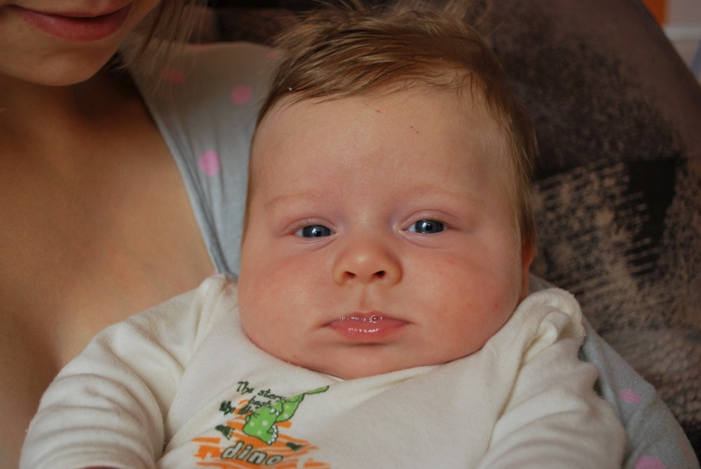 Je to kluk jako buk. Měří 49 cm a má 3,38 kg. Jsme moc šťastní.