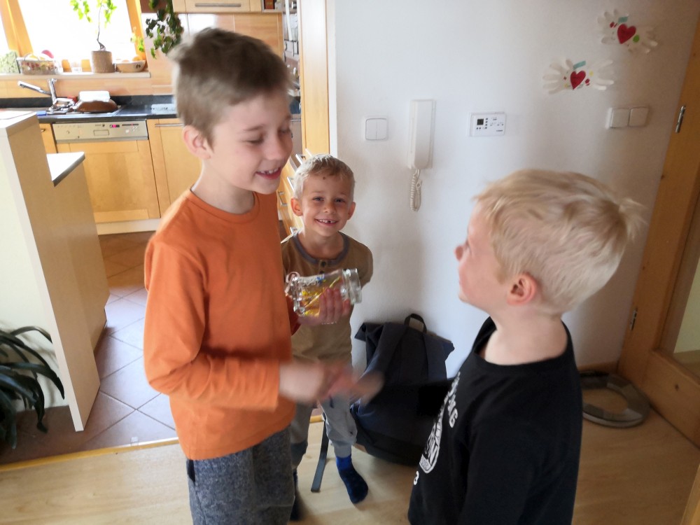 Jedeme na malý cyklovýlet s cílem v Radimovicích. Pak doma přejeme Jiříkovi k jeho dnešnímu svátku.