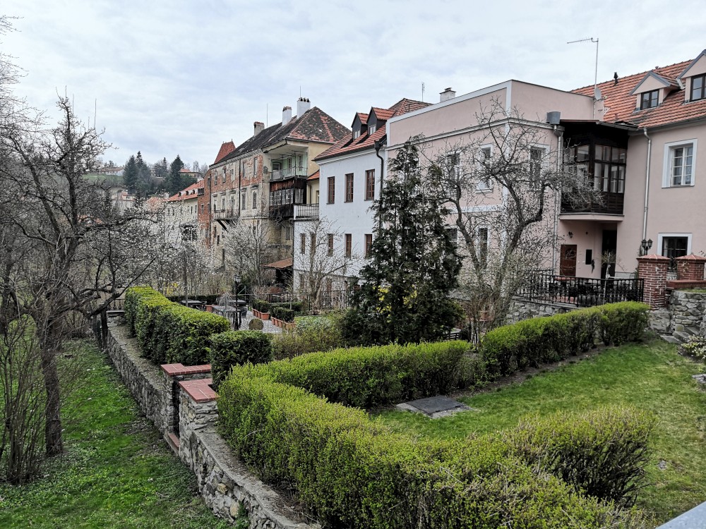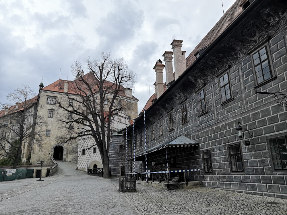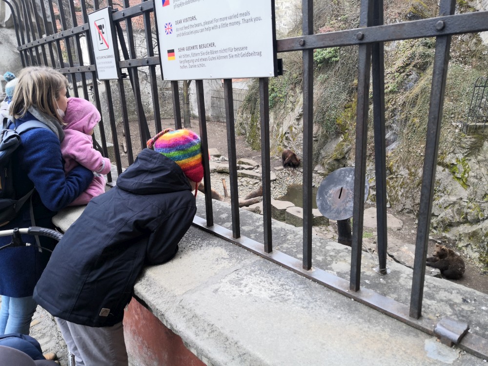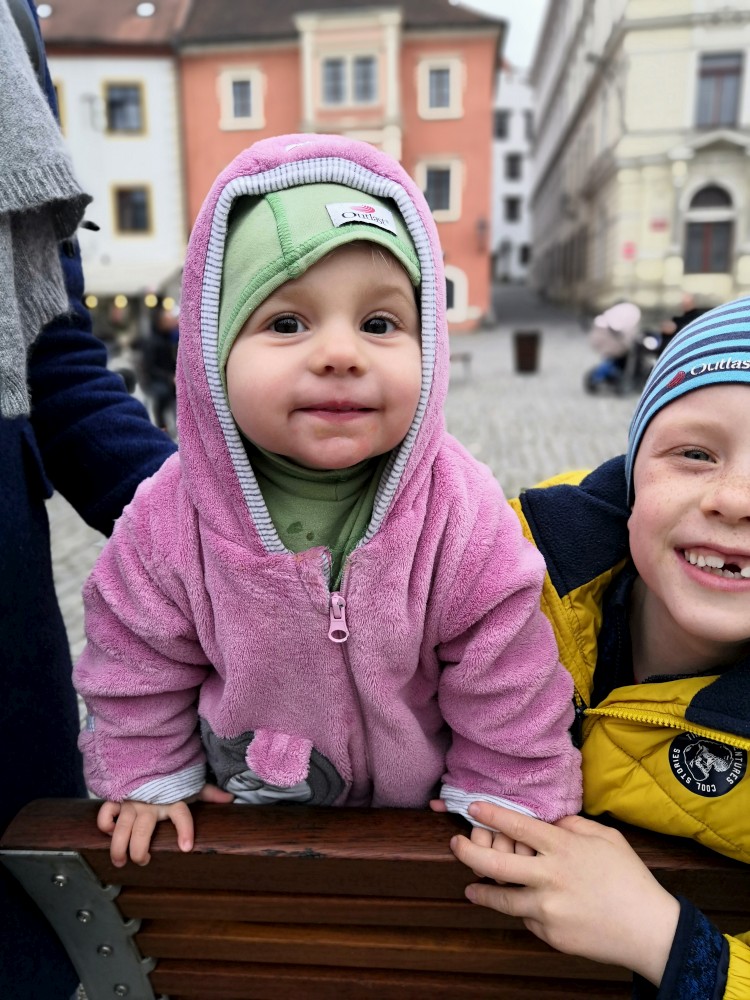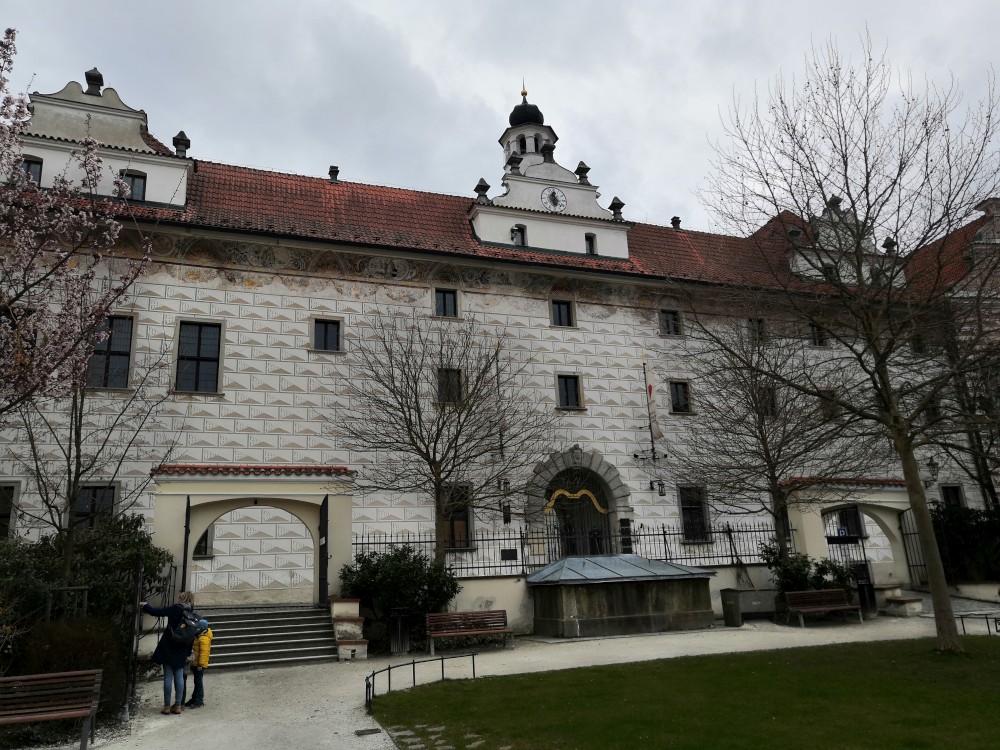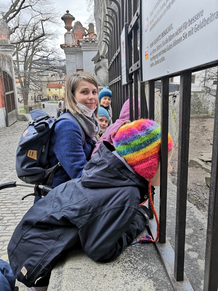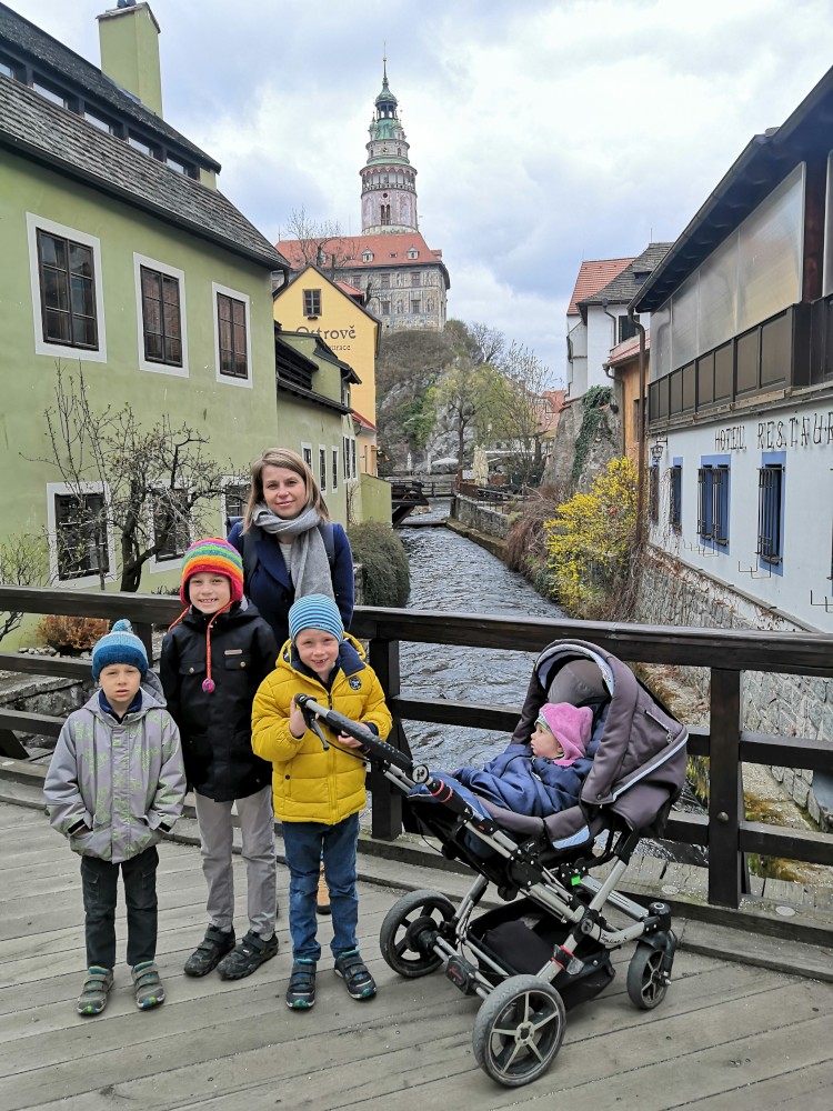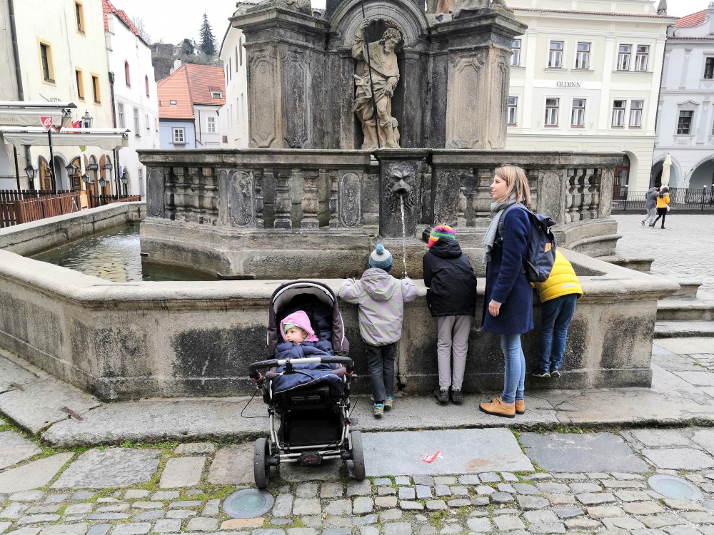 V Horní ulici objednáváme pizzu a jdeme na náměstí Svobody. Tam sedáme na terasu kávu a dortíček, já jdu pro pizzu. Pizzu jíme na lavičkách na náměstí. Pak pokračujeme přes Lazebnický most na druhou stranu Vltavy. Procházíme staré uličky a pak se jdeme podívat na zámek na medvědy. Odtud se Jelení zahradou vracíme k autu.