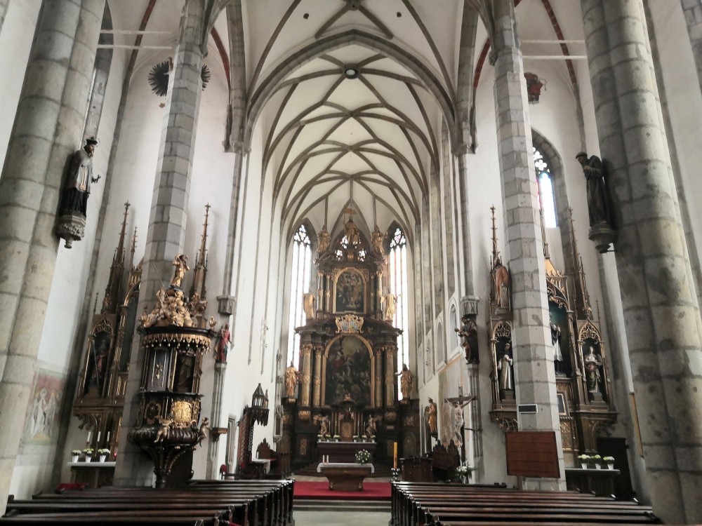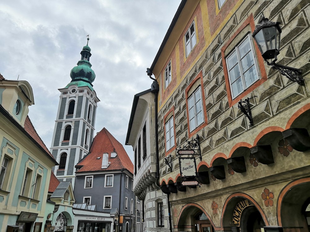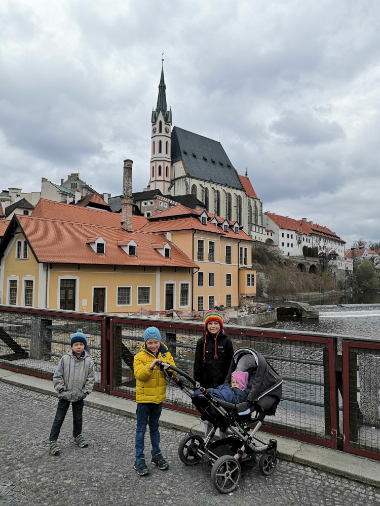Auto necháváme zase na parkovišti v Jelení zahradě a pod Plášťovým mostem jdeme přes lávku do centra. Procházíme městem přes náměstí Svobody na most Dr. E. Beneše. Odtud jdeme Kostelní ulicí ke kostelu Sv. Víta. Nahlížíme dovnitř. Potom se jdeme podívat na vyhlídku na Krumlov v Horní ulici.