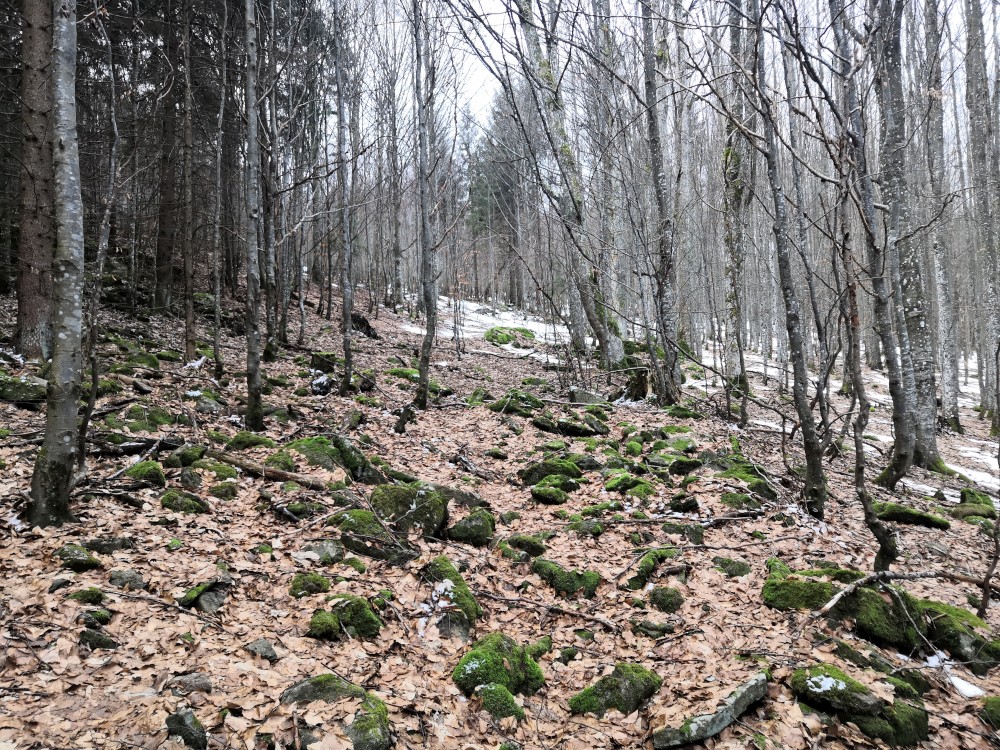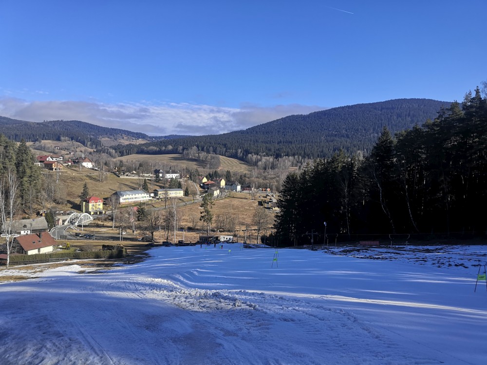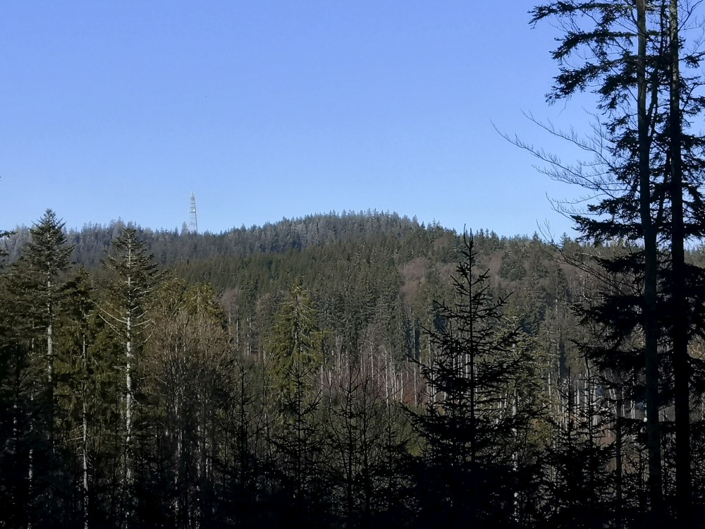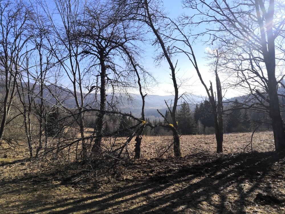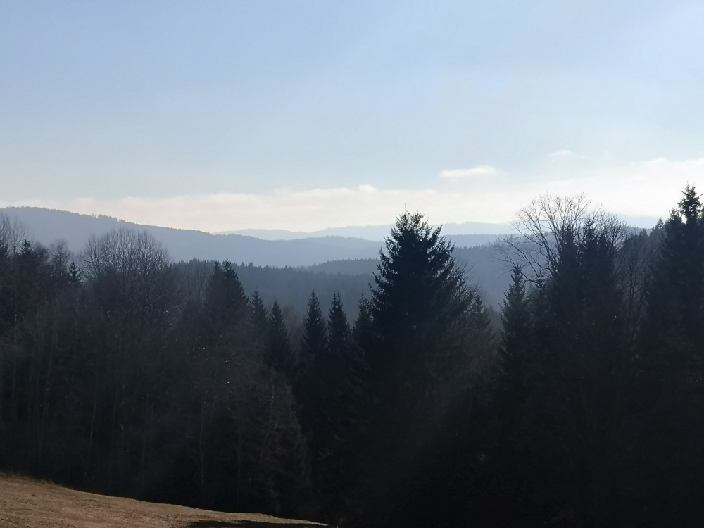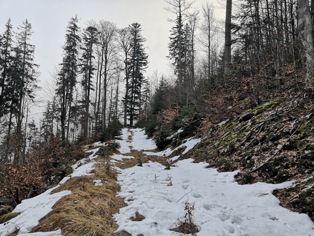 Tam se potkávám s asfaltkou, po které pohodlně klesám ke žluté Vimperské zlaté stezce. Tu jen překračuji a pokračuji rovně. Na rozcestí u turistického přístřešku vidím rysa. Paráda. Bohužel se mi ho nepodařilo zachytit na fotku. Stihl se schovat. Pokračuji tedy na vrchol Chlustov. Dávám sváču a jdu zpět k autu. Jdu paralelní cestou ke zlaté stezce. Na tu se napojuji až u Havránky. Pokračují po ní přes sjezdovku, kde jezdí mladí sjezdaři, až k autu.