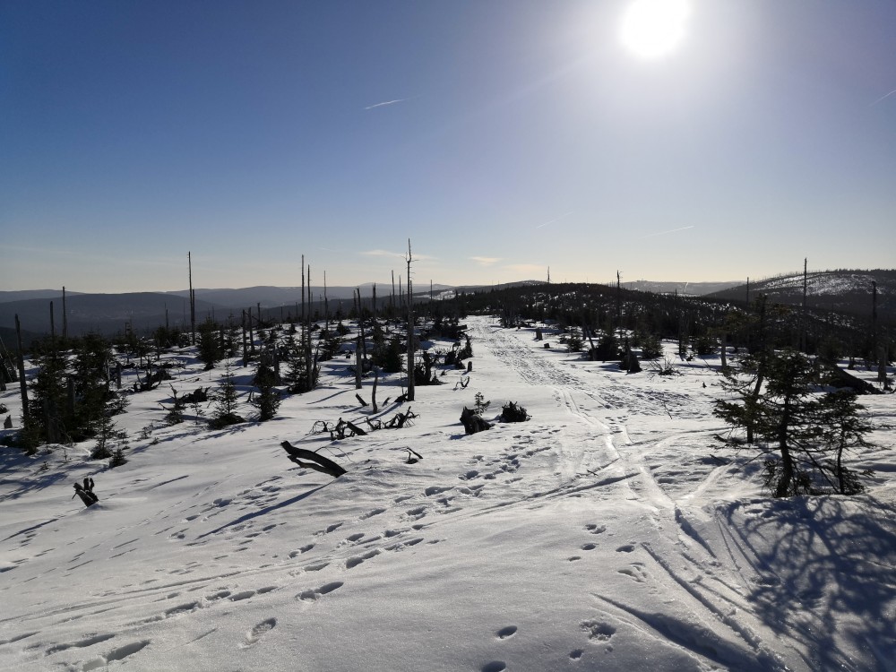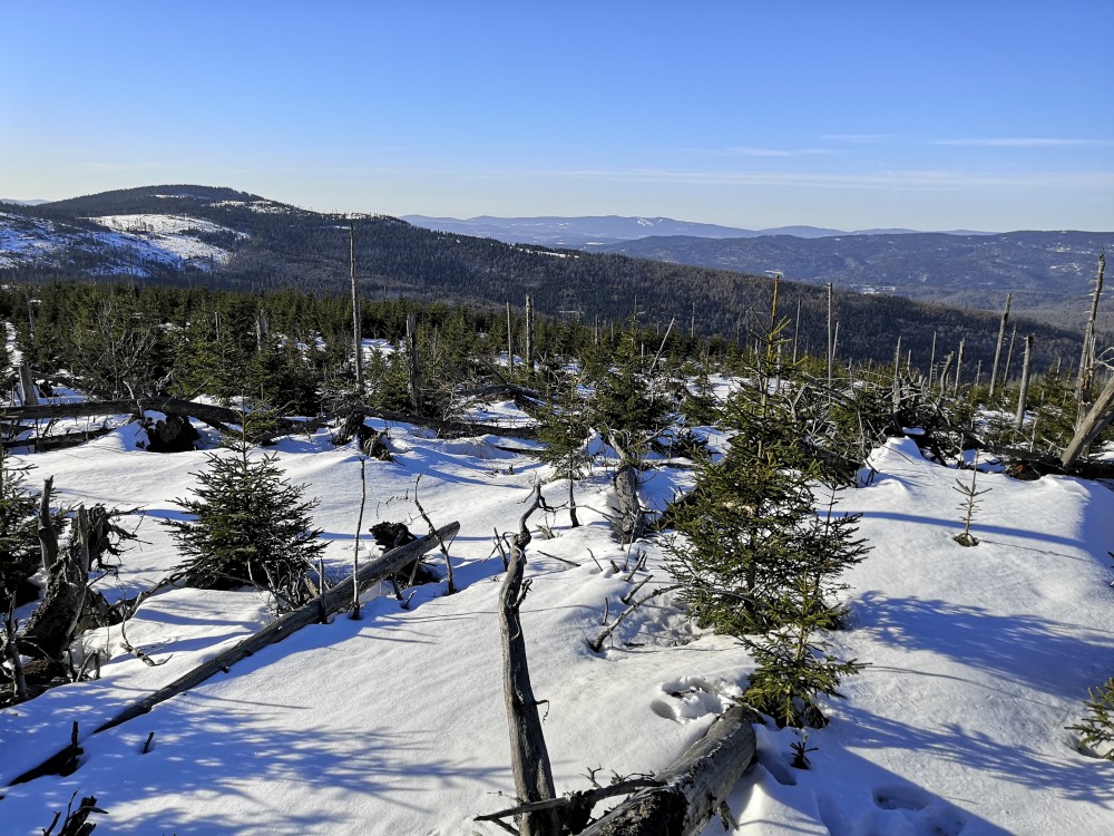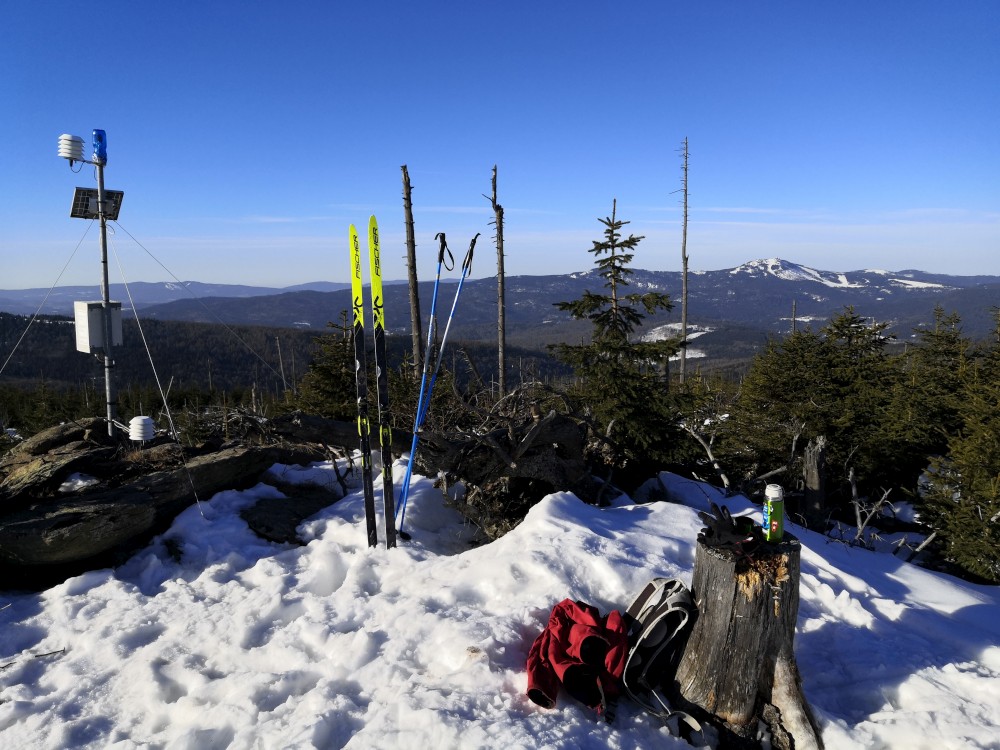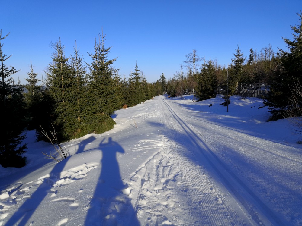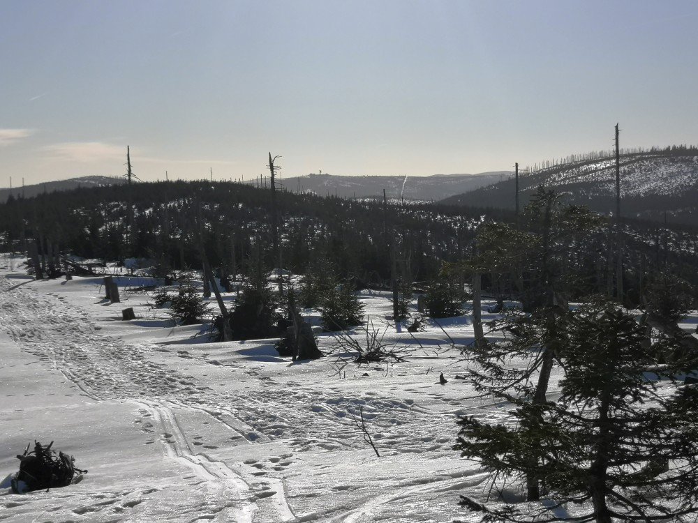 Vyrážím zase na Šumavu zdolat nějaký vrchol. Se sněhem na běžky už to není ani na Šumavě žádná sláva, ale okruh mezi Železnou Rudou a Novou Hůrkou by to mělo být ještě uspokojivé. Jako cíl tedy volím vrchol Polom a beru si na to běžky. Auto nechávám na parkovišti u Hůrecké silnice.
