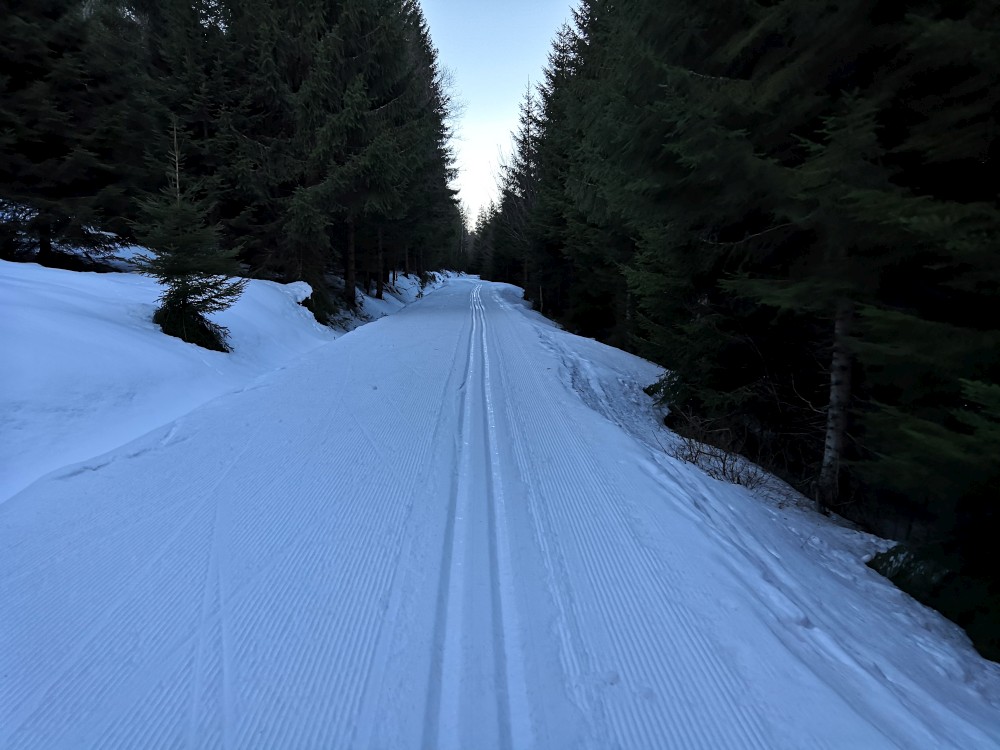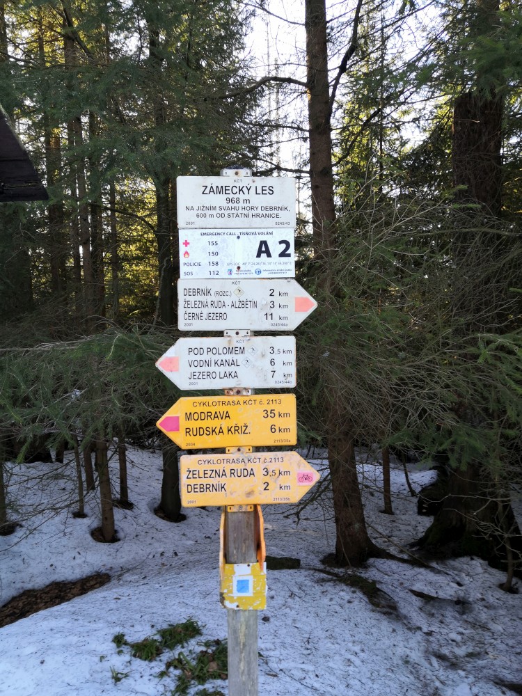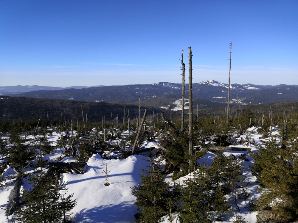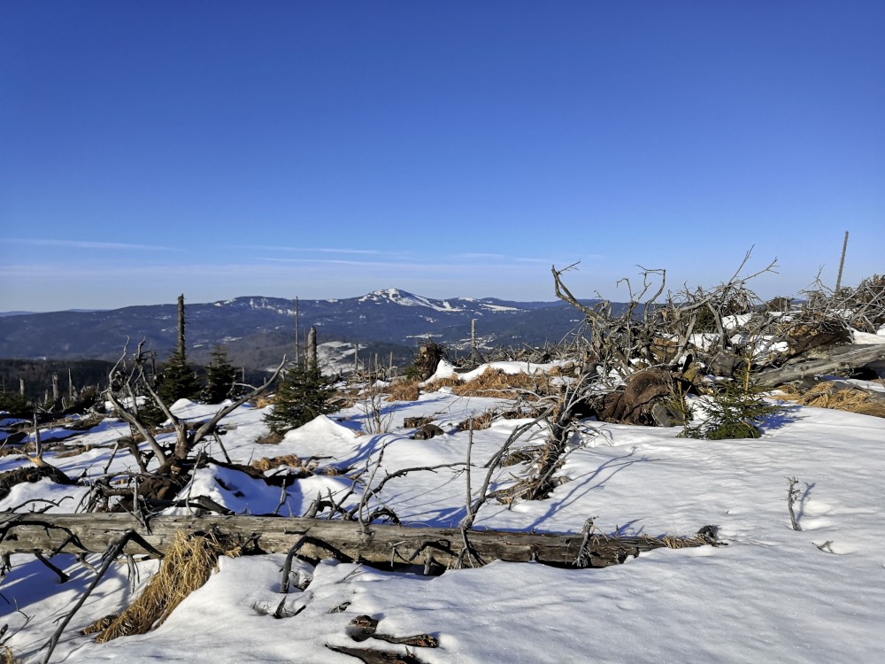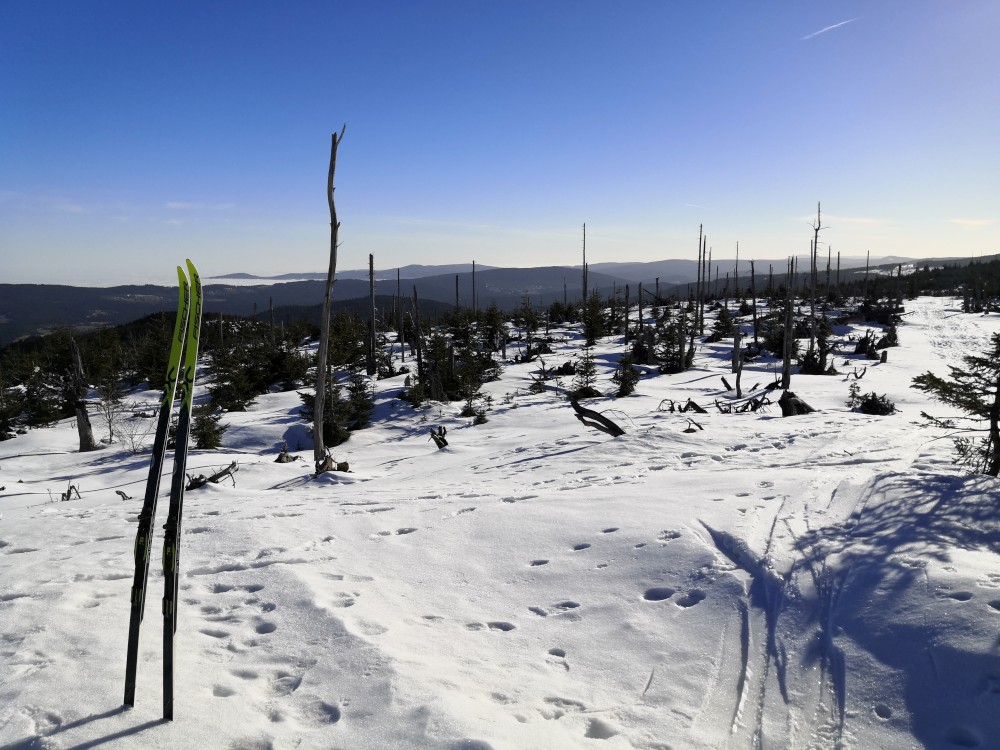 Vyrážím zase na Šumavu zdolat nějaký vrchol. Se sněhem na běžky už to není ani na Šumavě žádná sláva, ale okruh mezi Železnou Rudou a Novou Hůrkou by to mělo být ještě uspokojivé. Jako cíl tedy volím vrchol Polom a beru si na to běžky. Auto nechávám na parkovišti u Hůrecké silnice.