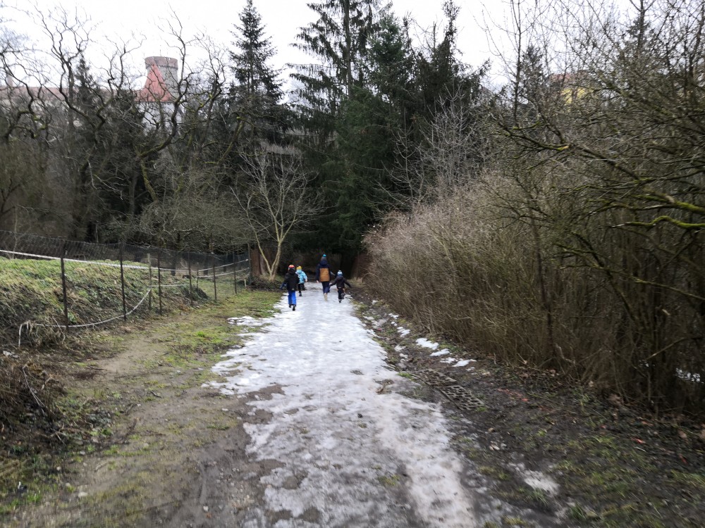 Dnes máme sraz s Mášou. Jdeme na procházku na Harrachovku.