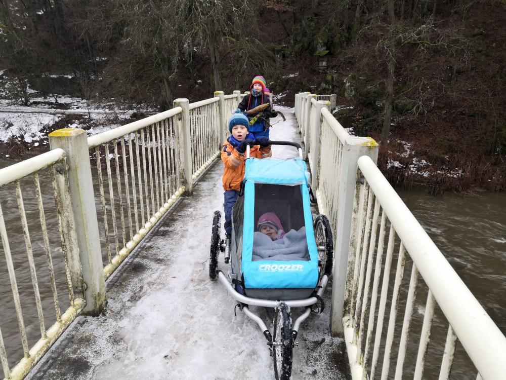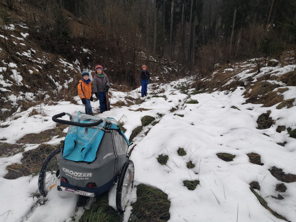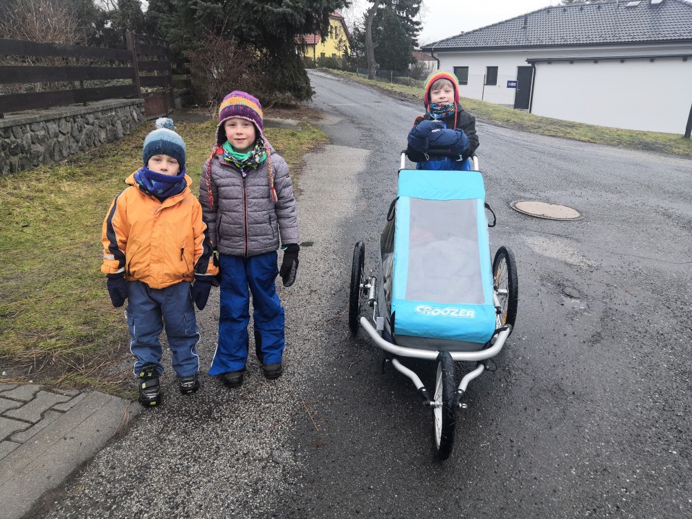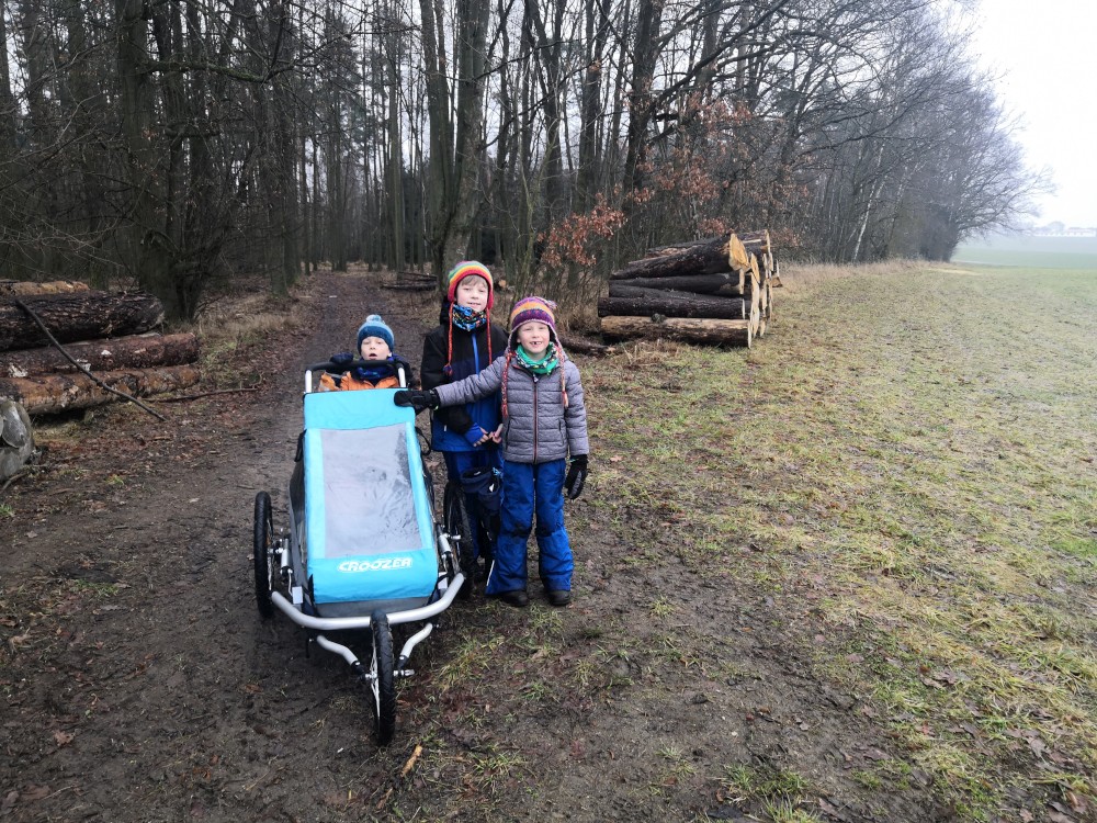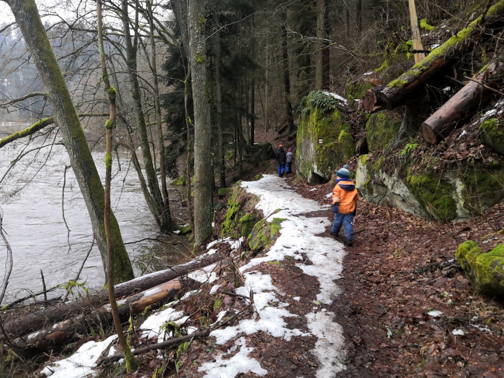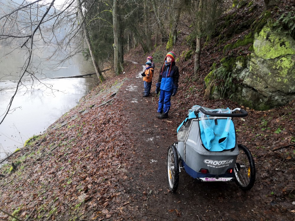 Jana jde na sraz s holkama. Dnes už jsem slušně vyvětraný ze Šumavy, ale přesto vyrážíme s dětma na výlet. Jdeme Vlčákem na Hnojnou Lhotu, odtud dolů dobrodružným terénem k Lužnici a podél ní na Harrachovku. V Lužnici je opravdu hodně vody. Na Harrachovce dáváme malé občerstvení a jdeme Vlčákem domů.