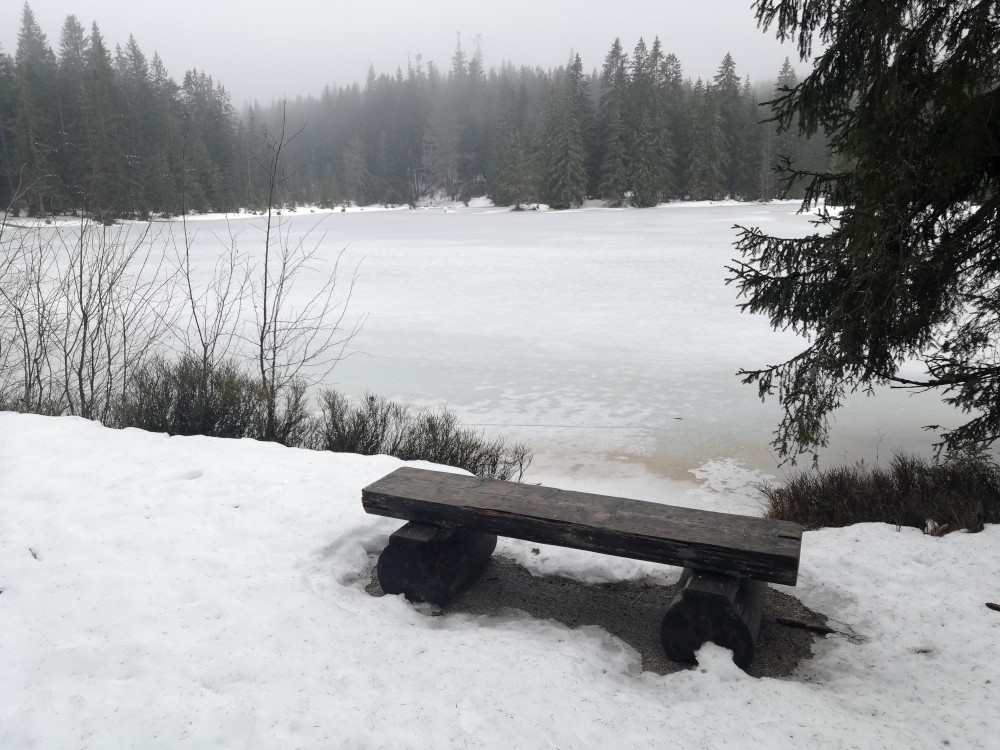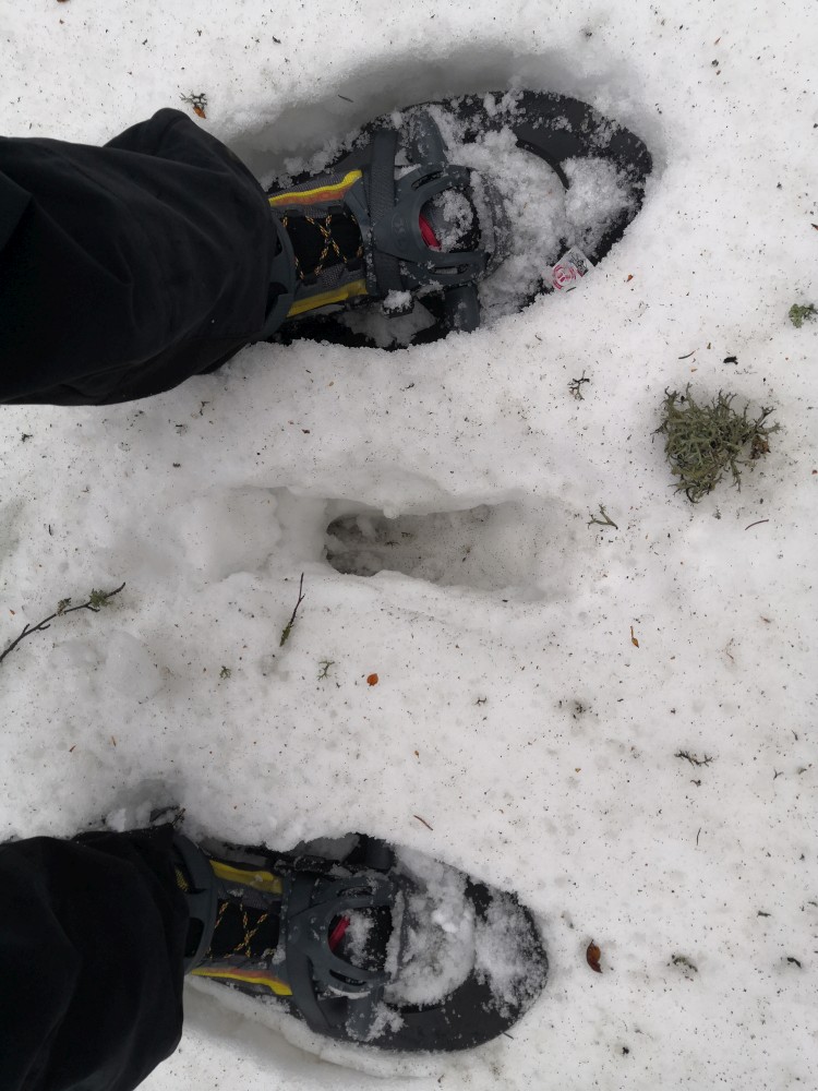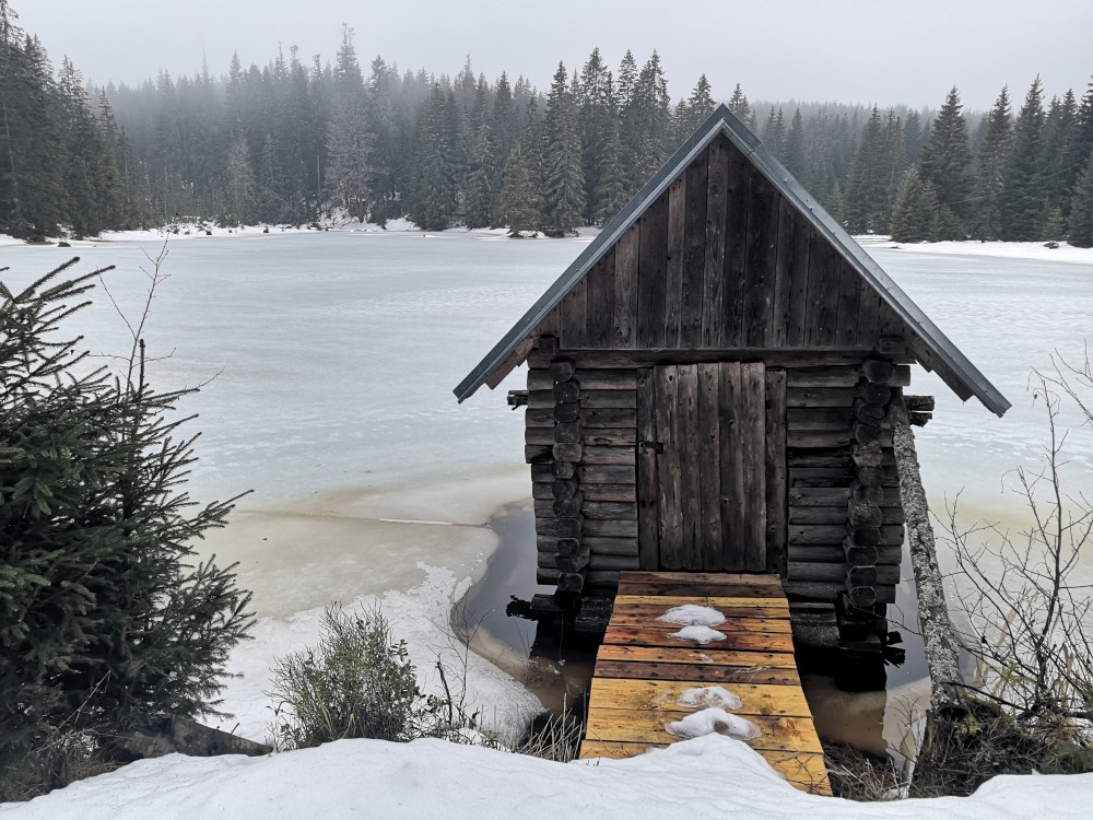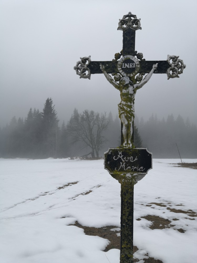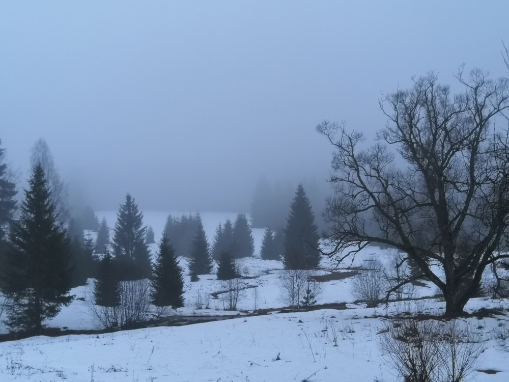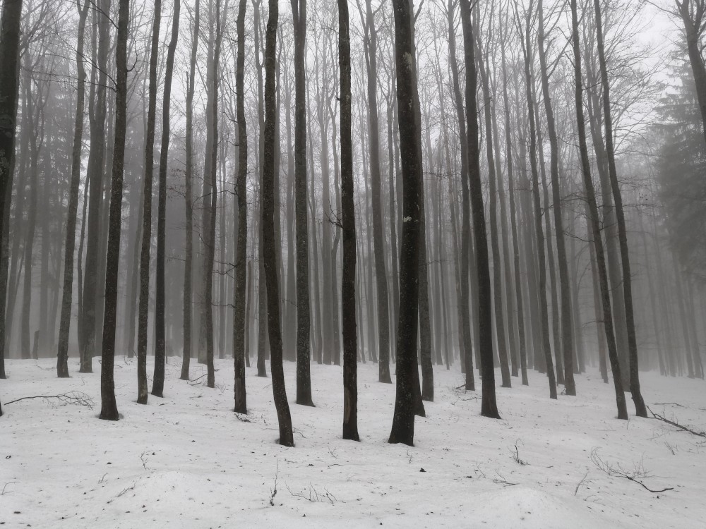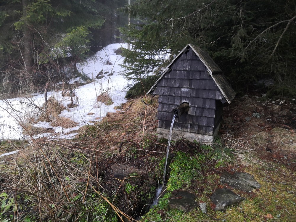 Vyrážím zase hodně brzy ráno zdolat další šumavskou ultratisícovku. Tentokrát Polecký vrch. Auto nechávám na parkovišti na Polce. Jdu po modré, ze které odbočuji k prameni U Diany, odbočuji z asfaltky doleva. Nasazuji sněžnice a jdu volným terénem na Polecký vrch. Počasí je velmi sychravé.