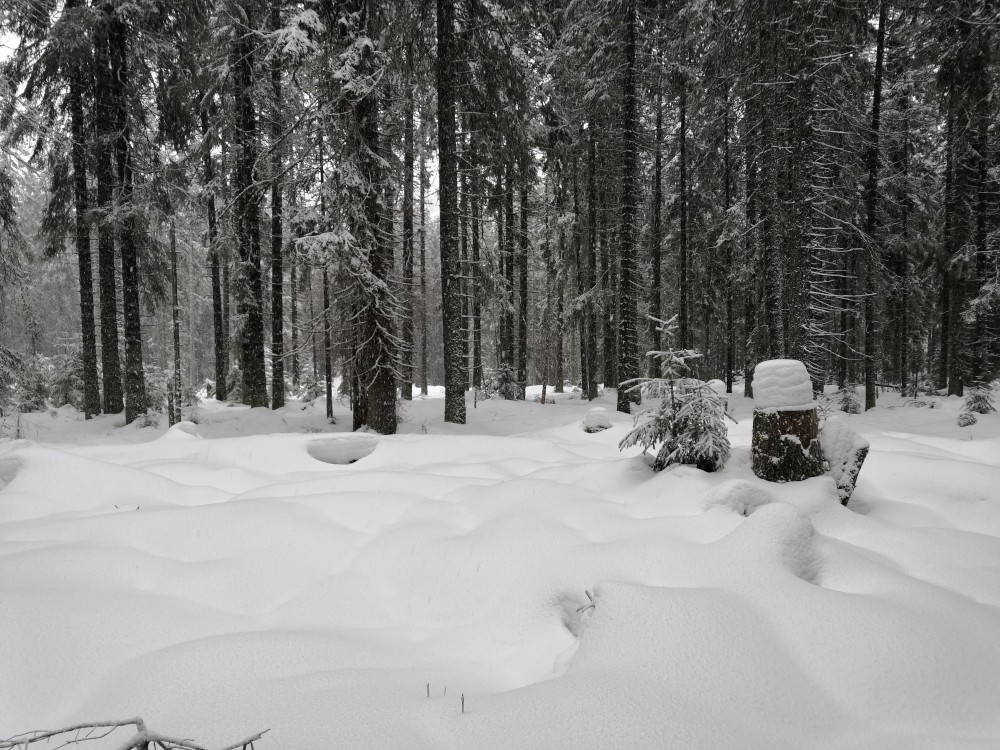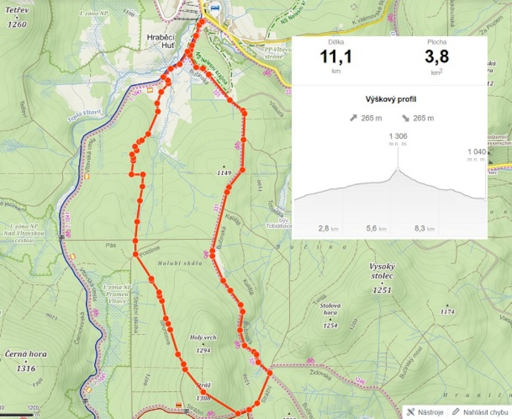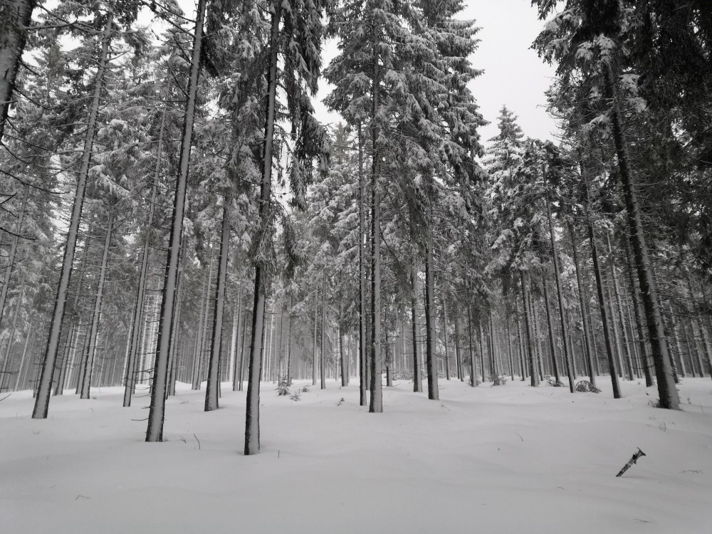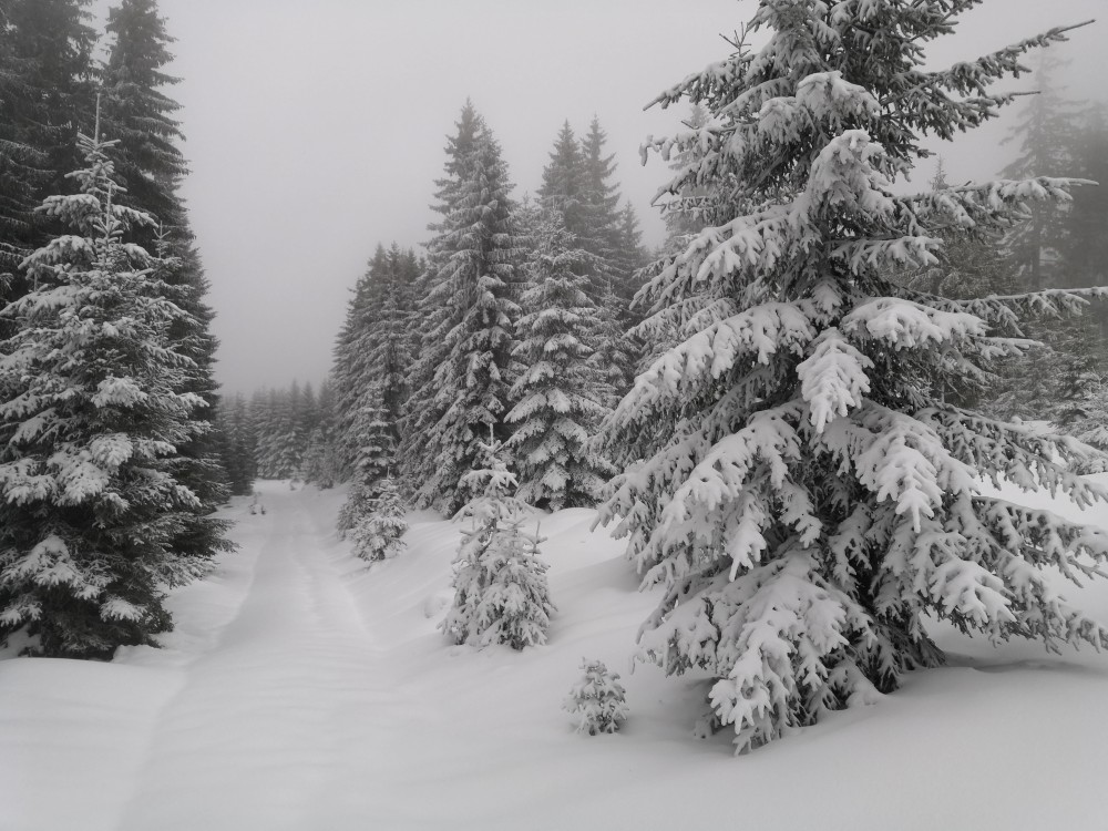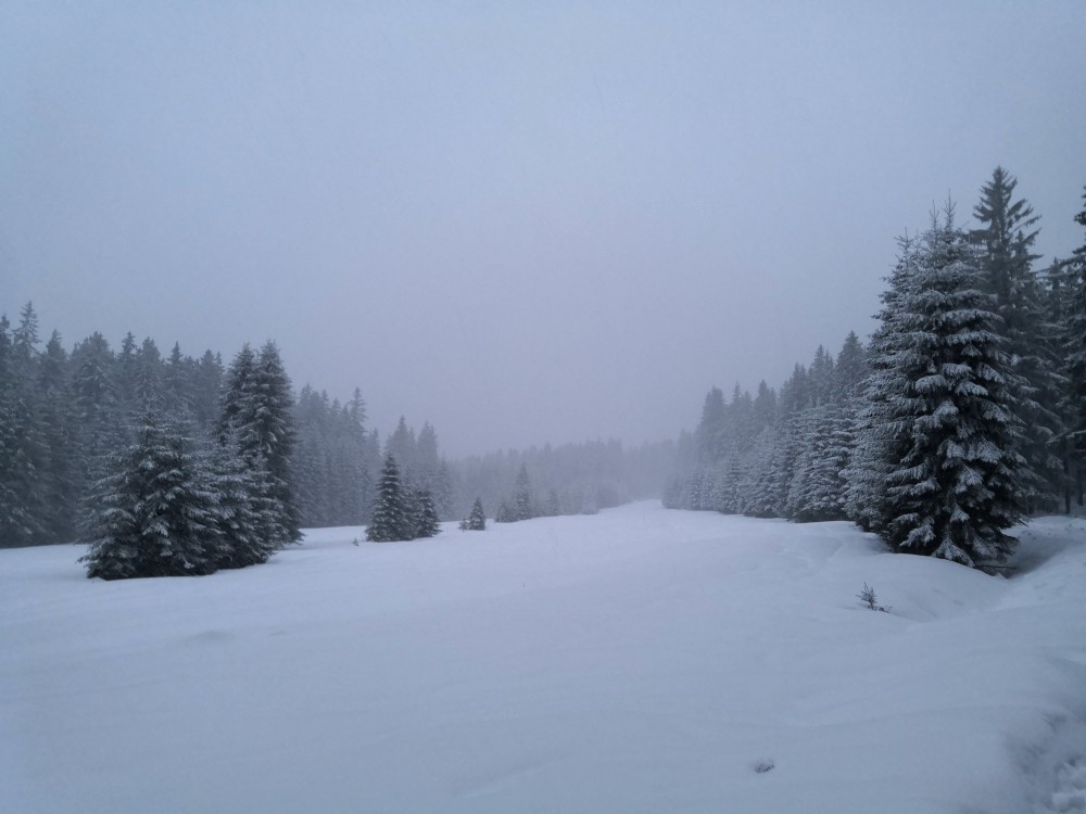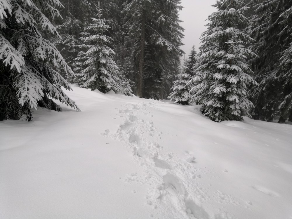Jsem na vrcholu. Na nějaké dlouhé pobývání zde to nebude. Dávám malé občerstvení, přemáhám myšlenku, že bych se vrátil stejnou cestou zpět a vyrážím dle původního plánu zpět na Kvildu volným terénem na sever. Jdu po zasněžené Štruncově cestě, pak mokřinami kolem Lesního potoka na Kvildu. Sedám do auta a na oběd jsem doma.