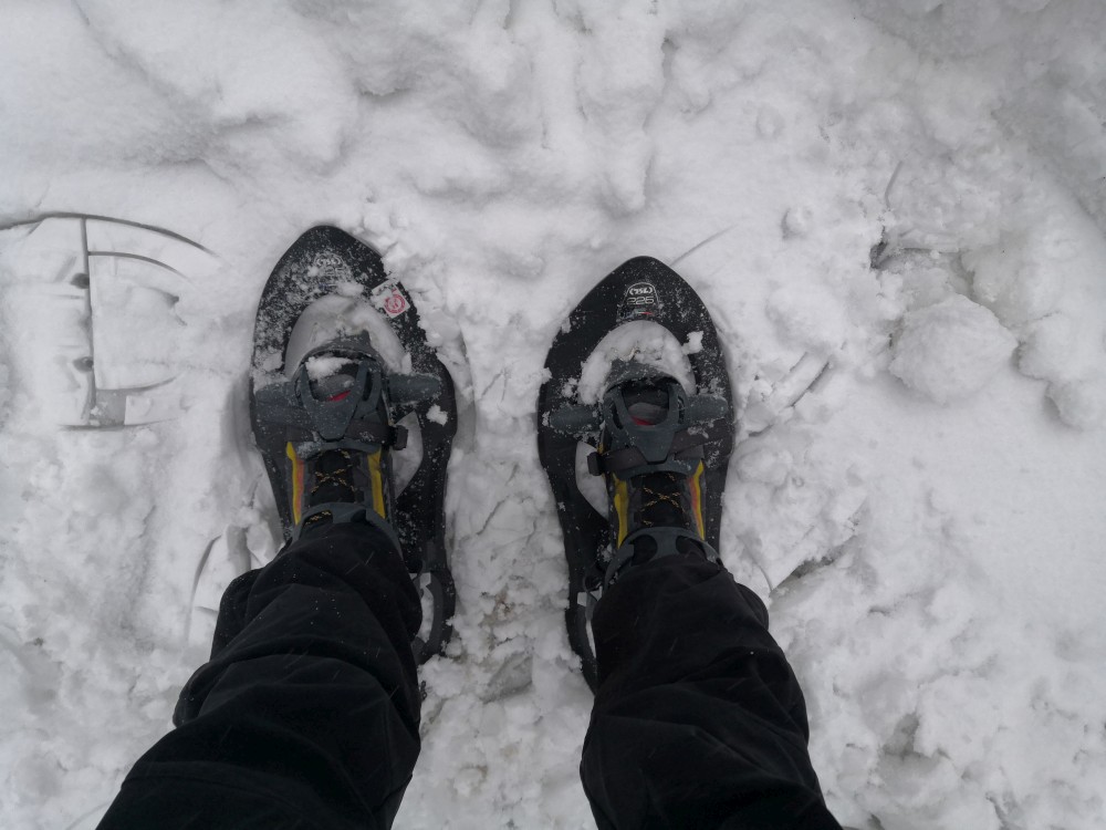 Vyrážím na Šumavu na sněžnice. Tentokrát jedu sám. Jedu brzy ráno, cca v 6:30 jsem na Kvildě. Pohodlně parkuji mezi karavany a vyrážím pěšky po prohrnuté asfaltce směr Bučina. Těsně před Bučinou odbočuje Strážní cesta. Tady už musím nasadit sněžnice. Jdu vedle běžkařské stopy.