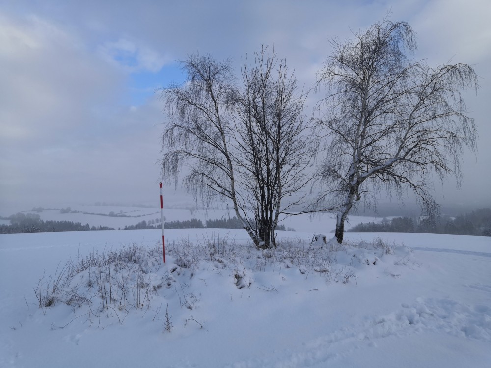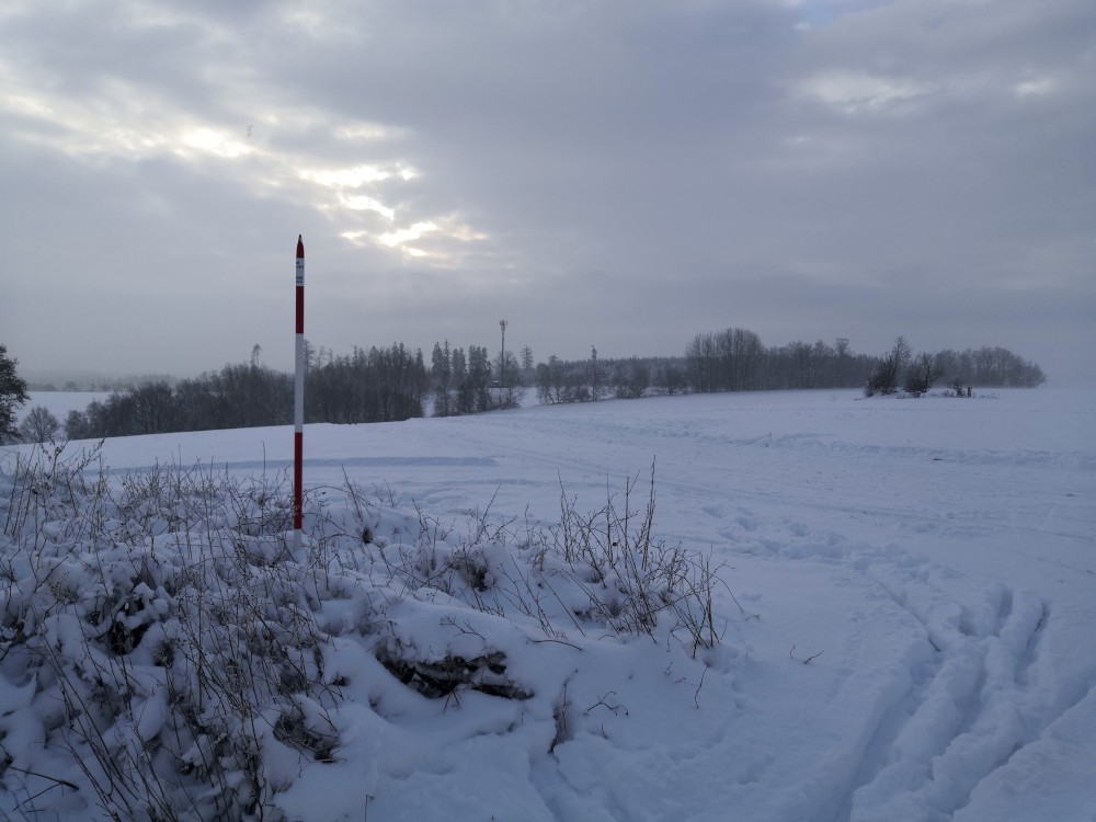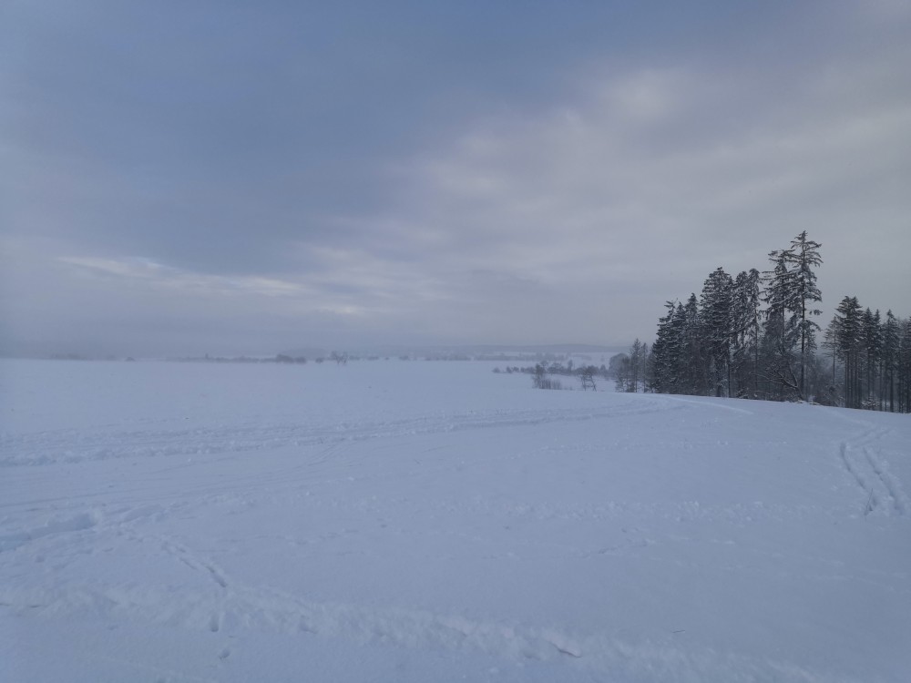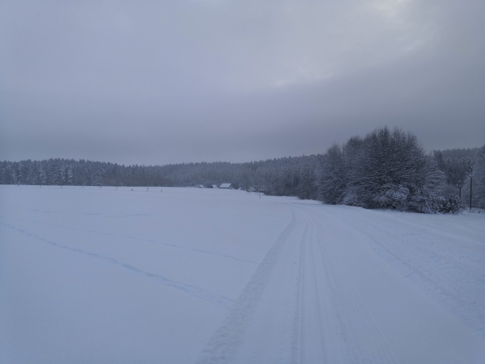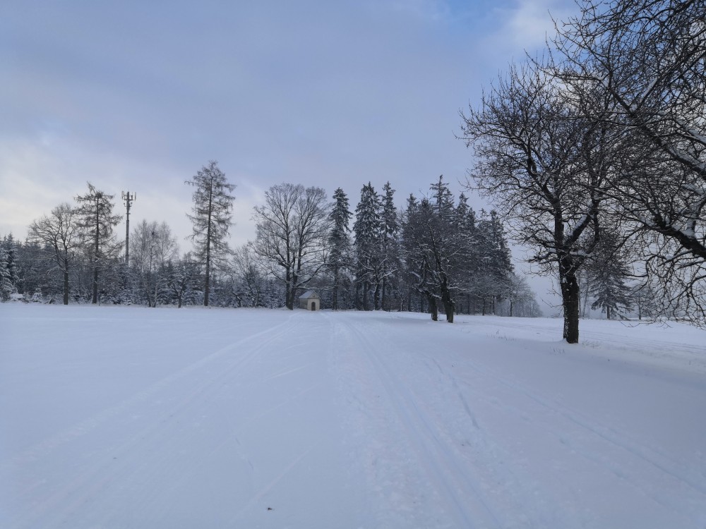 Jdu na běžky. Jedu brzy ráno. Parkuji v Hartvíkově a jedu okruh přes Vodici a Bydlín.