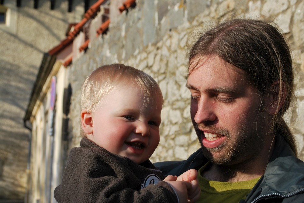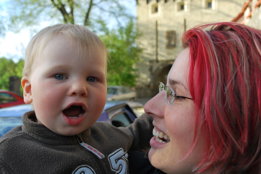 Dnes u nás byli na návštěvě Pelcmanovi. Při loučení u Kotnova nám Mates ukazuje, jak dělá lev :-).