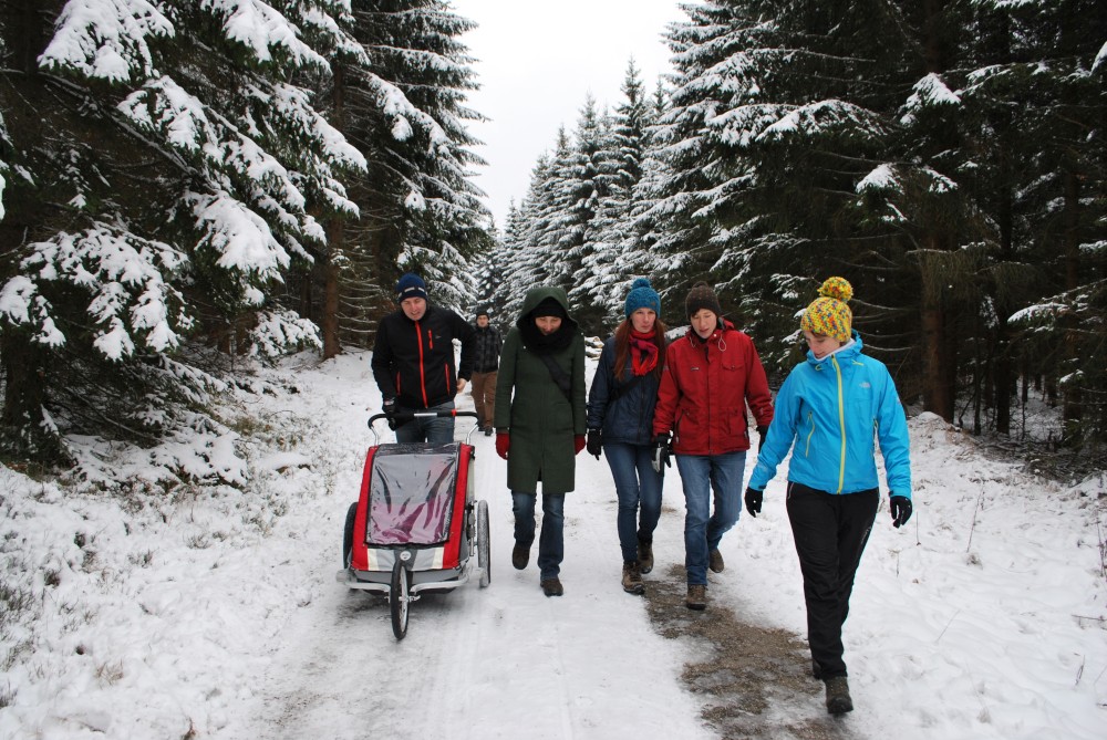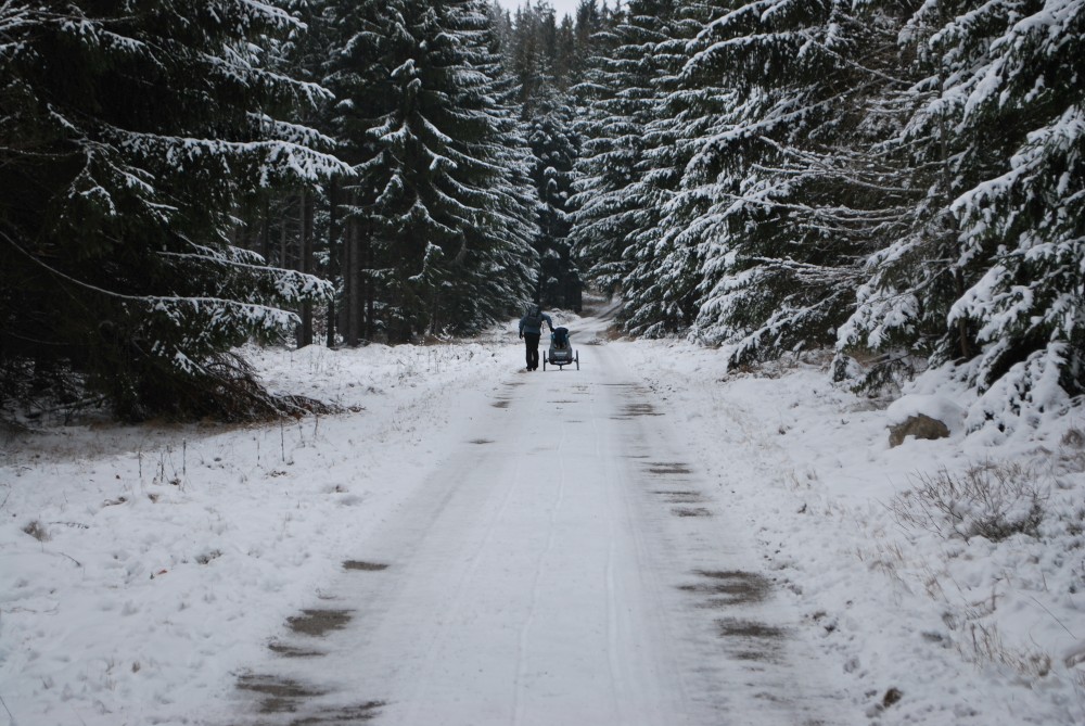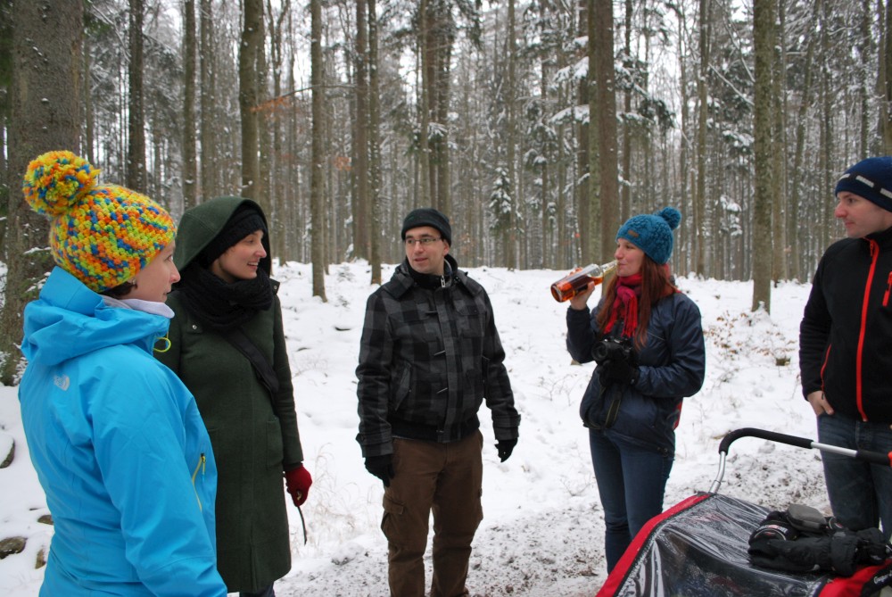 Vyrážíme přes Šindlov směr Nové Hutě. Venku mírně chumelí a je docela zima. Nedáváme tomu velké naděje, ale chceme vyzkoušet, jestli nebude otevřeno v restauraci U studeného potoka. Máme velké štěstí. Sice otevřeno nebylo, ale paní nám nabídla, že nám může čaj udělat. Nakonec z toho bylo i několik druhů polévek.