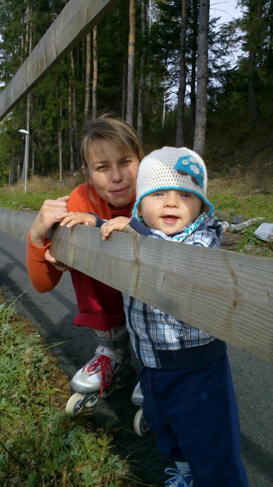 Už se připozdívá, takže se rozhodujeme se, že zde Jana počká s Víťou a já pojedu zpět do Frymburku pro auto. Po mém návratu si ještě společně dáváme společné kafíčko a blbneme s Víťou v dětském koutku, pak nasedáme do auta a jedeme zpět do Tábora. Bylo to moc pěkné odpoledne.