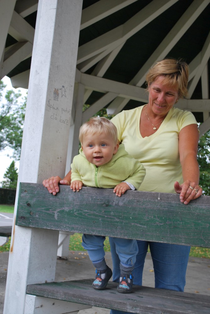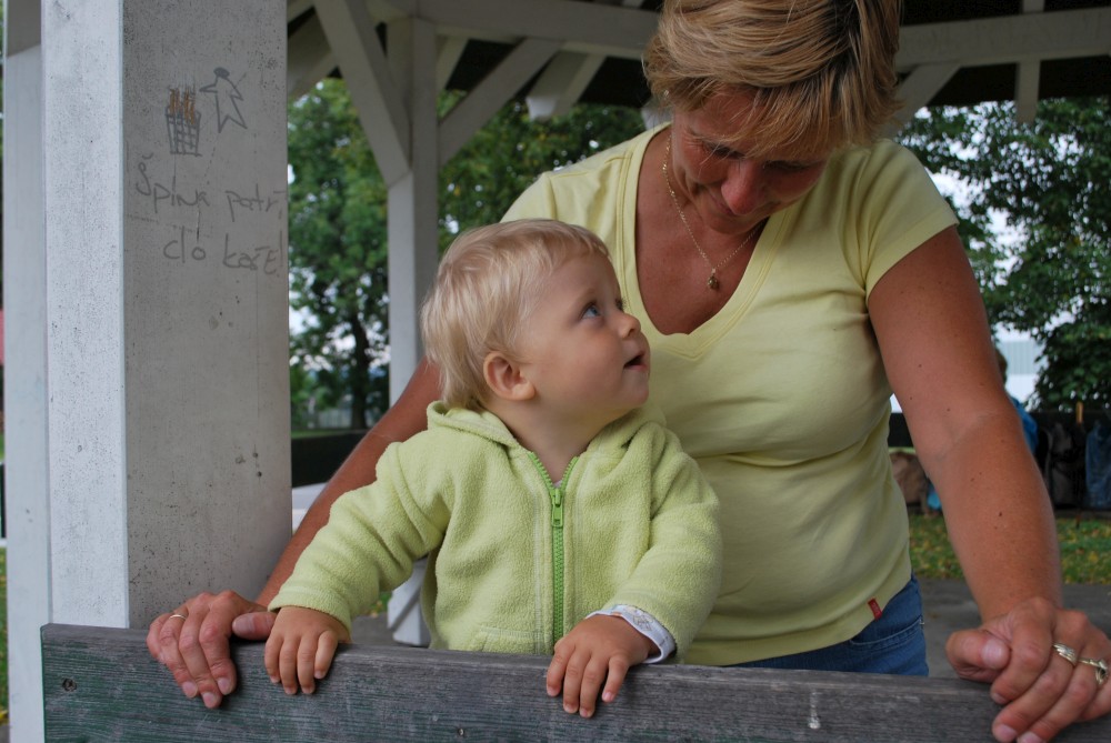 Dnes je Janička na kurzu a já hlídám Víťu. Po společném obědě s Janičkou ve městě jdeme s Víťou na krátkou procházku okolo vypouštěného Jordánu a pak jdeme na procházku s babičkou na Strkov.