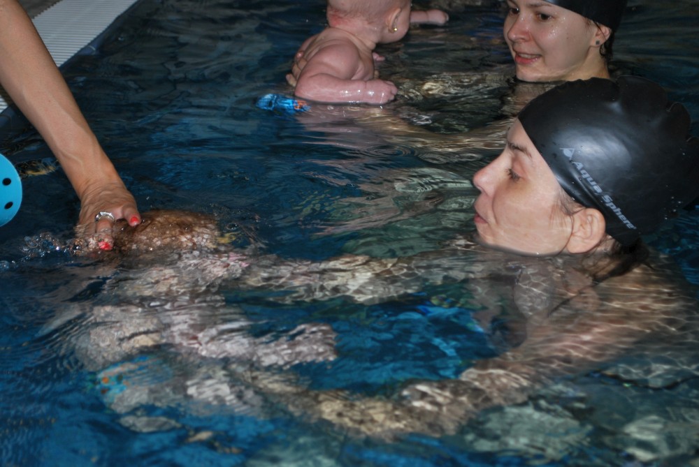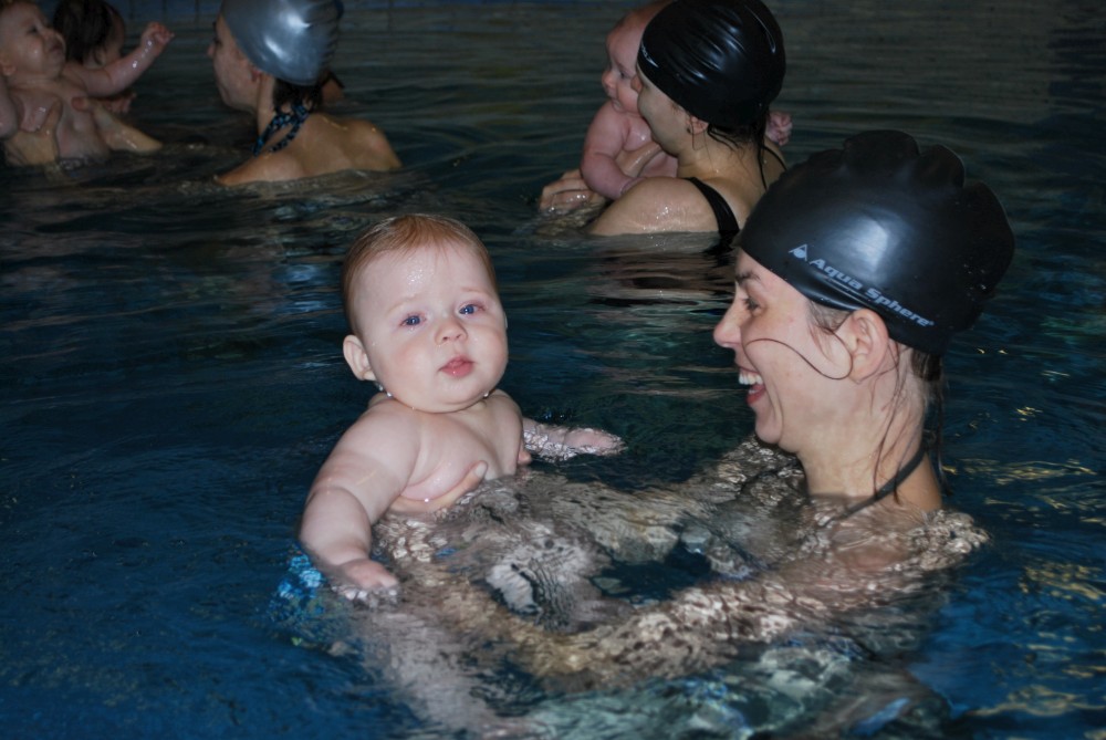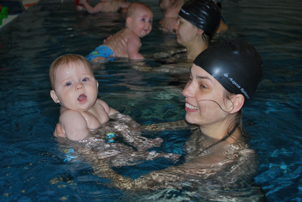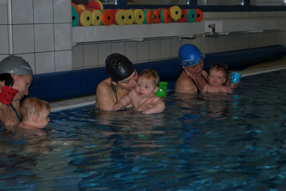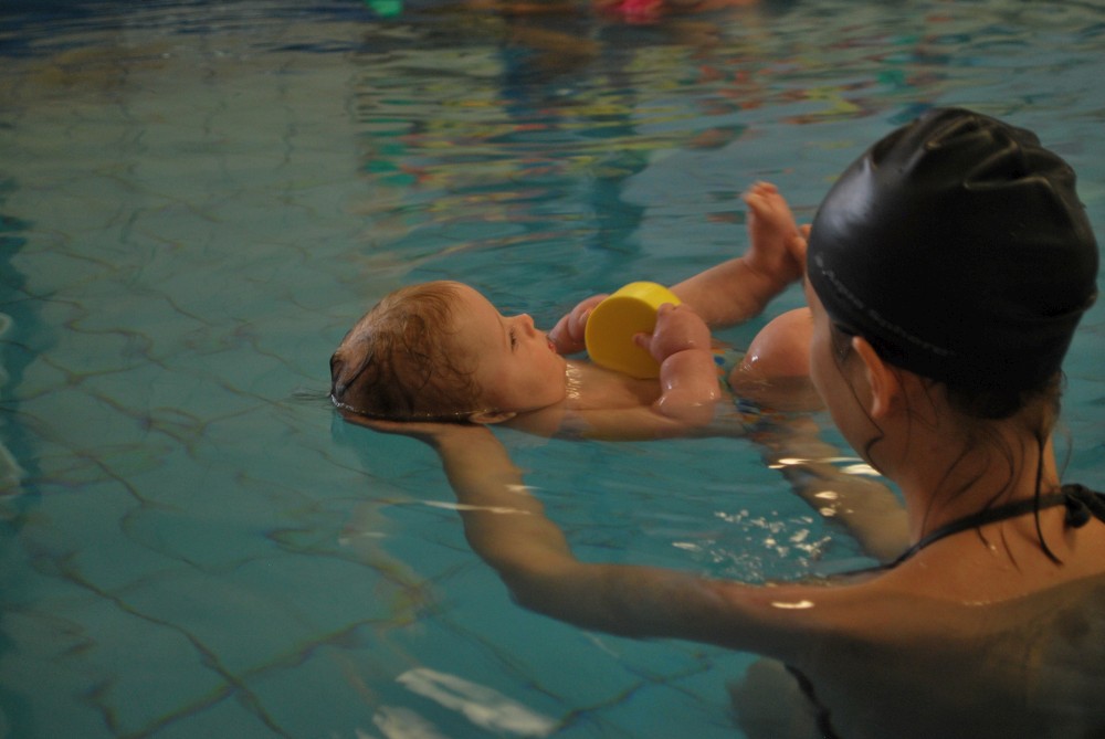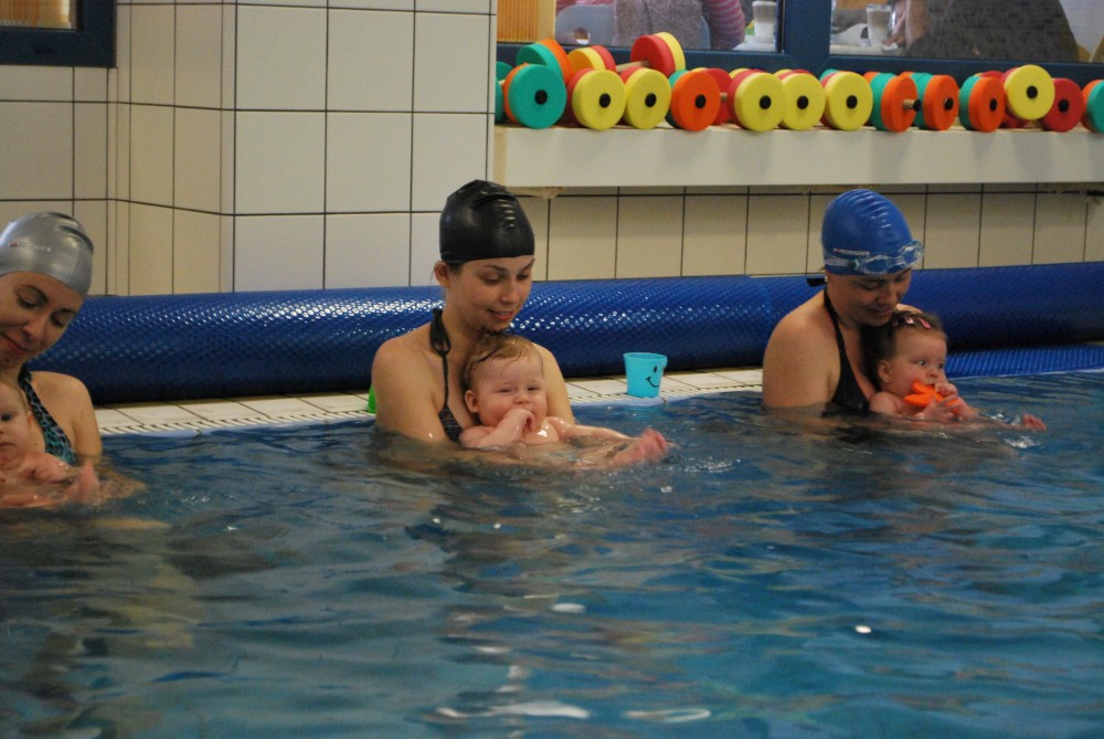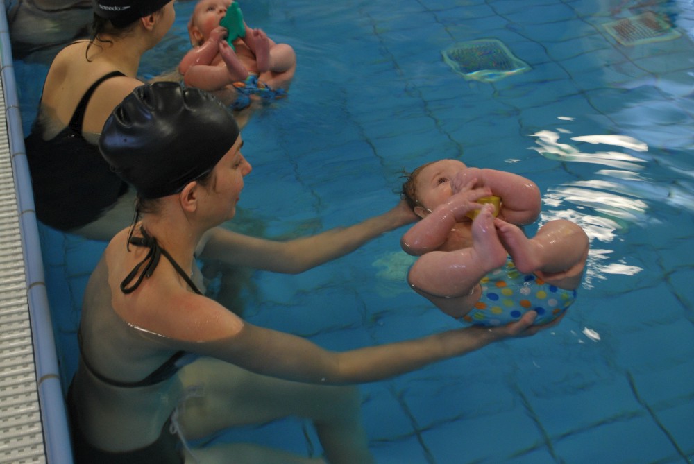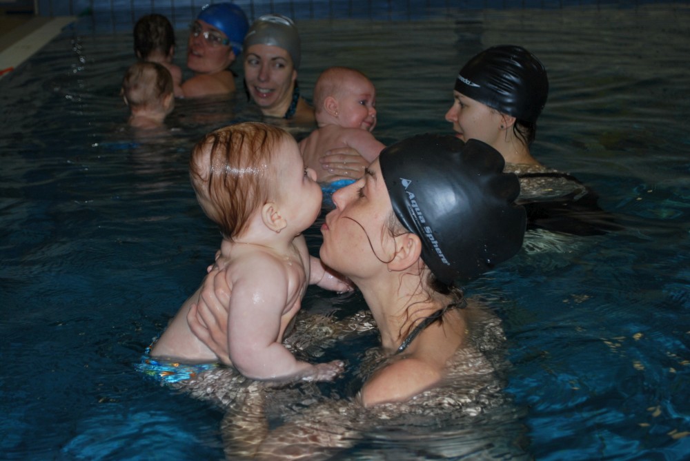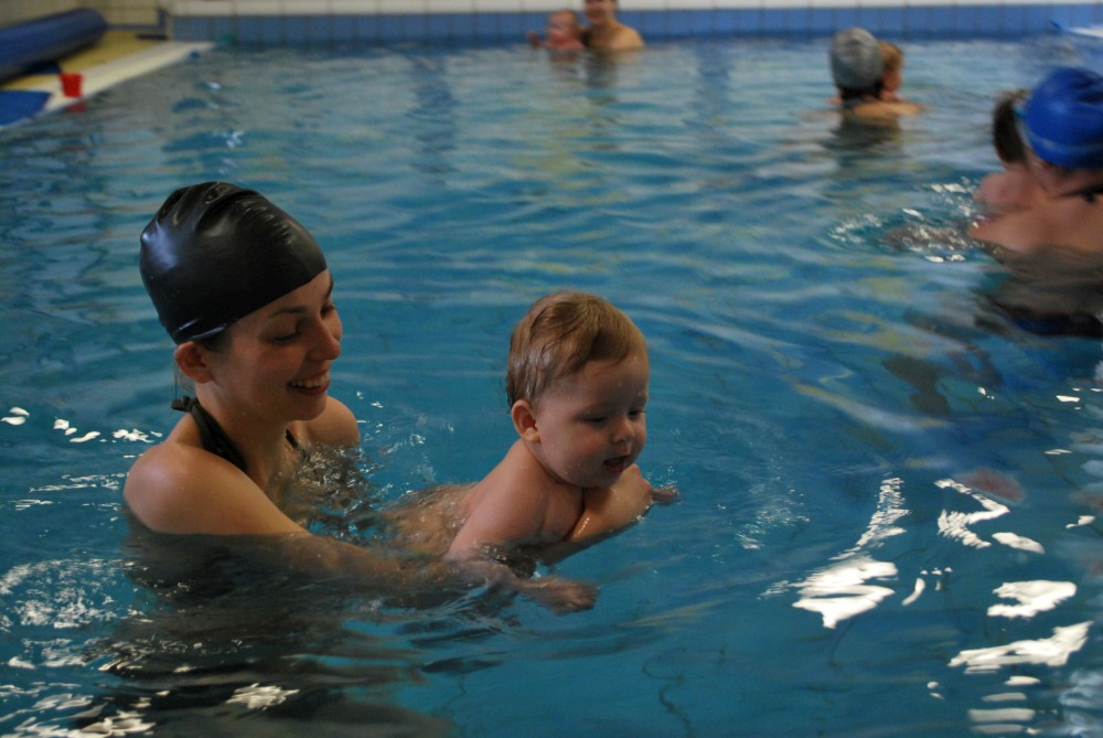 Vítečkovi je 6 měsíců a začíná s Janou chodit do bazénu. Vítek má moc rád vodu, takže si to hodně užívá. Na třetí hodinu jsem se šel podívat s nimi. Stál jsem u bazénu a udělal pár fotek. Byl jsem u Vítkova prvního celkového potopení.