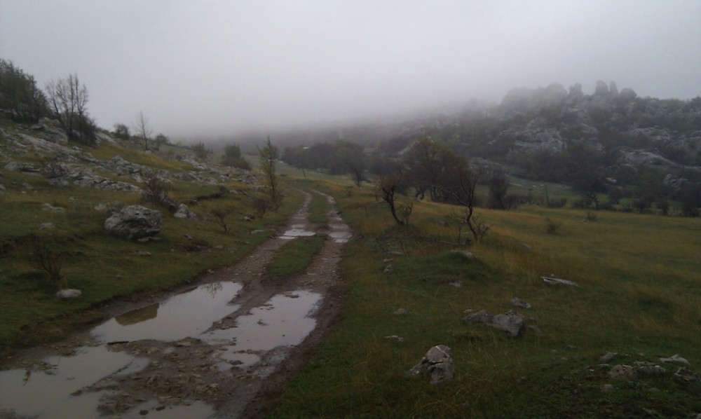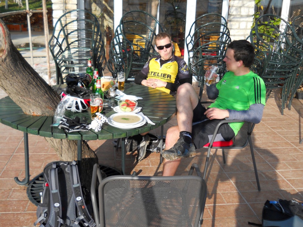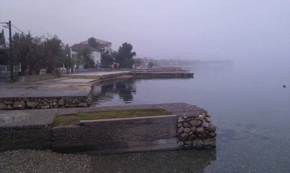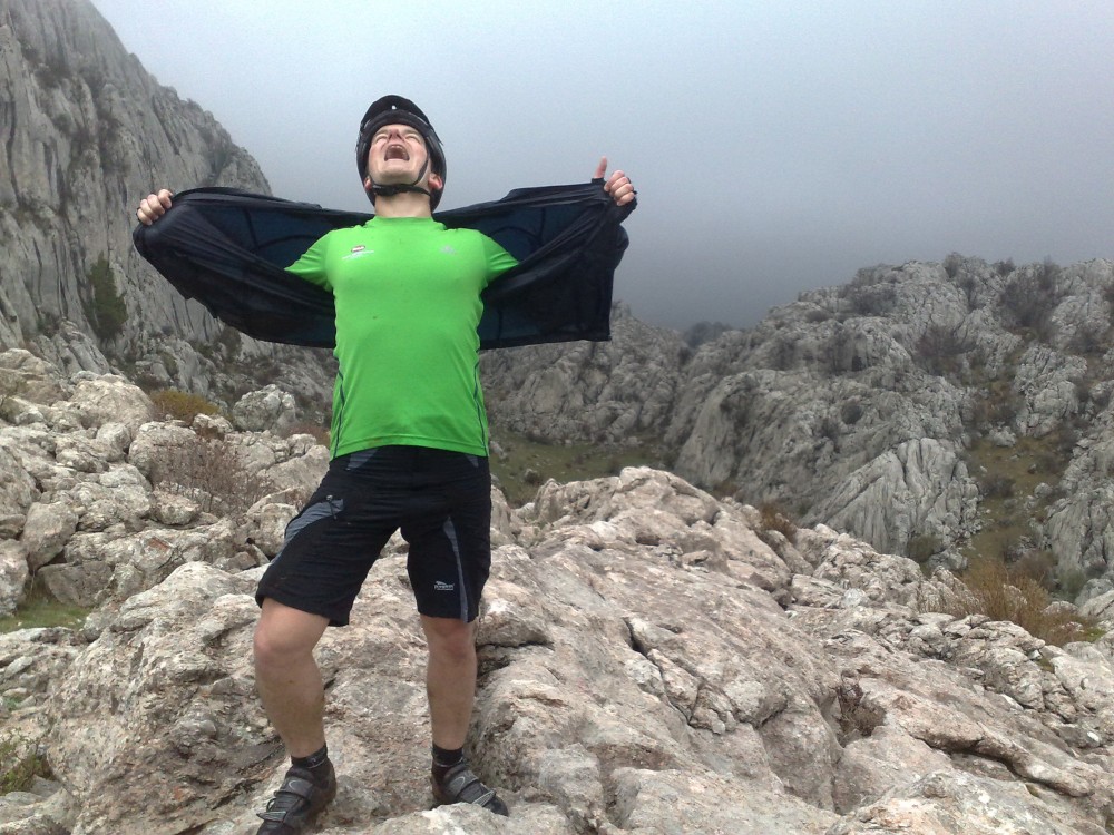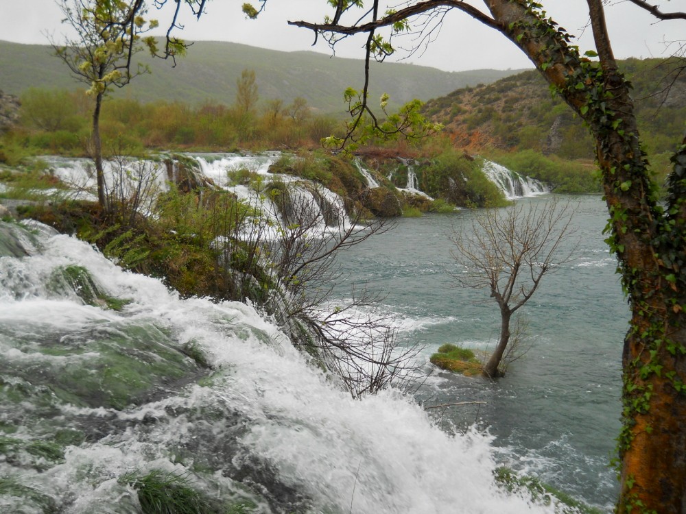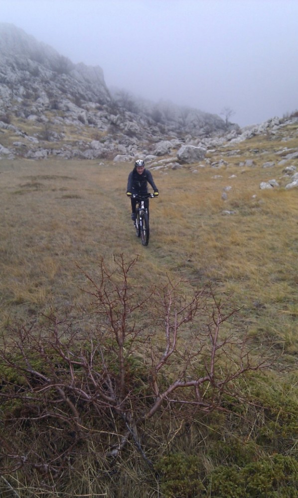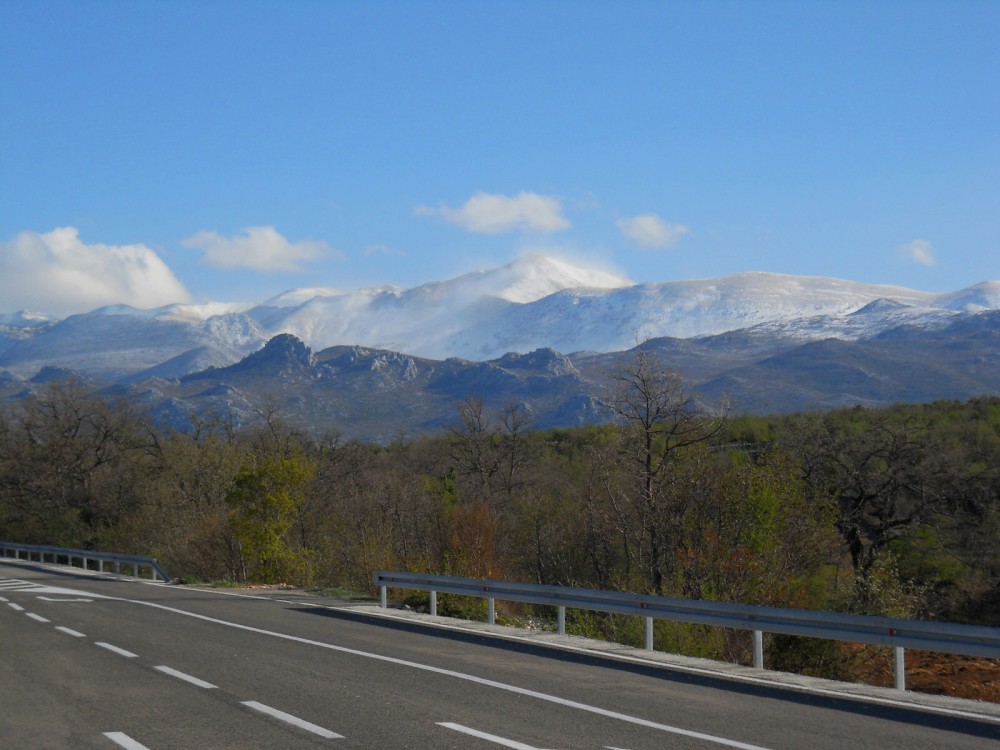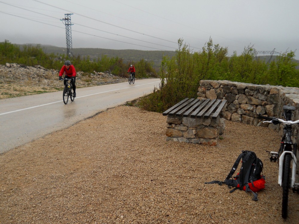 Dnes ráno fouká Bóra - severní až severovýchodní padavý vítr na Jadranu. Na kolo se opravdu nedá sednout, hned by nás to sfouklo. Nechceme s Jimmem a Inžou vyjížďku na kole jen tak zdát, takže balíme, opouštíme Starigrad a jedeme více do vnitrozemí do národního parku Krka. Auto necháváme na jedné samotě přímo u vodopádů, kde se určitě také proháněl Vinetou. Zas tak moc tady nefouká, takže sundaváme kola ze střechy a vyrážíme na vyjížďku. Nejdříve jedeme pěknou šotolinkou, pak po asfaltu. Přijíždíme k monastiru Krka. Odtud stoupáme pár set výškových metrů na hlavní silnici. Počasí se zhoršilo. Je hodně velká zima a začíná hodně foukat. V nějakým 500 m.n.m. mají poryvy větru takovou sílu, že nás občas sundají z kola. Hlavní silnice se asi 600 m.n.m. Jimmy už tam na nás čeká celý zmrzlý. Začíná sněžit. Už nás čeká jen asi 15 km sjezd. To byla hrůza. Vůbec necítíme prsty. Sedáme do auta, startujeme motor a asi 15 minut jen sprostě nadáváme, jak to rozmrzání prstů bolí. Po dlouhé době se nám podařilo kola přimontovat na střechu a vyrážíme domů. Hodně zajímavé Chorvatsko.