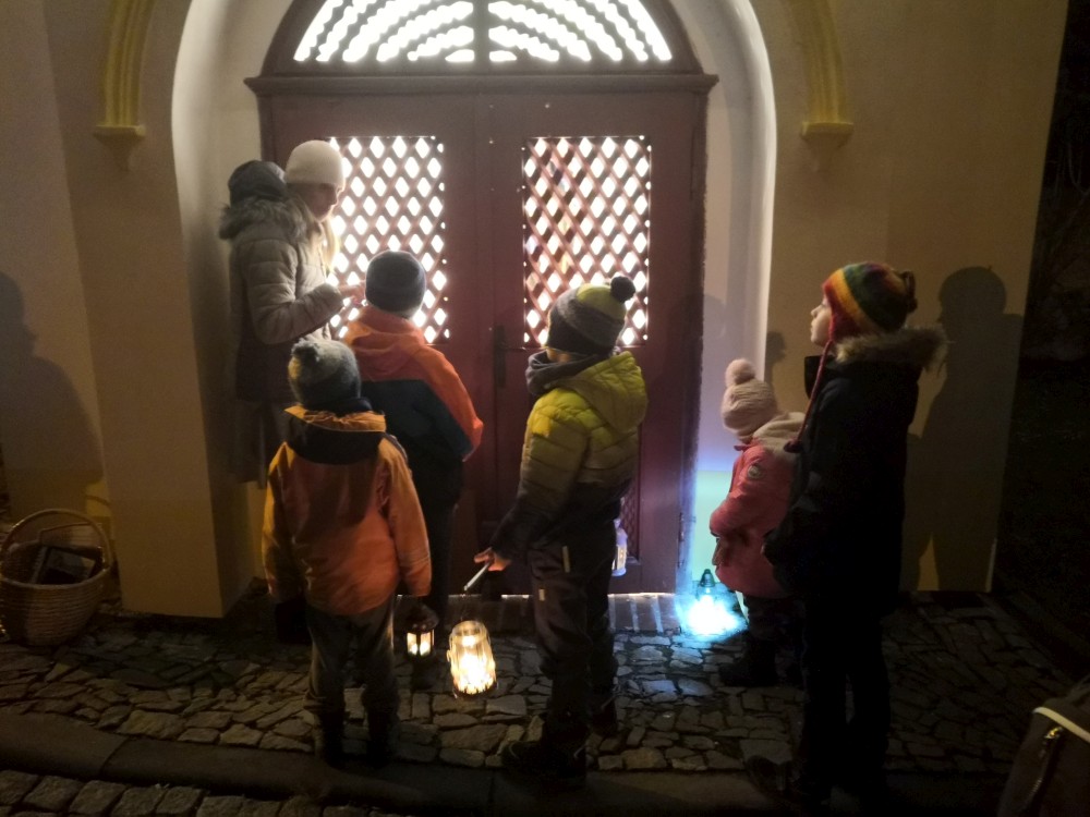 Kájina Berků zorganizovala společné zpívání dětí u kapličky. Přijeli i Šochovci.