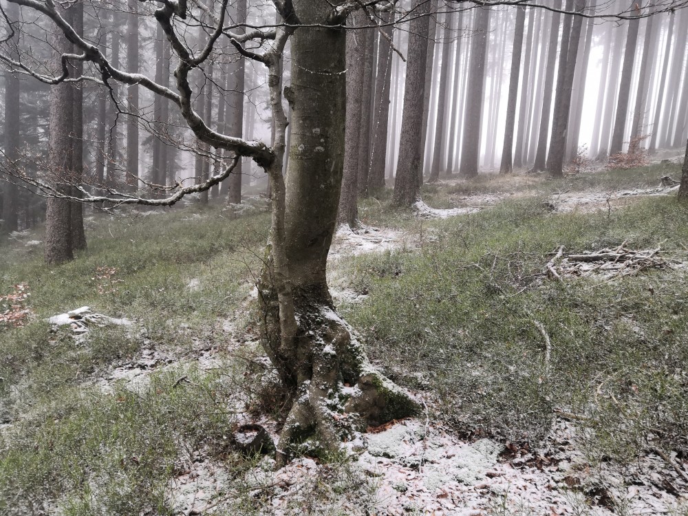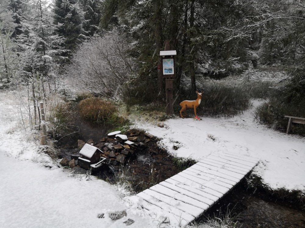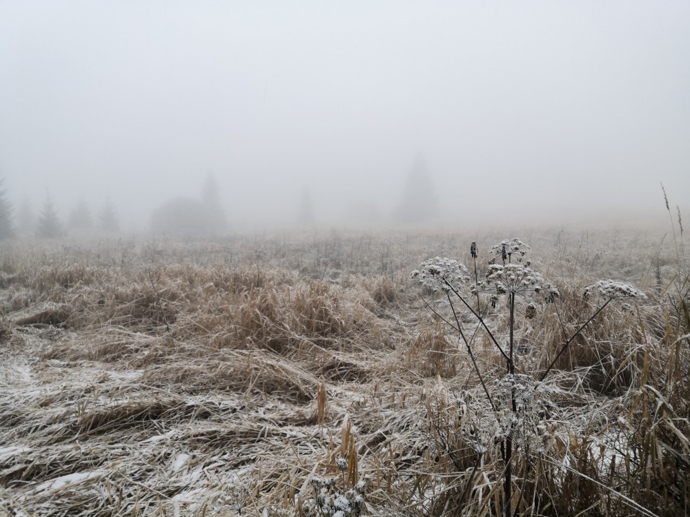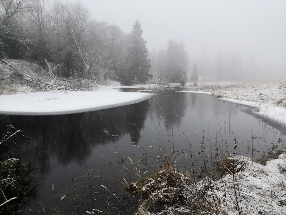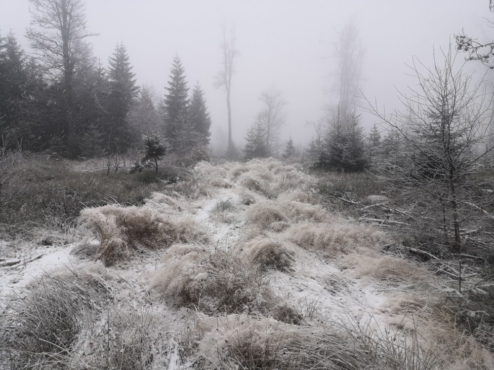 Další ranní výprava na Šumavu. Auto nechávám na parkovišti u bývalé osady Malý Bor a vyrážím na Vysoký hřbet. Po dobytí vrcholu pokračuji k zelené turistické značce a po ní na Starou Huť a pak dále na Zhůří. Jdu kolem Křemelné až k hlavní silnici. Tak je velká bobří hráz. Odtud stoupám na Javornou a pak dolů na Keply. Odtud jdu po zelené na rozcestí Pod Hadím vrchem. Kousek za ní odbočuji doleva po špatně znatelné cestě a napojuji na silnici. Vracím se k autu. Ještě přejíždím do obce Javorník. Nechávám auto u sochy Klostermanna a vybíhám na vrchol ke Klostermannově rozhledně.