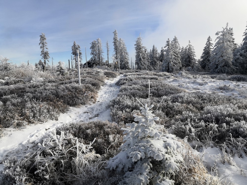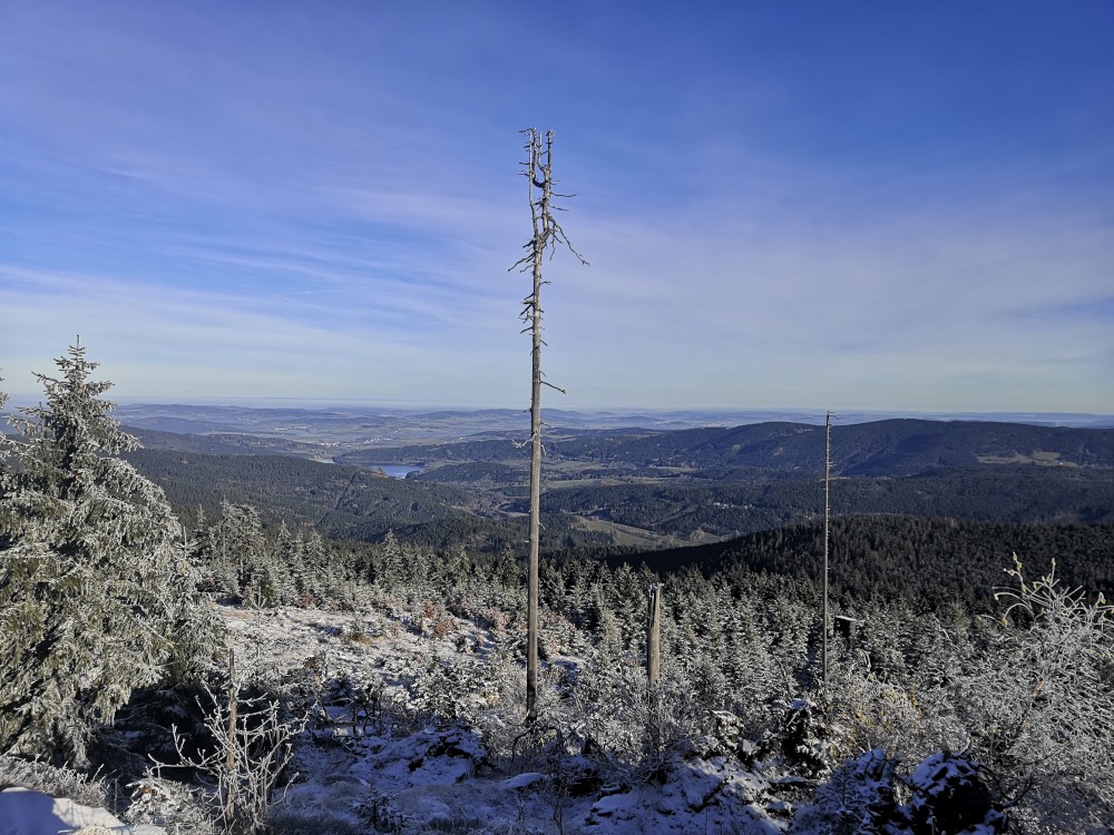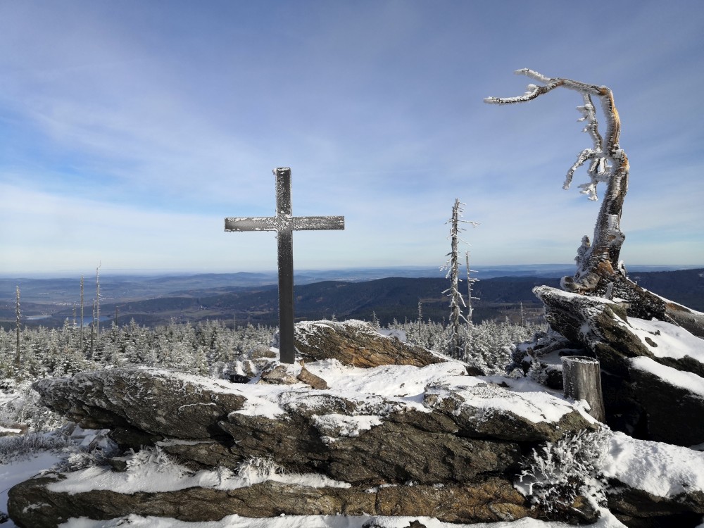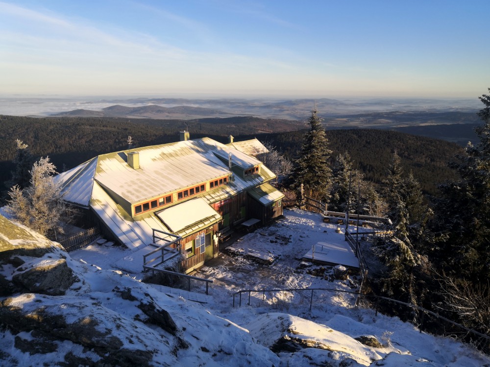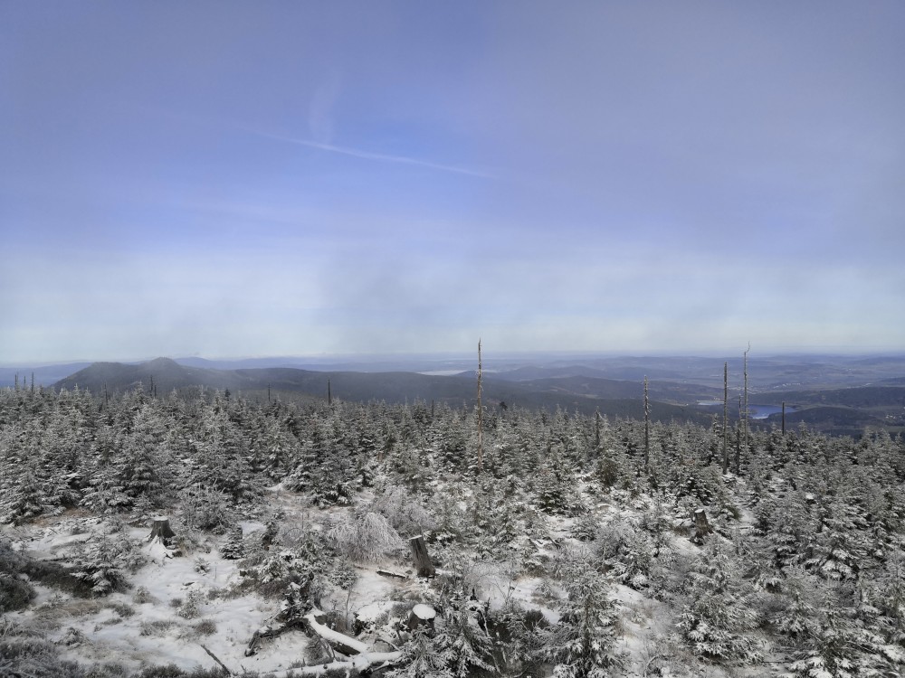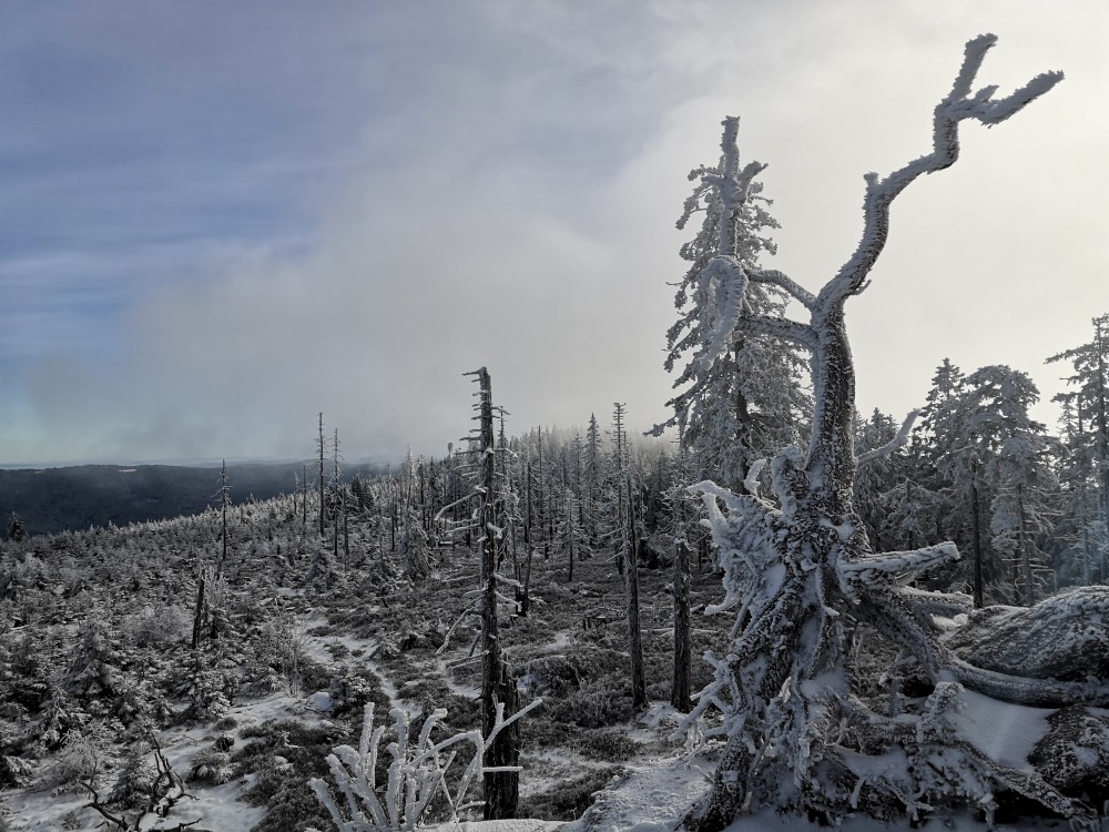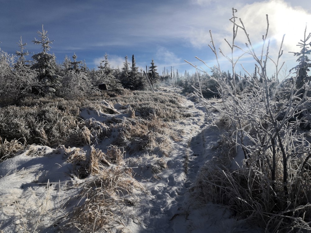 Jedu zase na Šumavu na dopolední výlet. Dnes je to daleko, až za Železnou rudou, takže jedu už kolem půl páté ráno. Kolem půl sedmé nechávám auto v obci Hamry a po tmě stoupám přes Stateček na vrchol Ostrý. Nahoře jsem před osmou. Východ slunce jsem nestihl, ale jsou krásné výhledy. Po chvíli kochání se vydávám hřebenovkou přes Malý a Velký Kokrháč až na Svaroh, nejvyšší bod mé dnešní cesty. Pak sbíhám dolů, jdu se ještě podívat na vodopád Bílá Strž. Odtud už spěchám k autu.