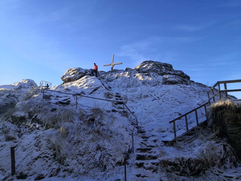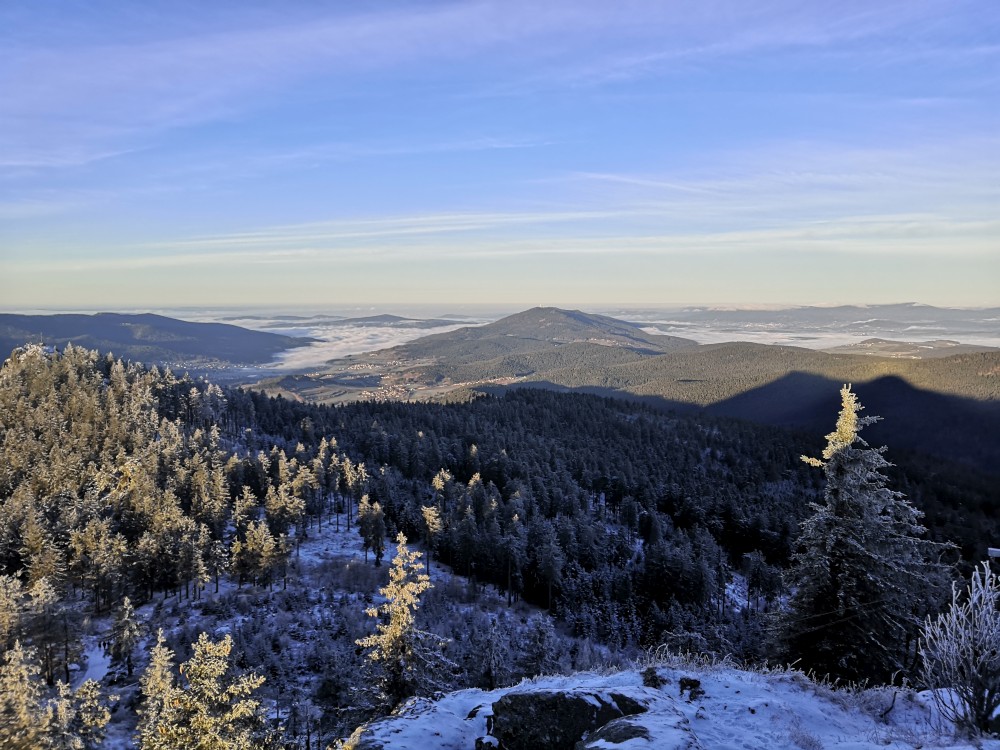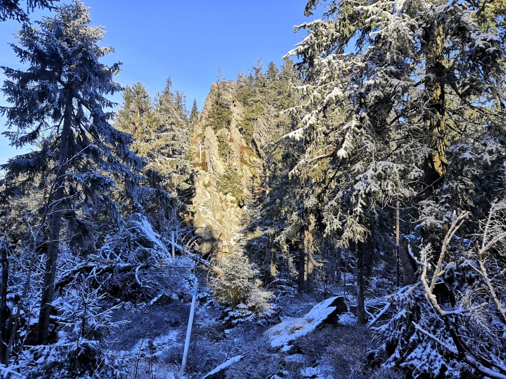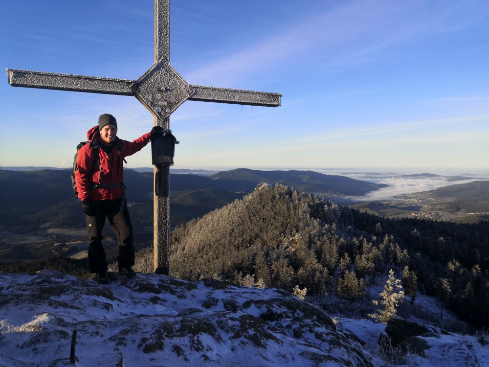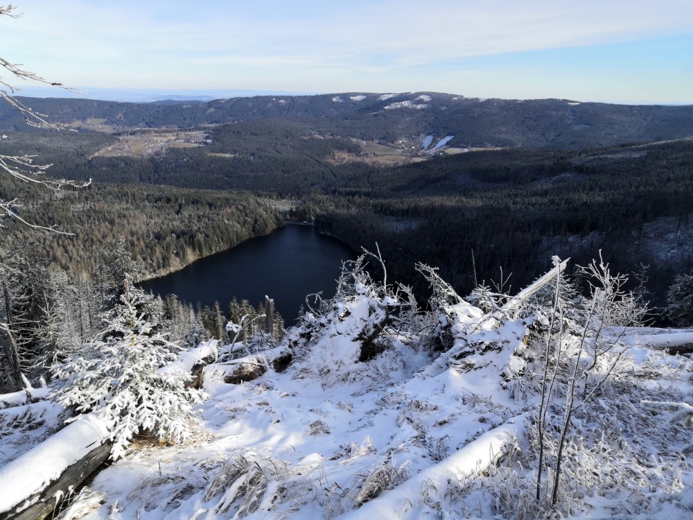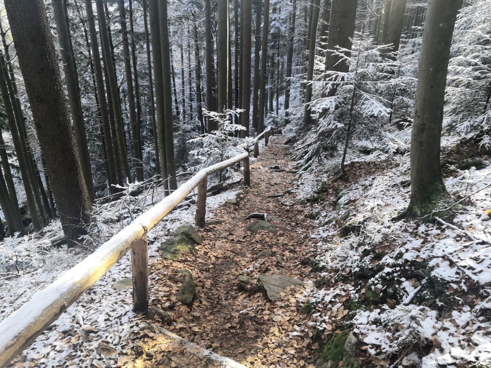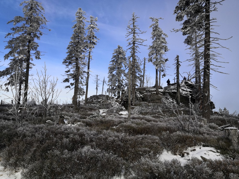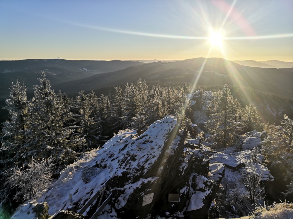 Jedu zase na Šumavu na dopolední výlet. Dnes je to daleko, až za Železnou rudou, takže jedu už kolem půl páté ráno. Kolem půl sedmé nechávám auto v obci Hamry a po tmě stoupám přes Stateček na vrchol Ostrý. Nahoře jsem před osmou. Východ slunce jsem nestihl, ale jsou krásné výhledy. Po chvíli kochání se vydávám hřebenovkou přes Malý a Velký Kokrháč až na Svaroh, nejvyšší bod mé dnešní cesty. Pak sbíhám dolů, jdu se ještě podívat na vodopád Bílá Strž. Odtud už spěchám k autu.