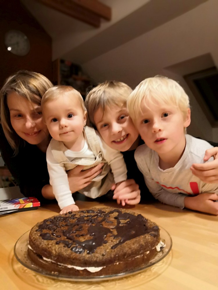 Bětuška slaví svátek. Máme malou oslavičku. Bětuška dostala dort.