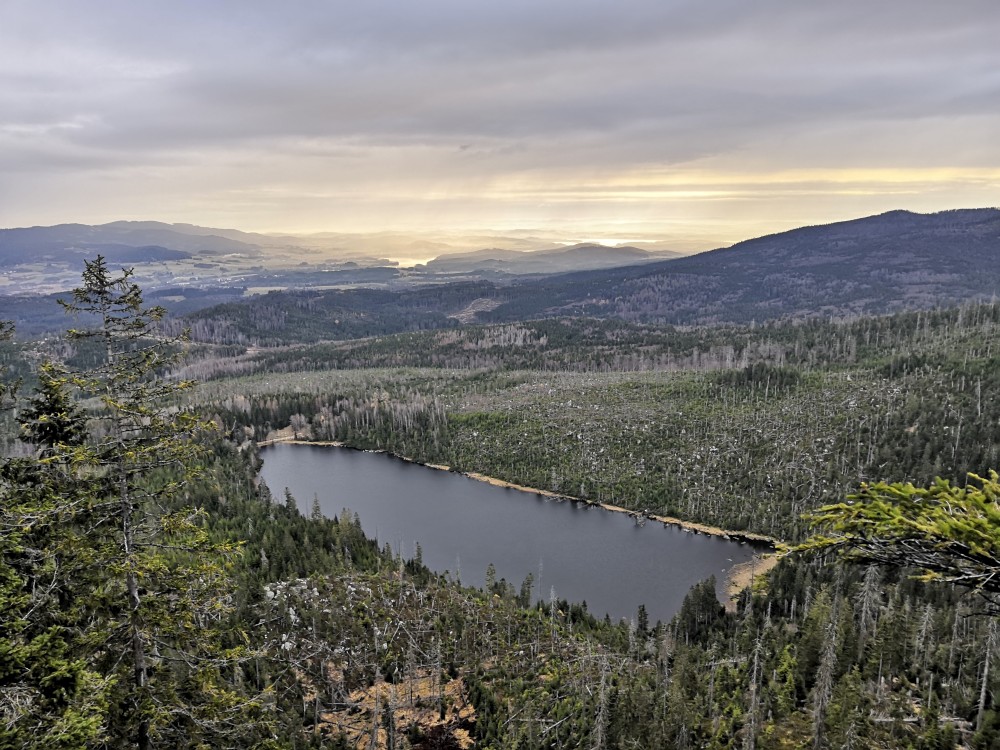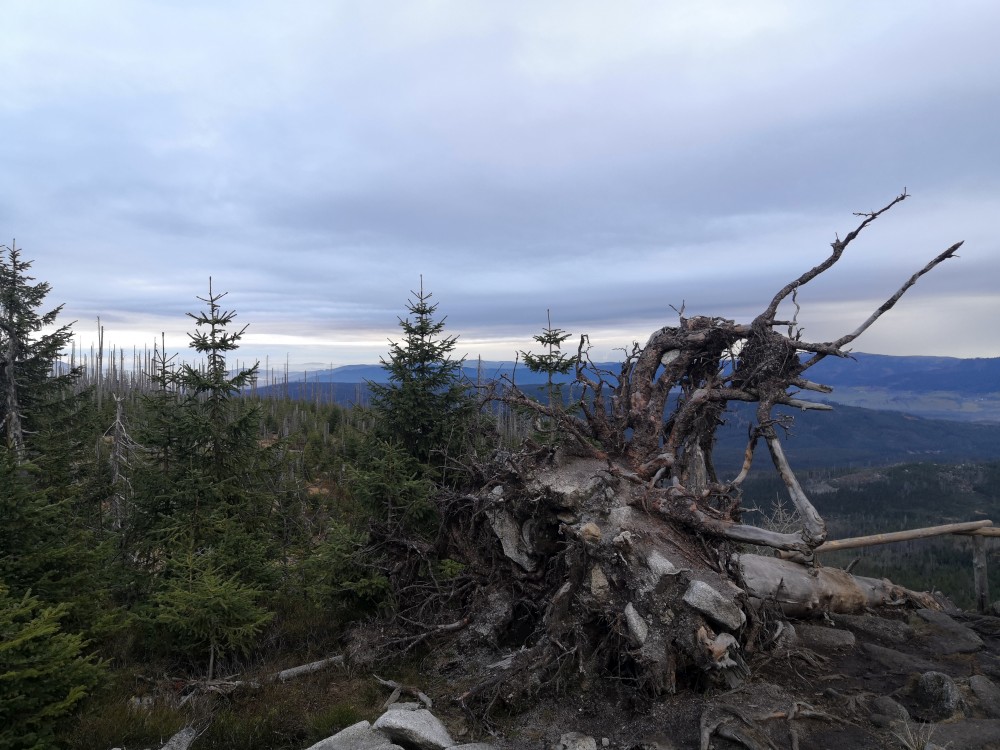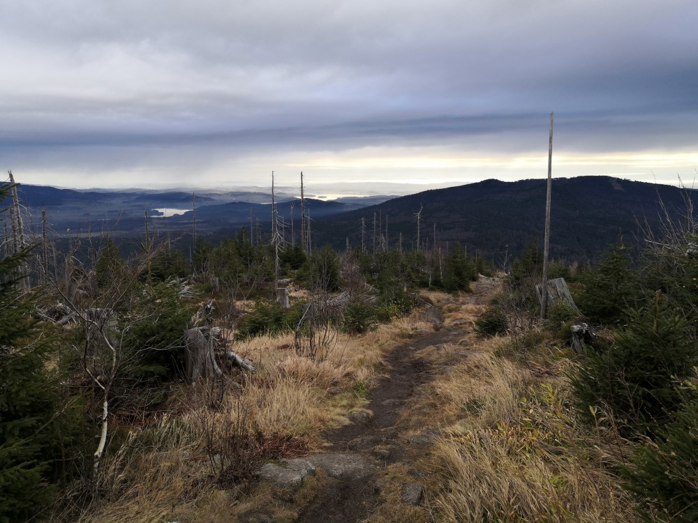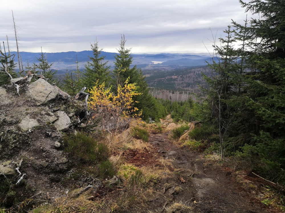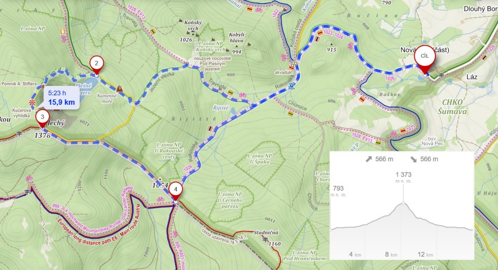 Jedu na výlet na Šumavu. Jedu hodně brzo. Kolem 7 hodiny nechávám auto v obci Láz. Jdu kolem akvaduktu, kolem občerstvení na Říjišti, přes nouzové nocoviště pod Plešným jezerem a přes kamenné moře k Plešnému jezeru. Odtud zážitkovou cestou kolem pomníku A. Stiftera na Plechý. Jsem tam před 9 hodinou. Zpět jdu po hranicích až na Rakouskou cestu a kolem Říjiště zpět k autu, kde jsem kolem 10 hodiny.