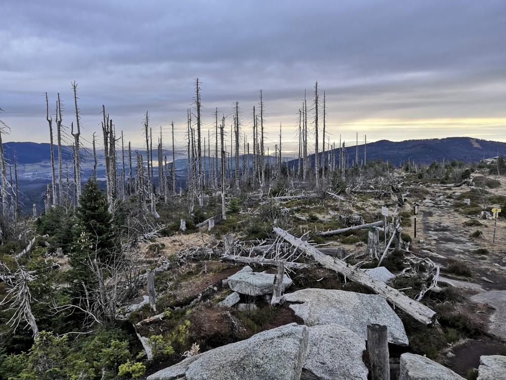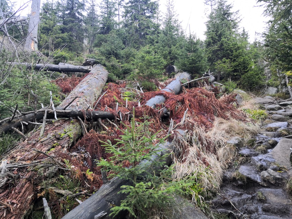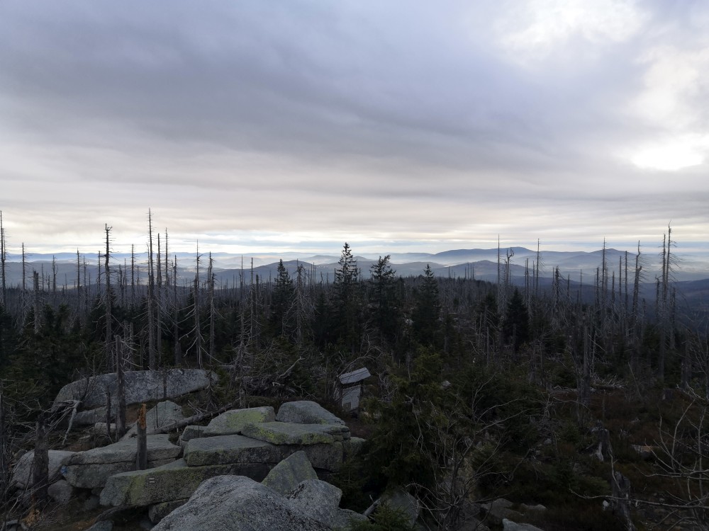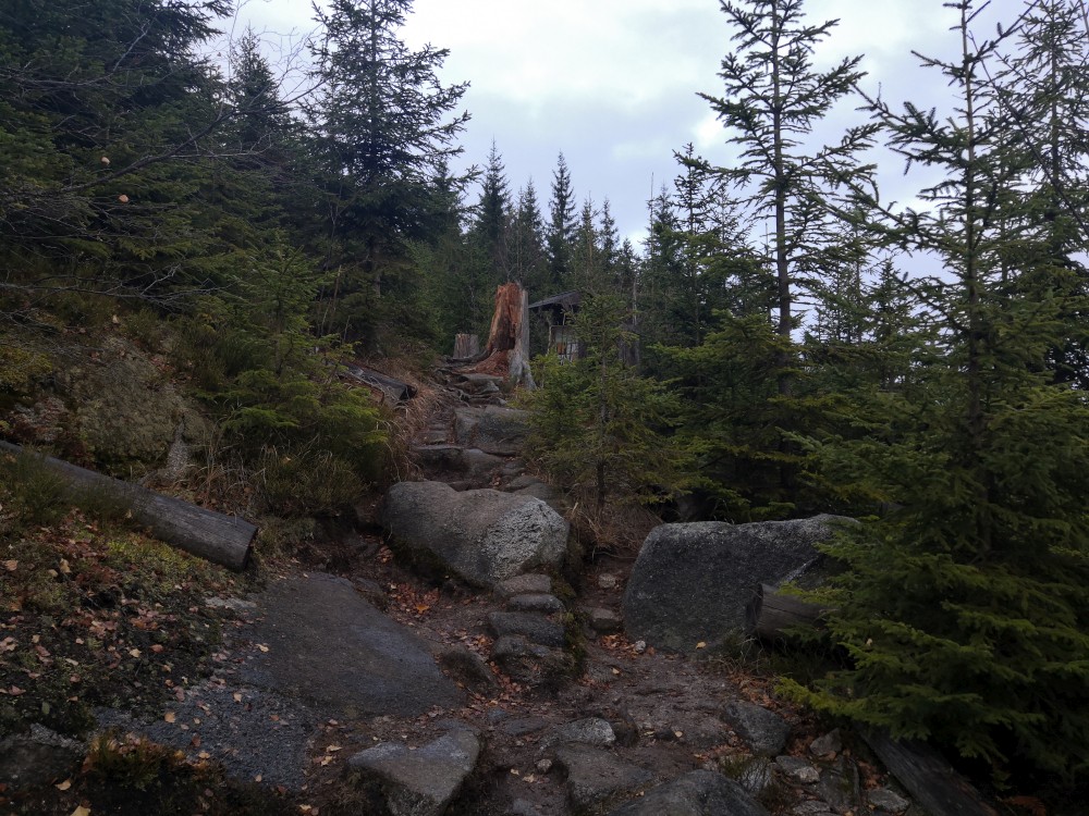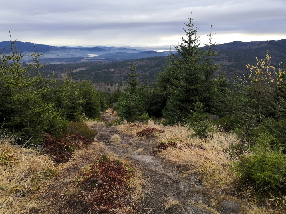 Jedu na výlet na Šumavu. Jedu hodně brzo. Kolem 7 hodiny nechávám auto v obci Láz. Jdu kolem akvaduktu, kolem občerstvení na Říjišti, přes nouzové nocoviště pod Plešným jezerem a přes kamenné moře k Plešnému jezeru. Odtud zážitkovou cestou kolem pomníku A. Stiftera na Plechý. Jsem tam před 9 hodinou. Zpět jdu po hranicích až na Rakouskou cestu a kolem Říjiště zpět k autu, kde jsem kolem 10 hodiny.