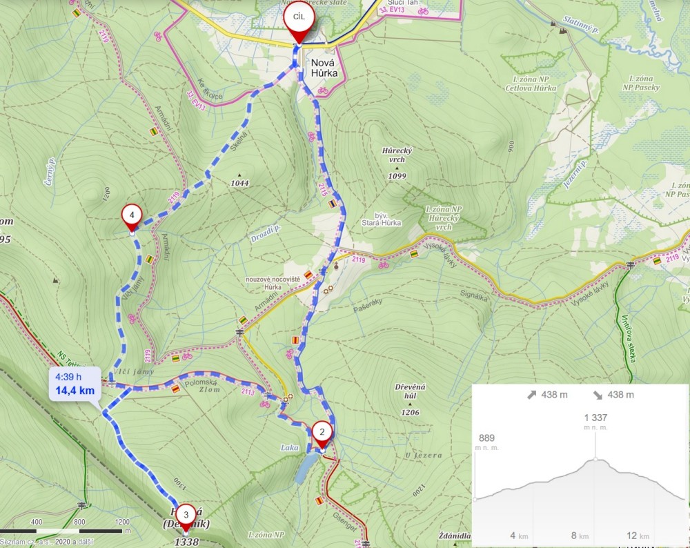 U rozcestí Pod Polomem se dávám dolů stezkou Vlčí jámy. Cesta je hodně mokrá a zarostlá. Asi za hodinku se dostávám k autu a jedu do Tábora. Před polednem jsem doma.