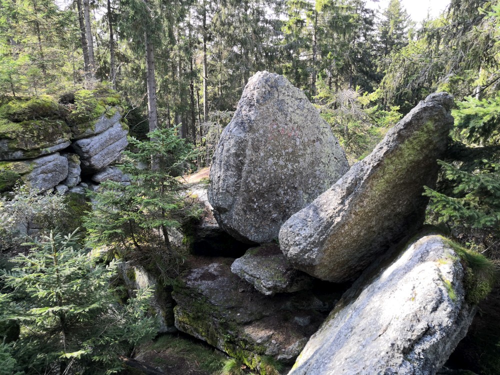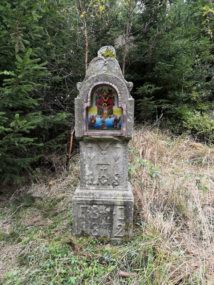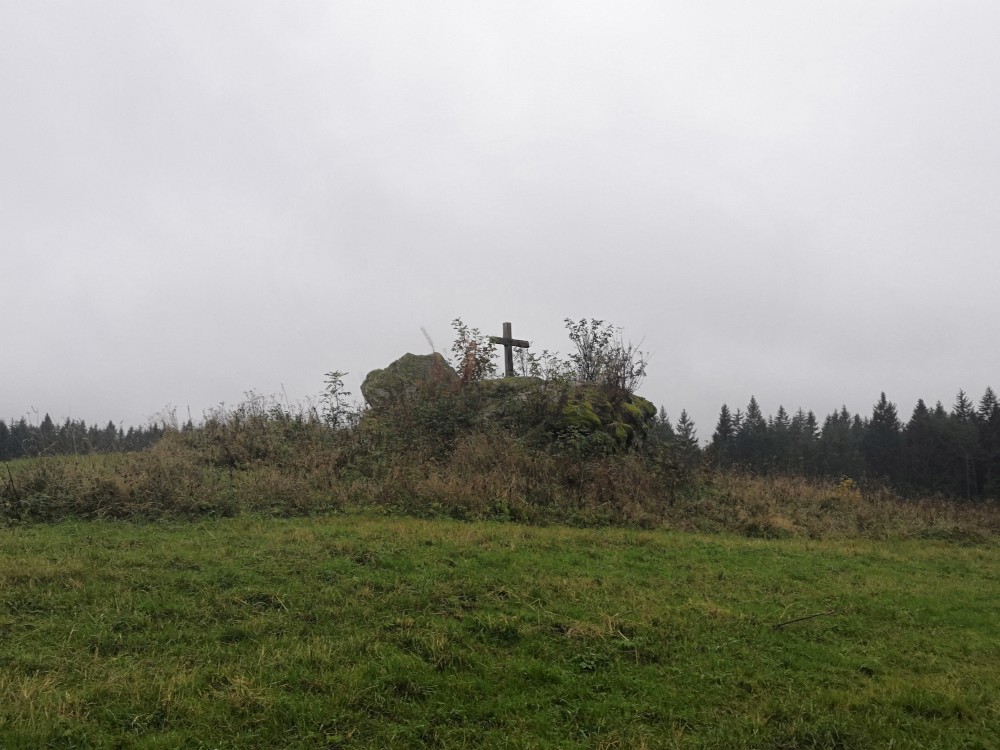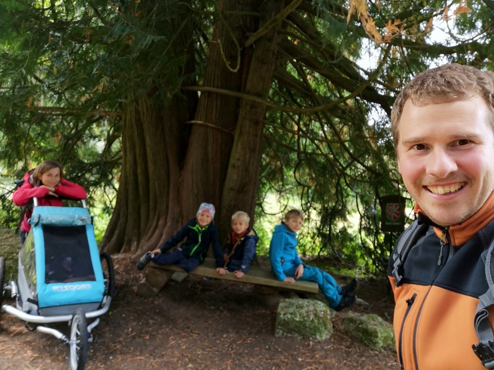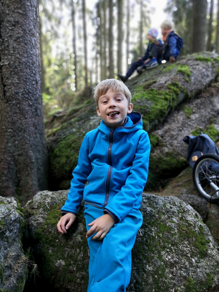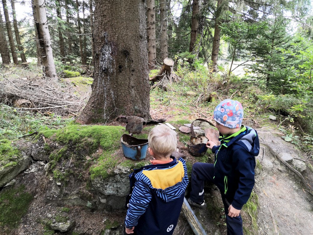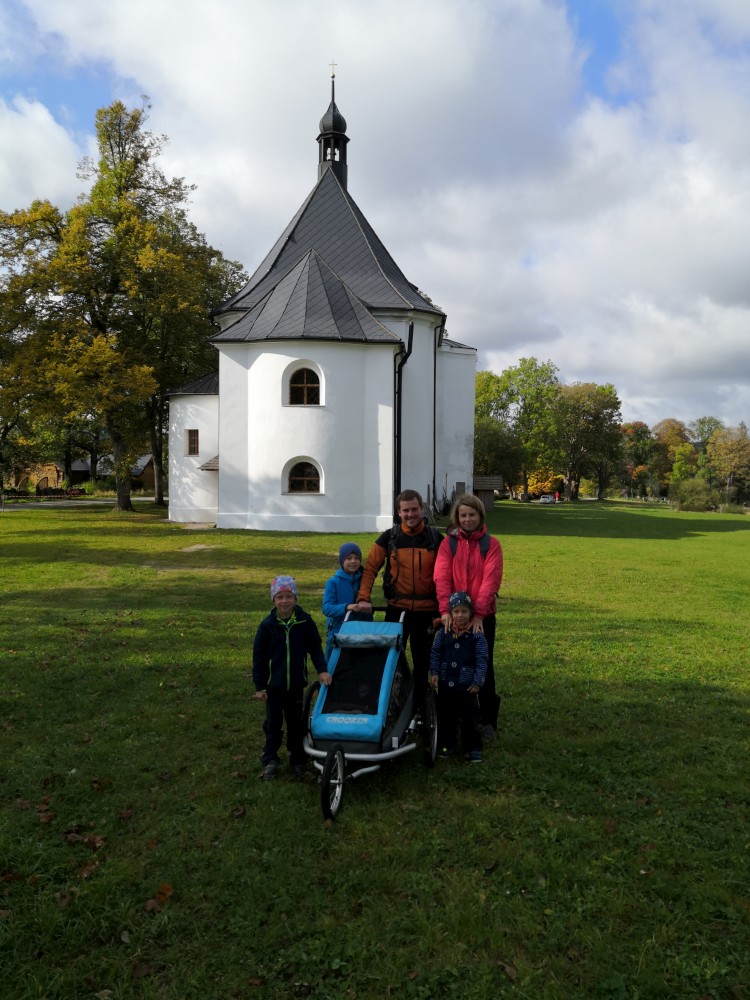 Dále zastavujeme u trojmezného kamene. Kluci na něj musí vylézt. Je tu také studánka. Další pauzu děláme u turistického přístřešku kousek u jezírka Weissensee. Začíná pršet. Jdeme dále po hranici až k českému prameni Lužnice. Dlouho se nezdržíme, klukům už je zima. Do Pohoří na Šumavě k autu už to máme kousek. Nasedáme a jedeme domů.