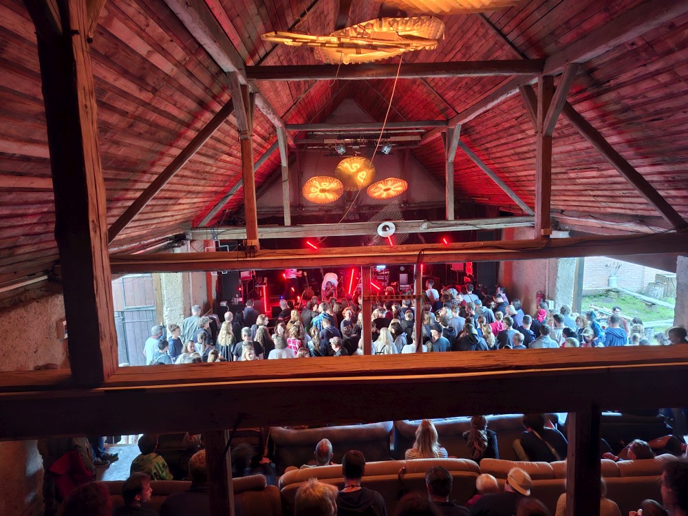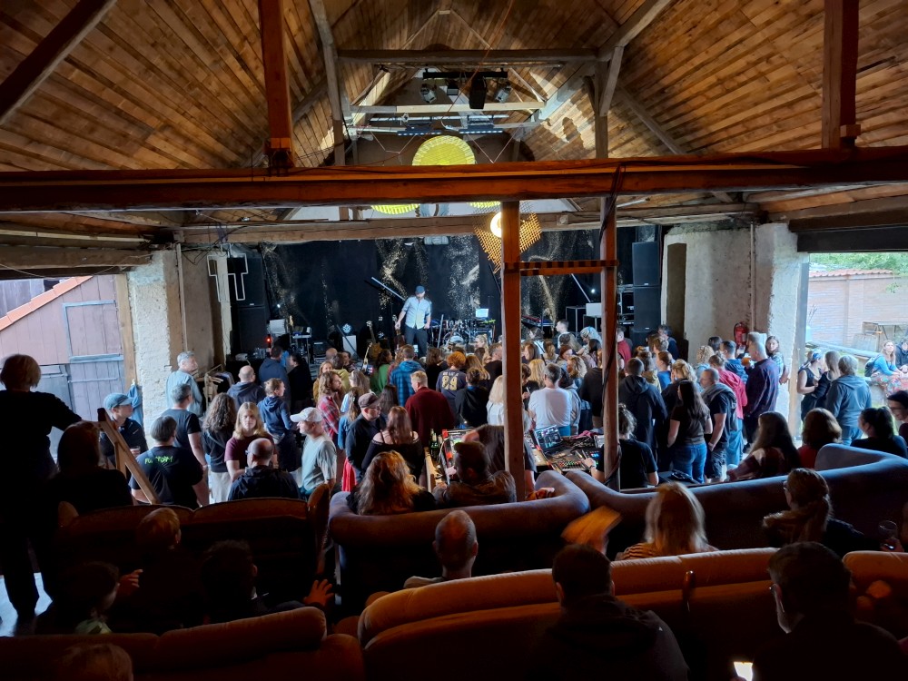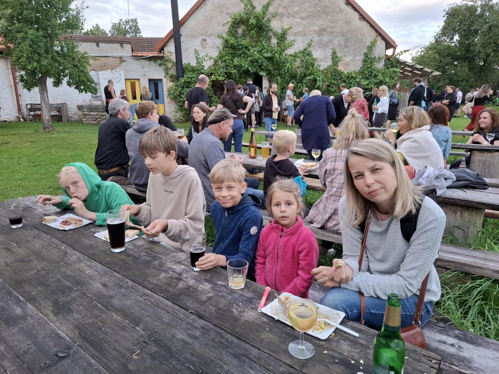 Jedeme po nějakém čase na koncert do vesnického klubu Chotěmice. Dnes hraje kapela Zrní. Jedeme celá rodina. Vstupné je 400 Kč, děti naštěstí neplatí. Parkujeme na louce kolem půl osmé. Před koncertem ještě stíháme večeři a nějaké občerstvení. Pak už začíná koncert. Je rozdělen na 2 částí. V první části sedíme nahoře ve stodole a na kapelu se snažíme prohlížet skrze trámy. Na druhou část jsme již u vstupu do stodoly. Těsně před koncem odjíždíme, děti už jsou unavené.