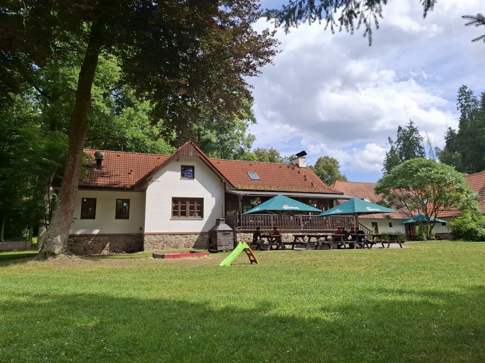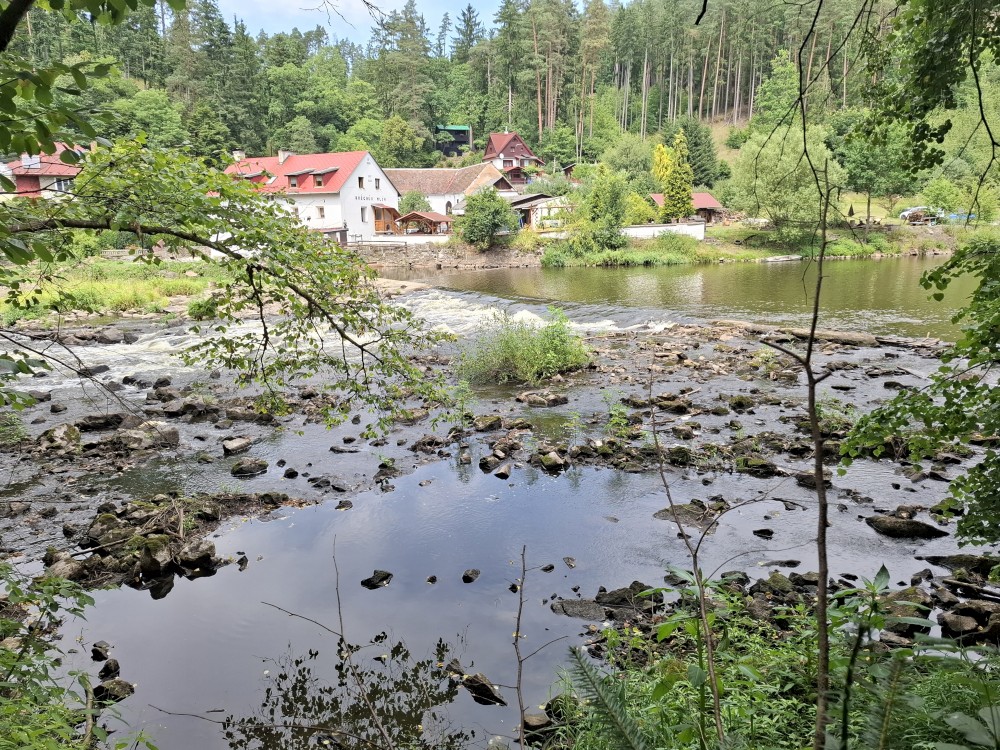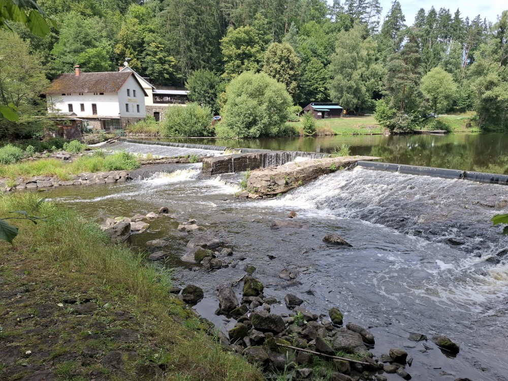Jdu na oběd na Harrachovku a pak kolem řeky na Příběnice, kde si dávám pivo a pak ještě kolem obrázku přes Dražičky a lom u Hnojné Lhoty domů.