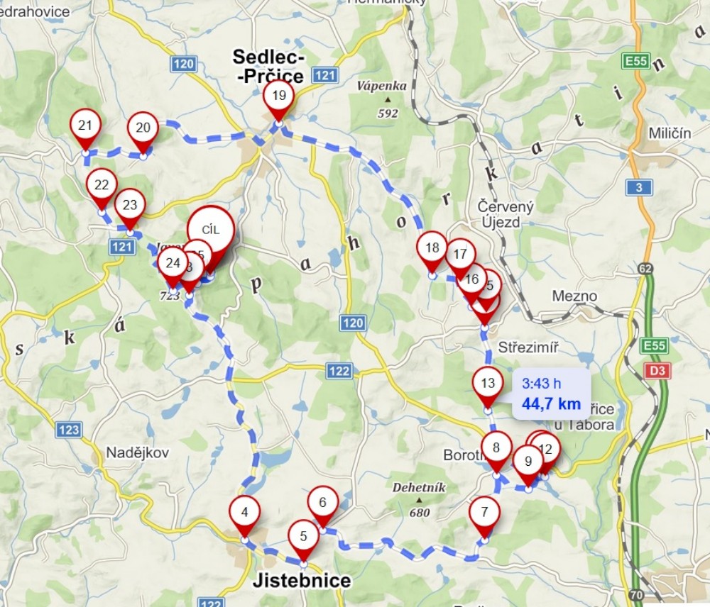 Dnes má DEKPROJEKT poradu na na Monínci. I když odpolední porada byla kvůli covid riziku zrušena. Přes den jsou sportovní aktivity a večer posezení na terase. Já se připojuji k cyklistické skupině. Jedeme z Monínce přes Ounuz do Jistebnice, pak a pak přes Kostelec na Borotín. Tam si dáváme občerstvení u hradu.