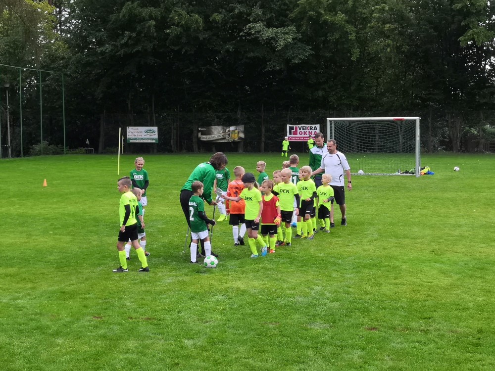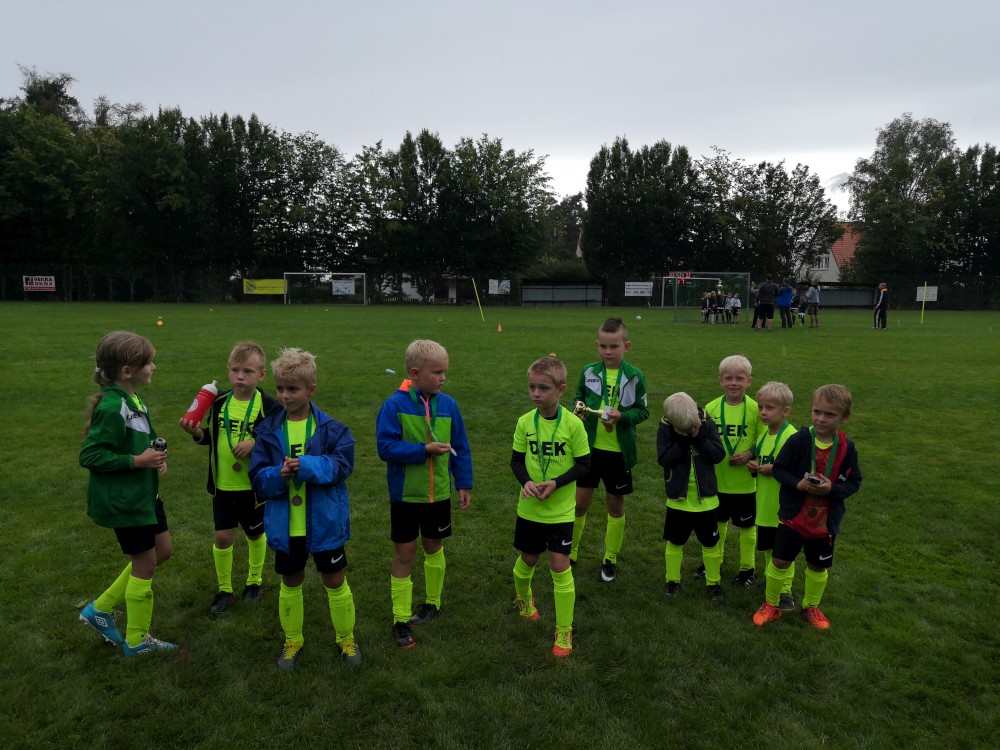 Jiřík s Martínkem dnes mají fotbalový turnaj na Větrovech. Účastní se ho 6 týmů. Kluci na úvod těsně prohrály s Českým Krumlovem, pak další 2 zápasy prohráli a 2 vyhráli, takže skončili čtvrtí. Hráli moc pěkně. Fíla byl vyhlášen nejlepším brankářem turnaje.