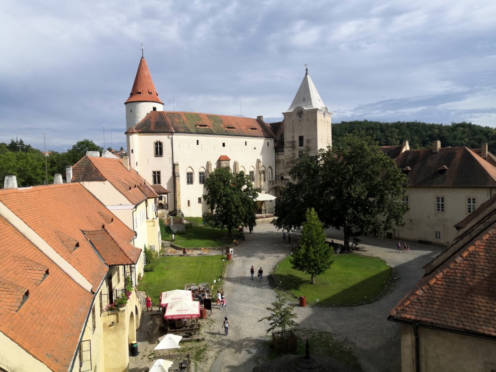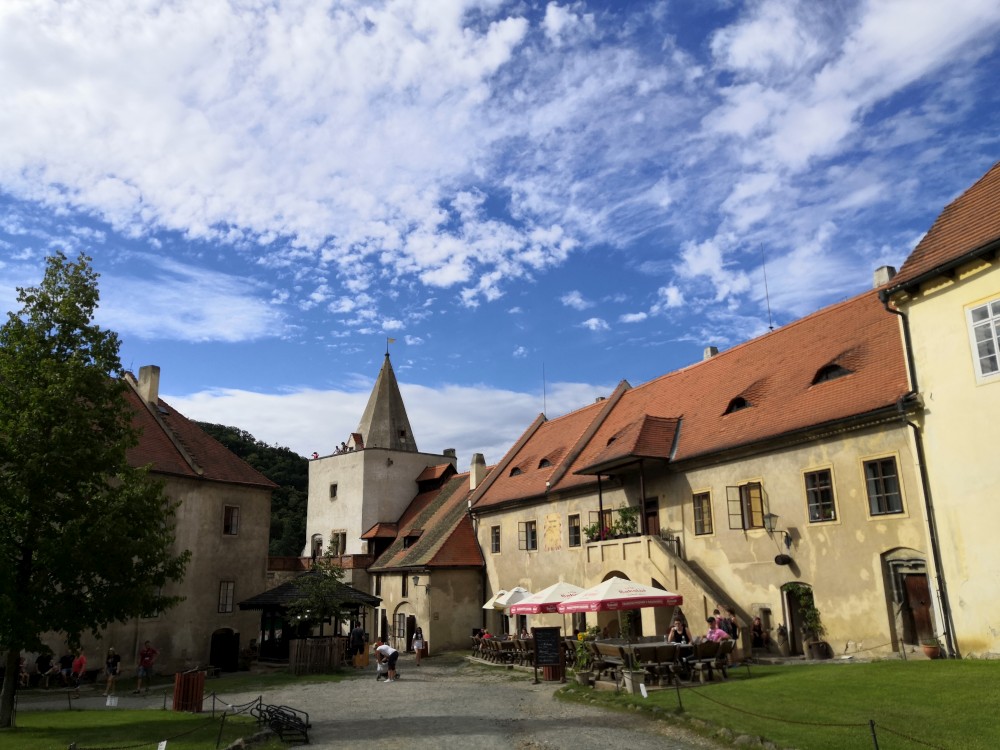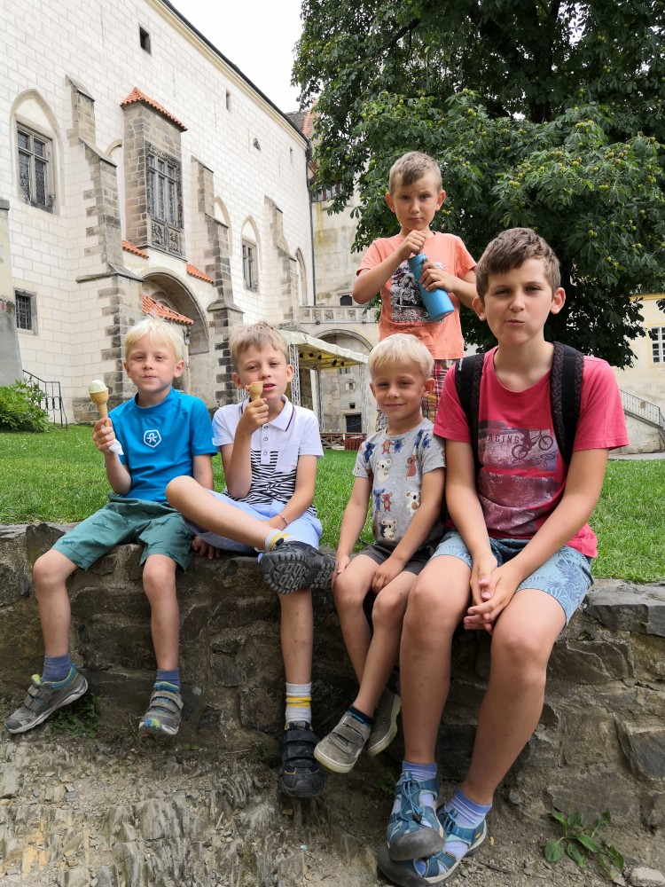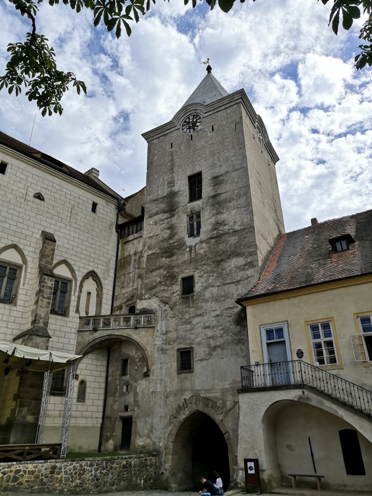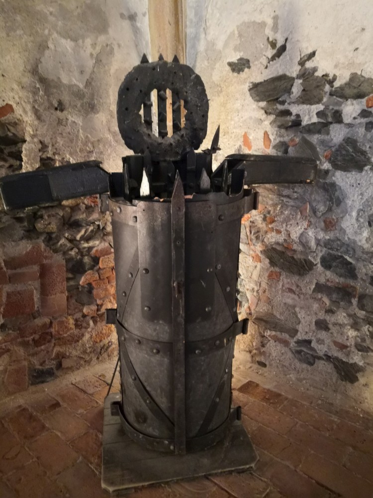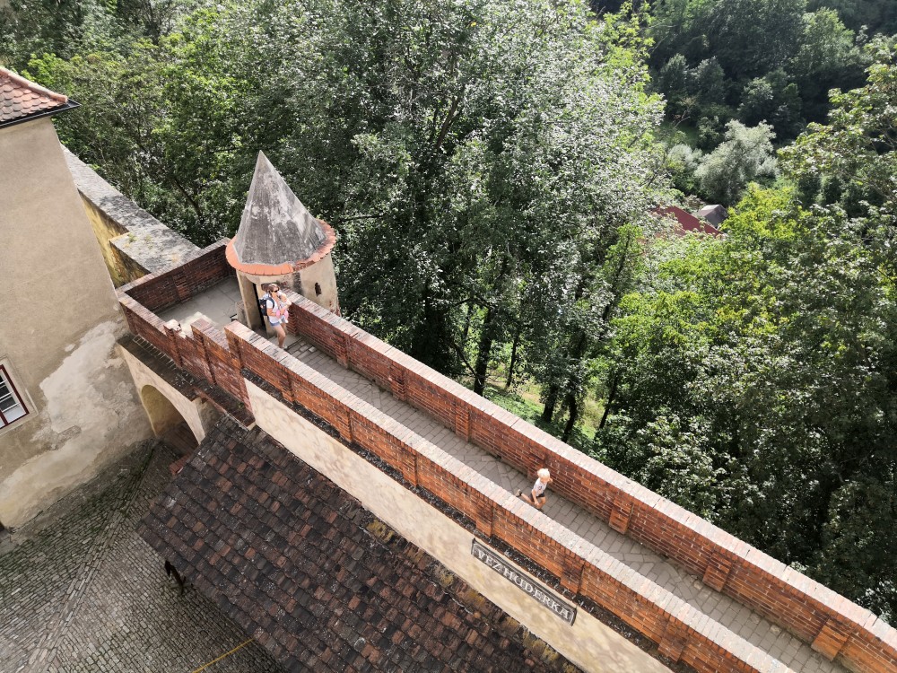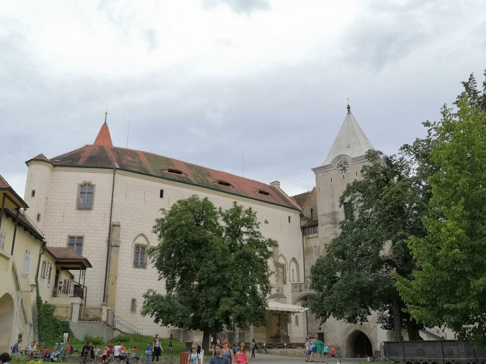 Po obědě stoupáme na hrad. Nejprve dáváme kávu a zmrzlinu a pak jdeme na prohlídku. Na hradě bylo ve středověku vězněno mnoho slavných osob, včetně Karla IV. Hrad je k tomuto účelu dobře uzpůsoben, velká část prohlídky se týkala mučících nástrojů.