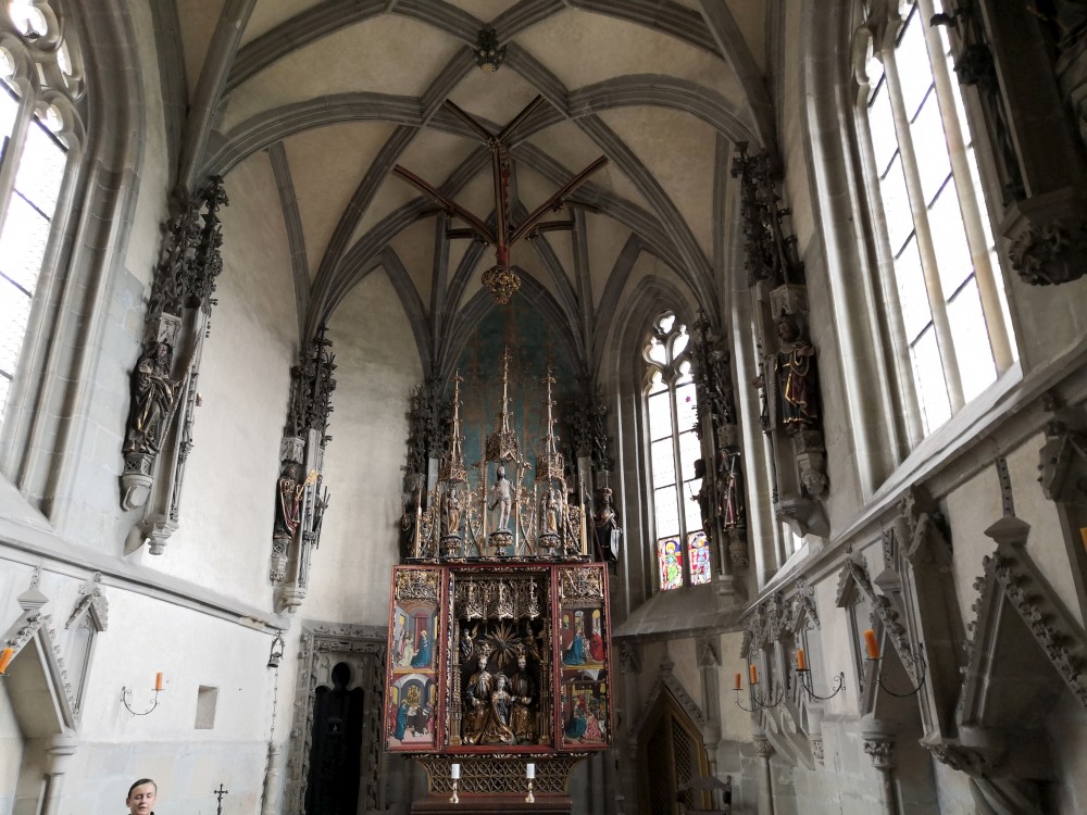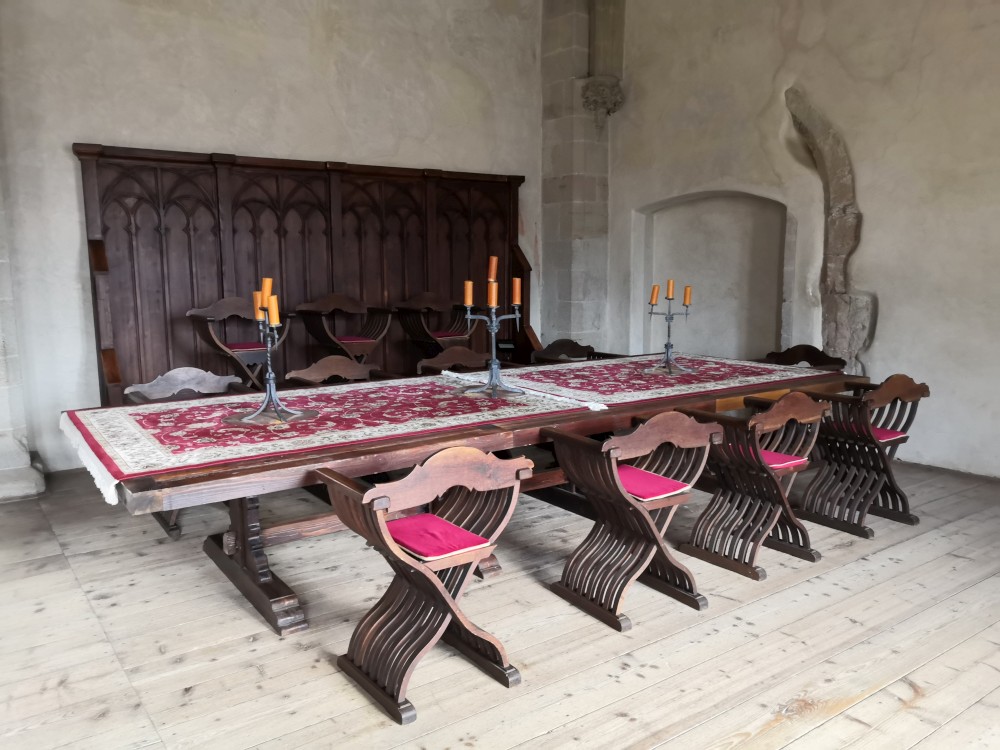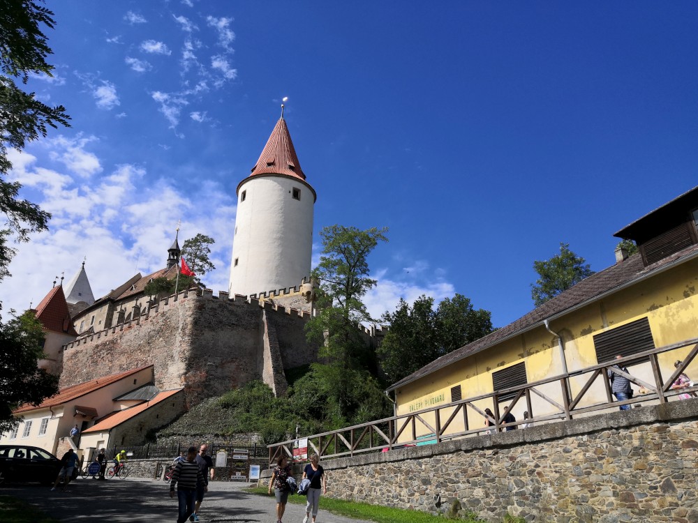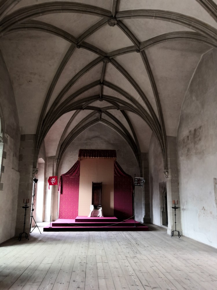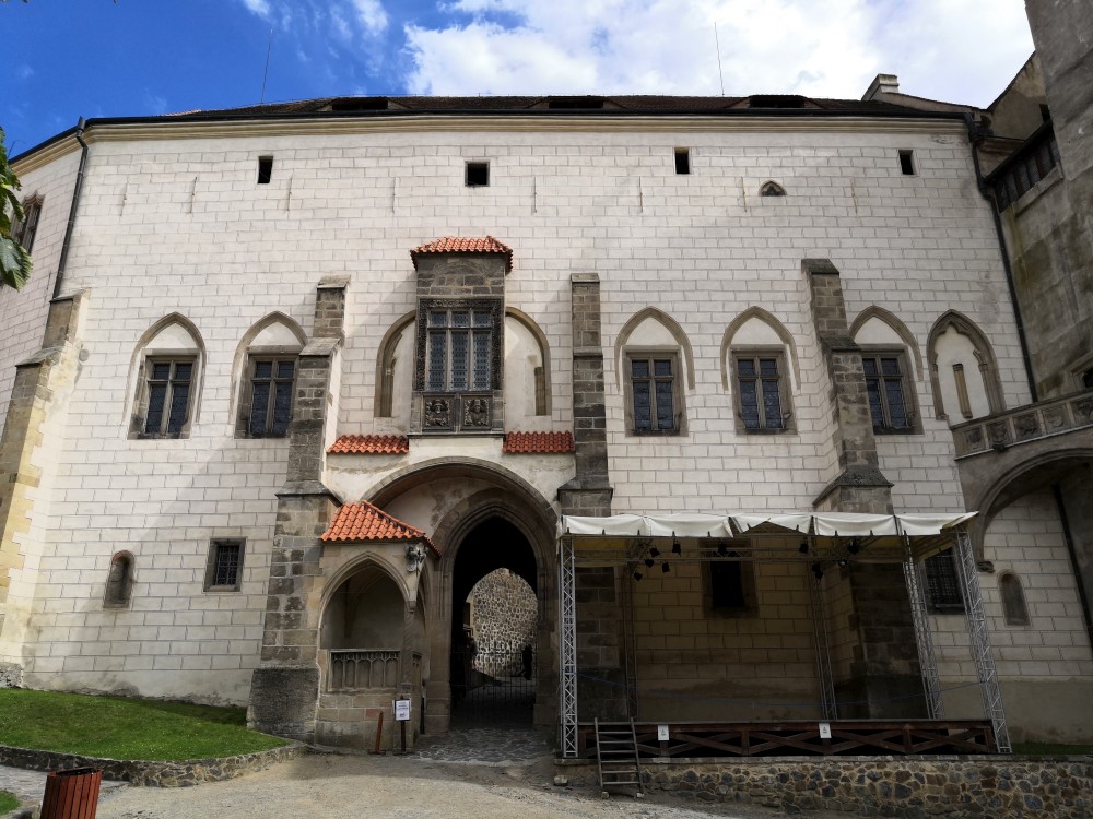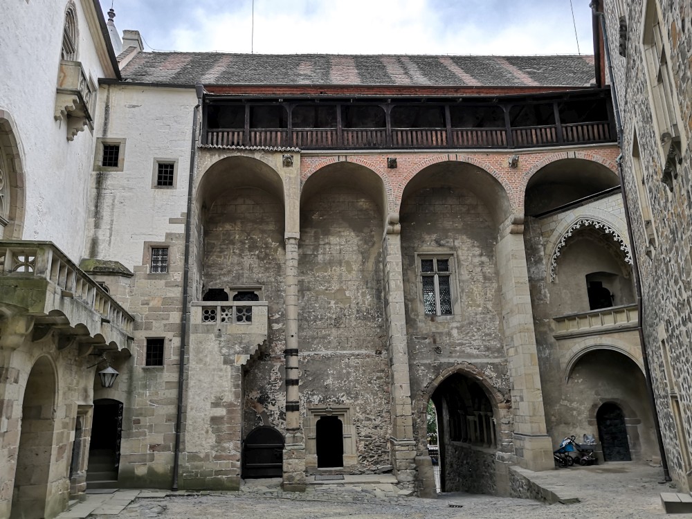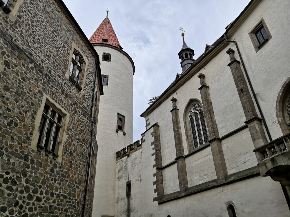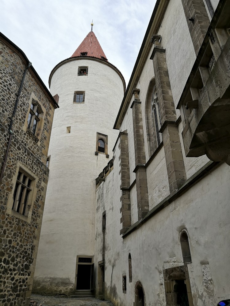 Po obědě stoupáme na hrad. Nejprve dáváme kávu a zmrzlinu a pak jdeme na prohlídku. Na hradě bylo ve středověku vězněno mnoho slavných osob, včetně Karla IV. Hrad je k tomuto účelu dobře uzpůsoben, velká část prohlídky se týkala mučících nástrojů.