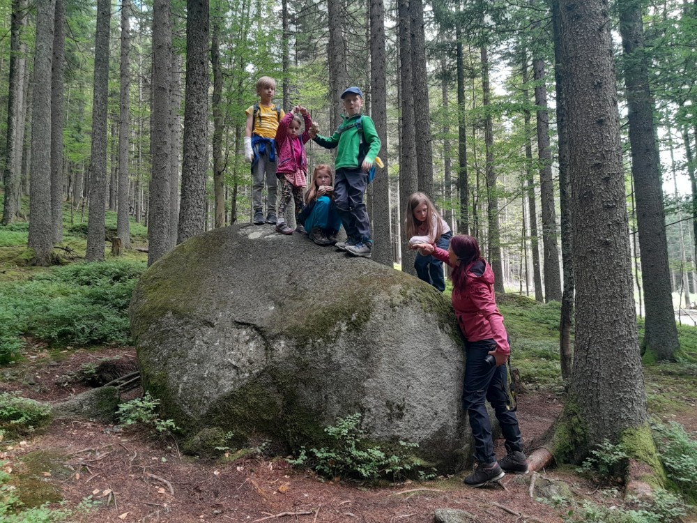 Jedou ve středu odpoledne, přespávají do čtvrtka, ve čtvrtek jdou na vlčí výběh do Srní. Příjíždějí domů ve čtvrtek pozdě večer.