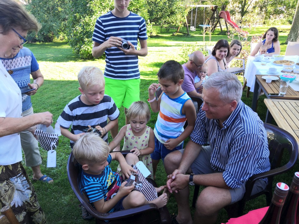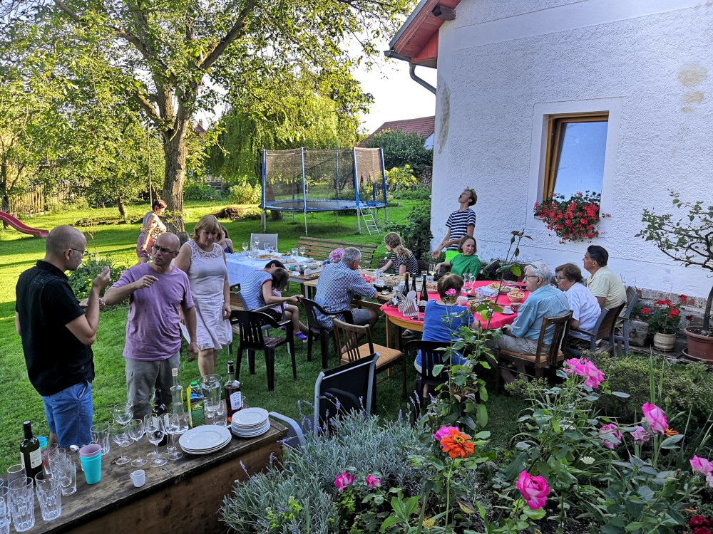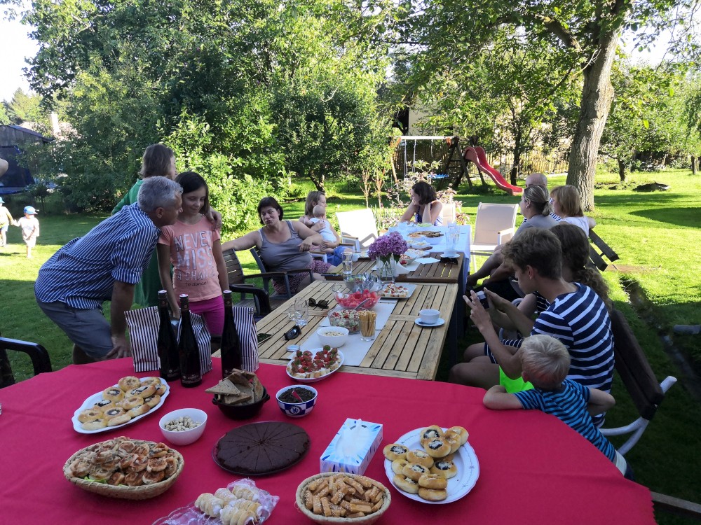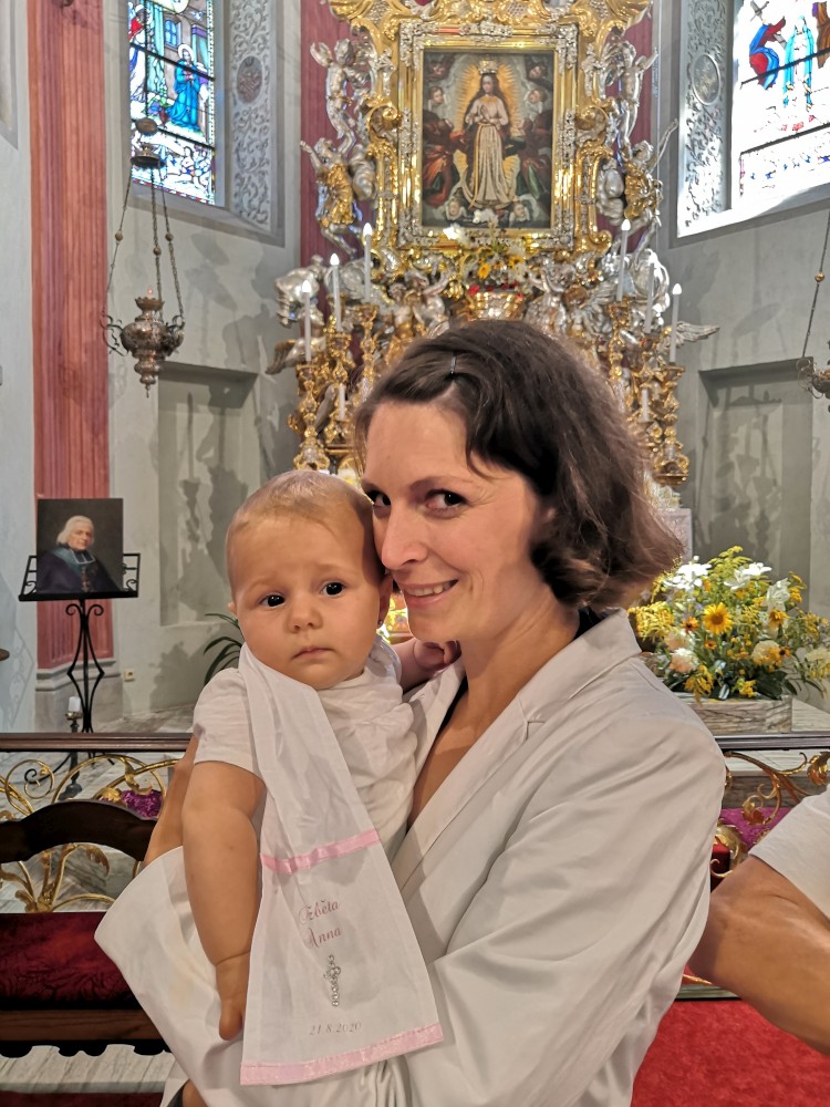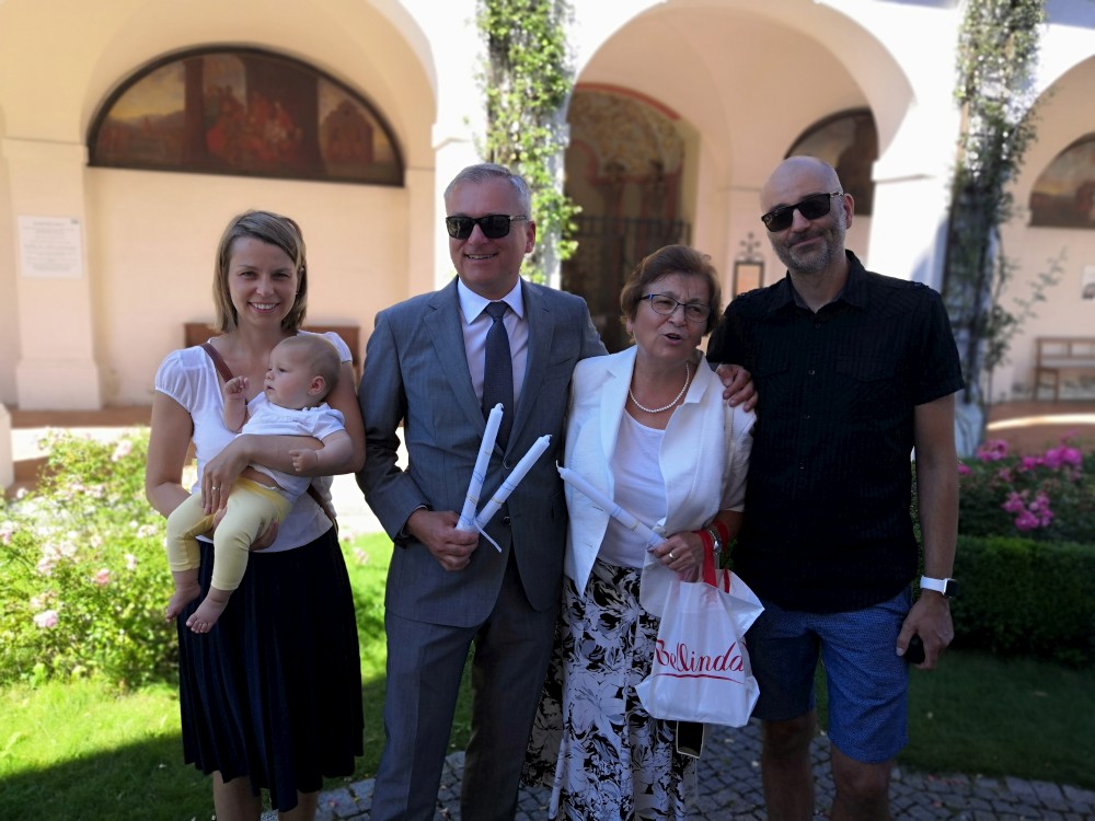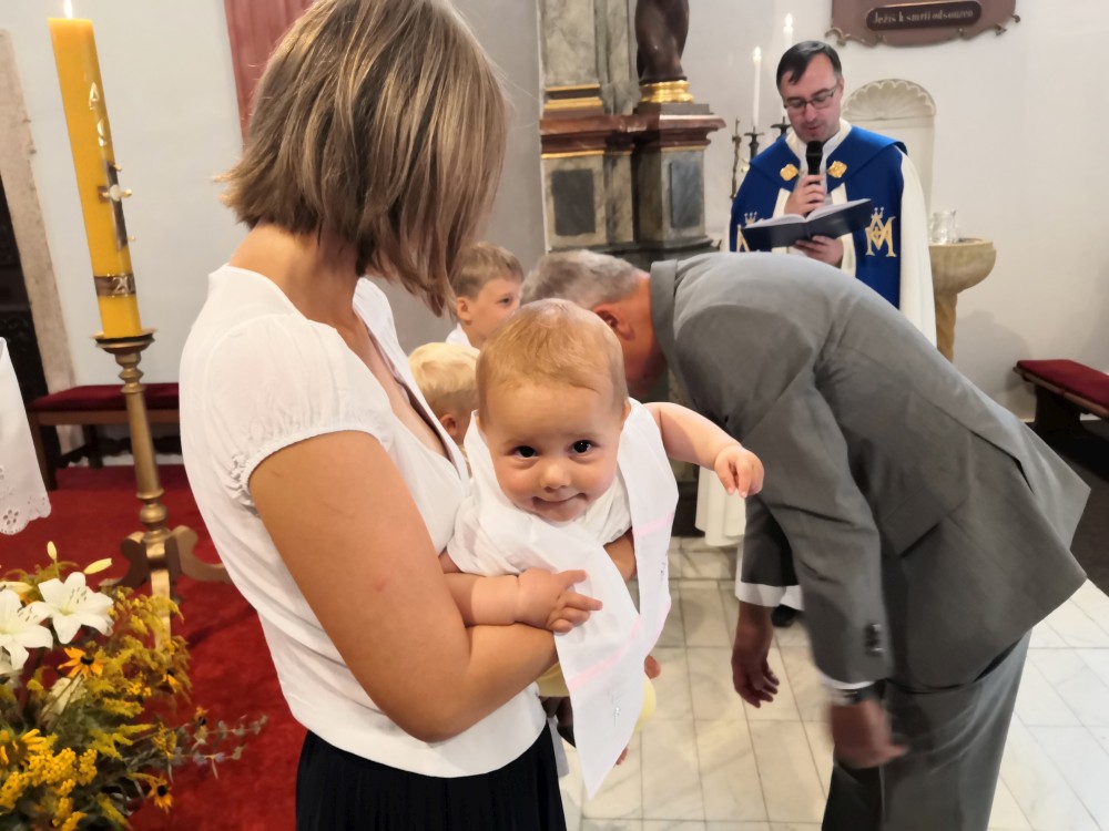 Dnes je velký den. Budou pokřtěny všechny naše děti. Křest probíhá v kostele v Klokotech a provádí ho otec Jiří, co nás oddával. Dětem se to moc líbilo, Bětuška nebrečela, kluci ocenili velké množství vody při polévání. Oběd máme U Zeleného stromu, pak ještě odpolední až večerní oslavu na zahradě.