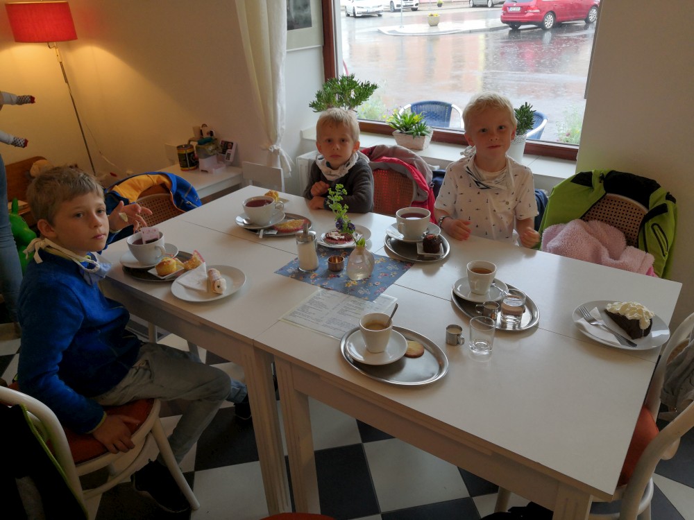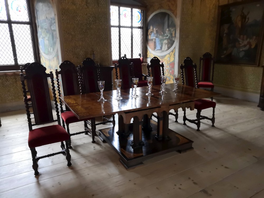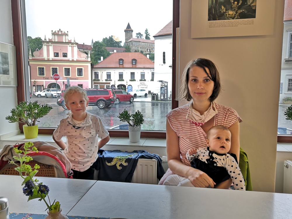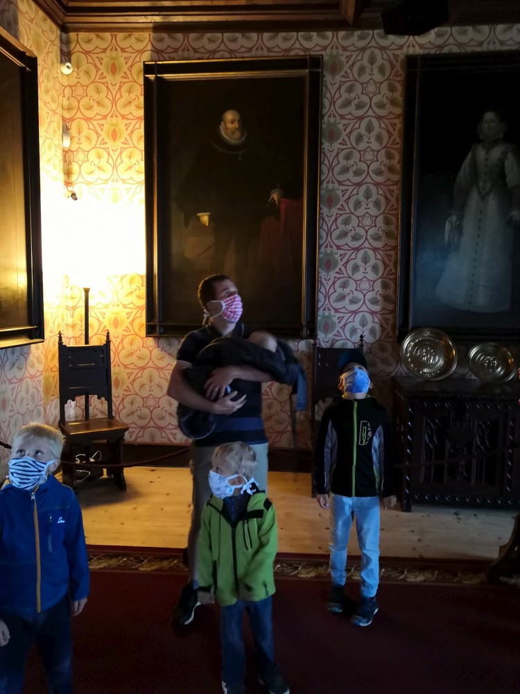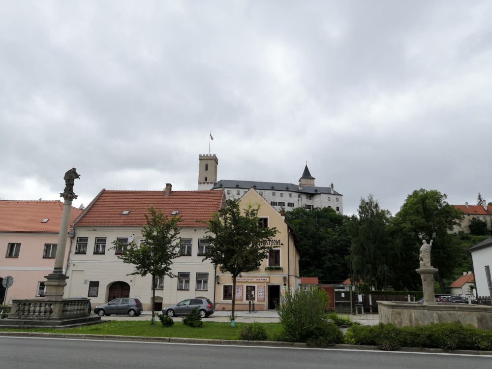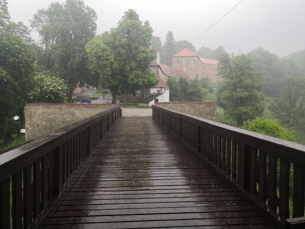 Jedeme na výlet na hrad Rožmberk. Začínáme obědem v restauraci Orel a zamlouváme lístky na prohlídku hradu. Zrovna když se už musíme přesunout nahoru na hrad začíná vydatně pršet. Nic jiného nám nezbývá, musíme to přeběhnout. Na hrad dorážíme slušně promoklí.
