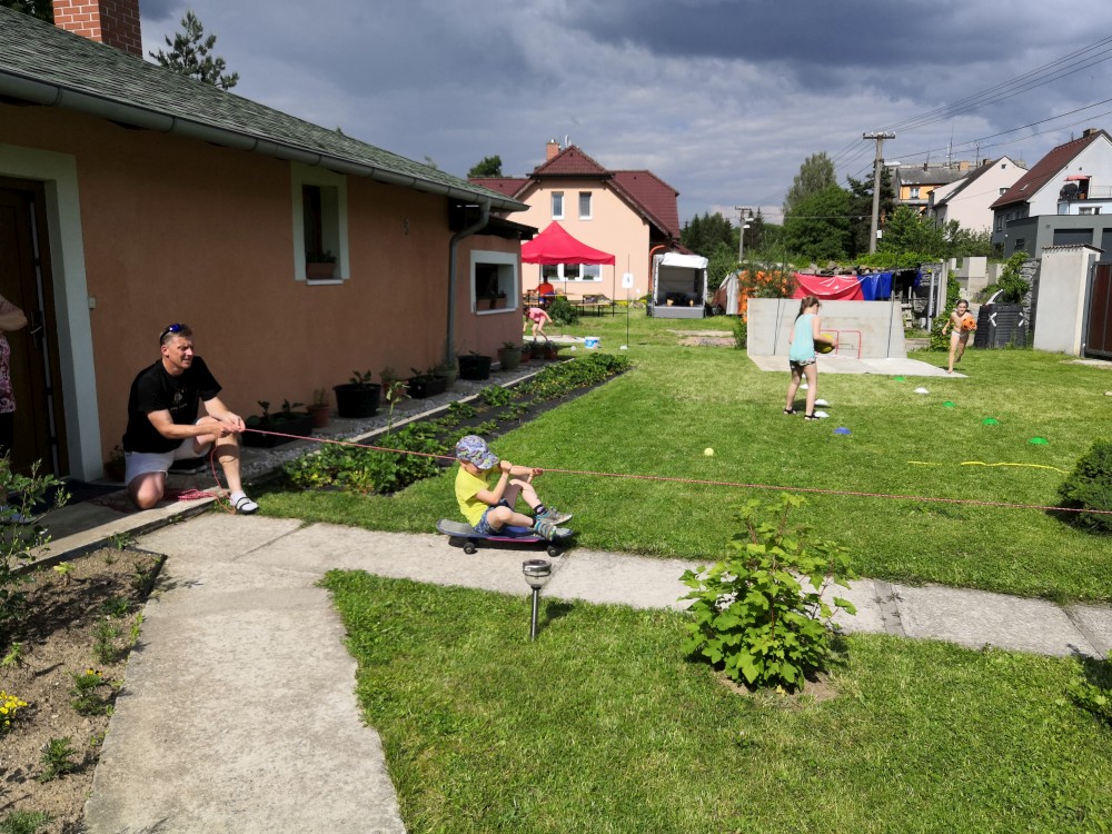 Běžné dětské dny byly kvůli coronaviru zrušené. V Čekanicích se tedy koná improvizovaný dětský den u babičky Hanky a sousedů, a to s omezeným počtem lidí. Ale mají to teda připravené dokonale. Zdeněk zajistil skákací hrad, je zde spousta stanovišť s úkoly pro děti.